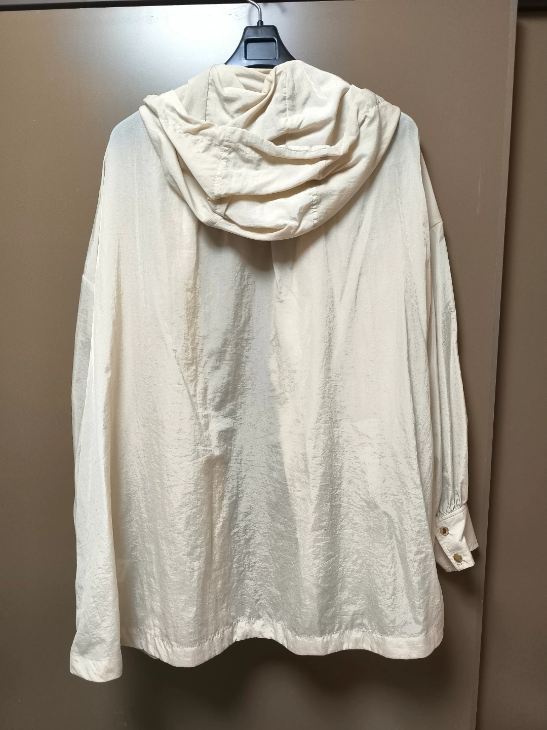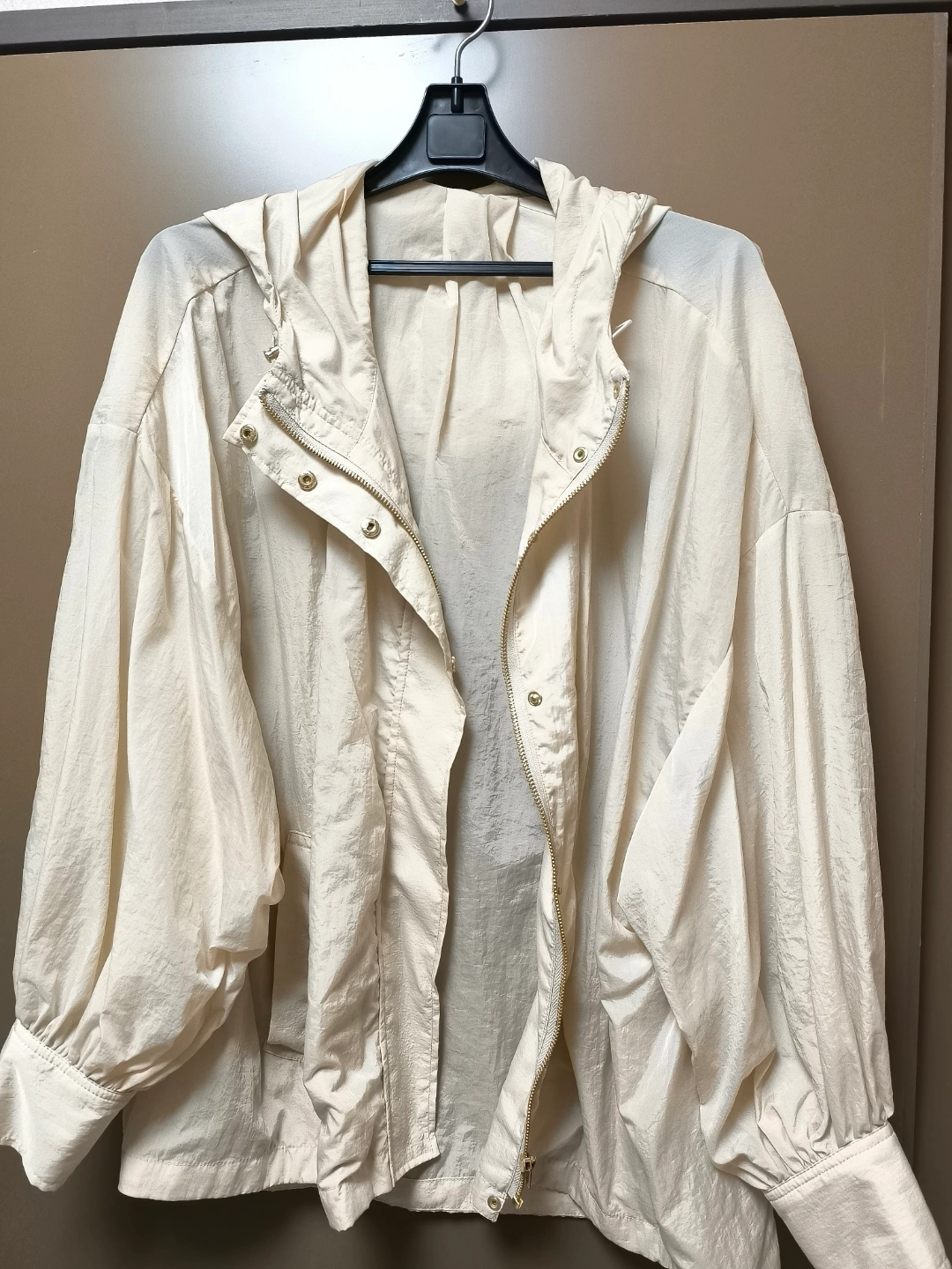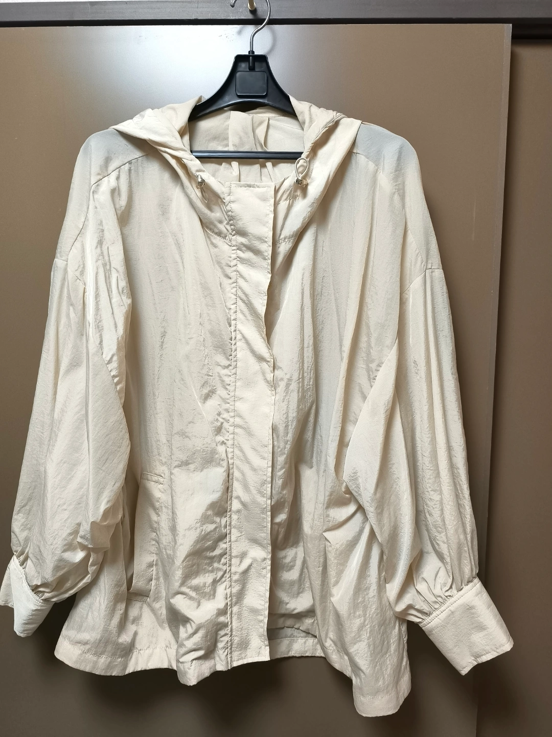 ・カラー:クリーム色 ・サイズ:M(バスト79-87、身長154-162) ・素材:ナイロン100% ・ジッパー付き ・フード付き ・ポケット有り 3ヶ月前に購入したウィンドブレーカーです。 雨の日や、肌寒い日に役に立ちます。 商品状態:1度だけ着用しました・室内保管 素材:ナイロン サイズ:M サイズ 中古品であるということをご了承の上、ご購入ください。 ご不明点等ございましたらご連絡ください。