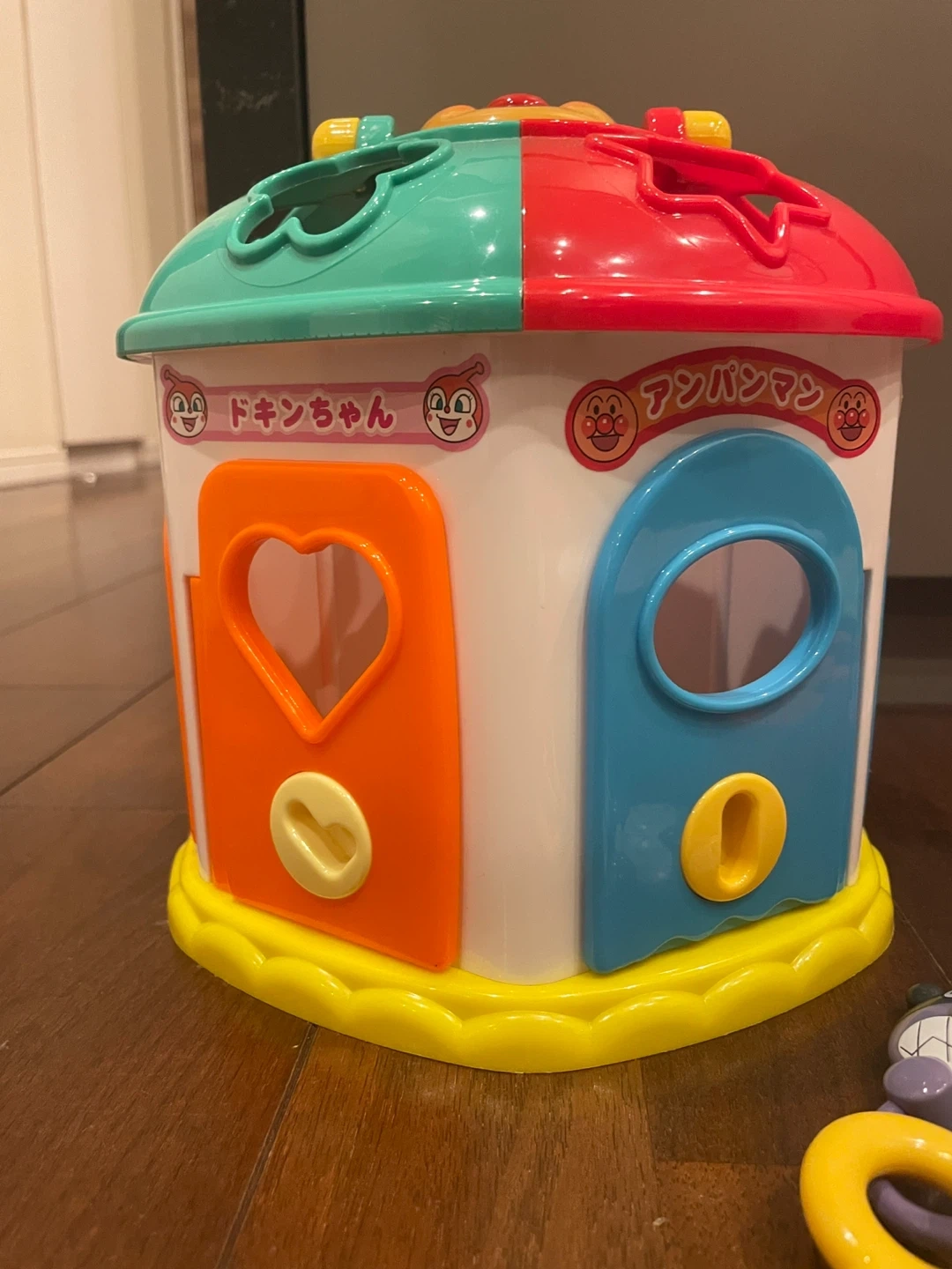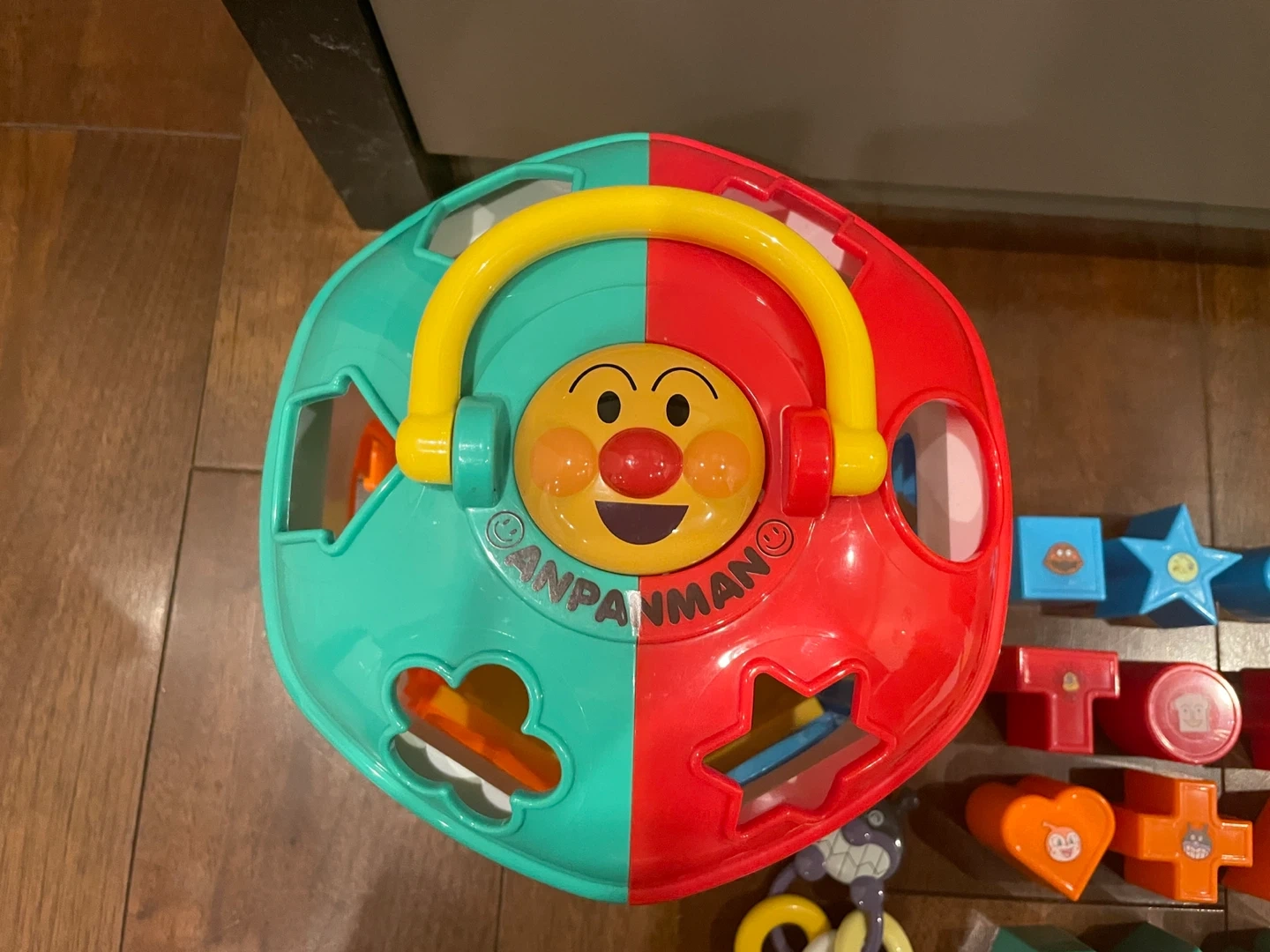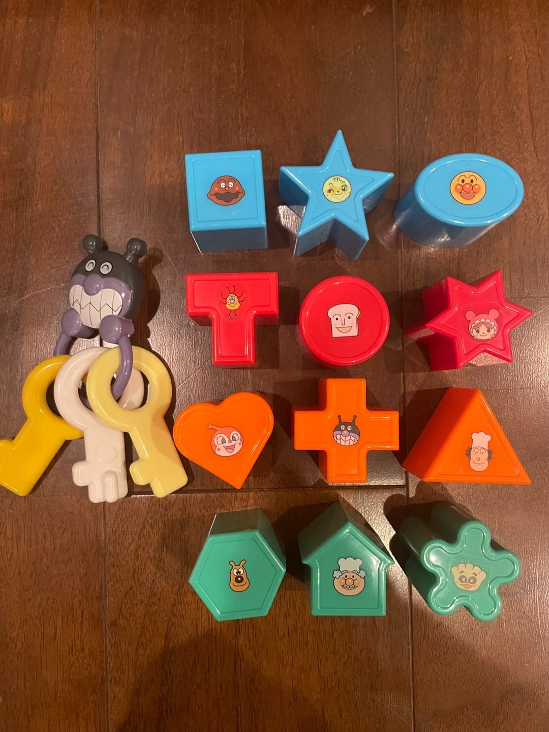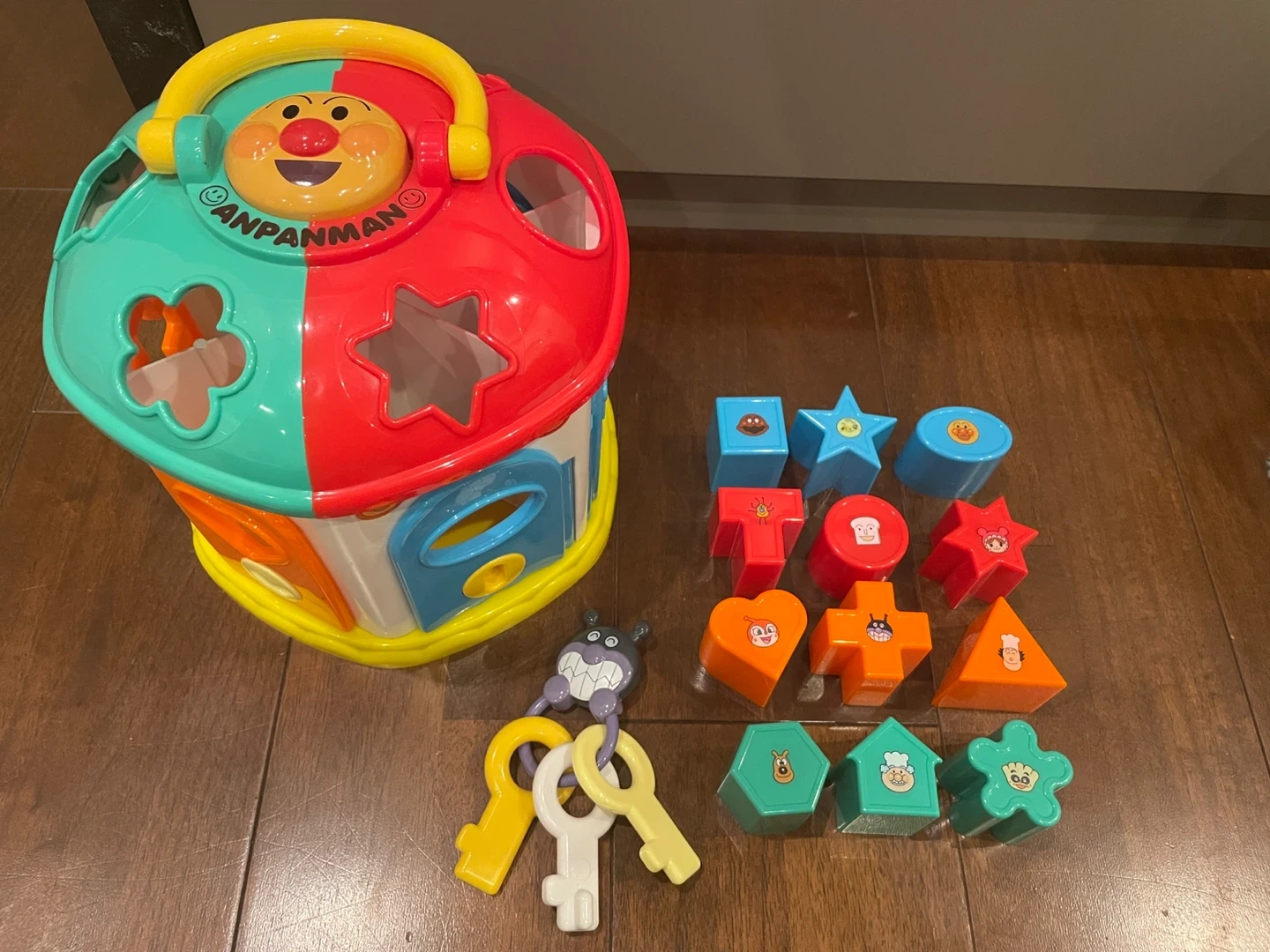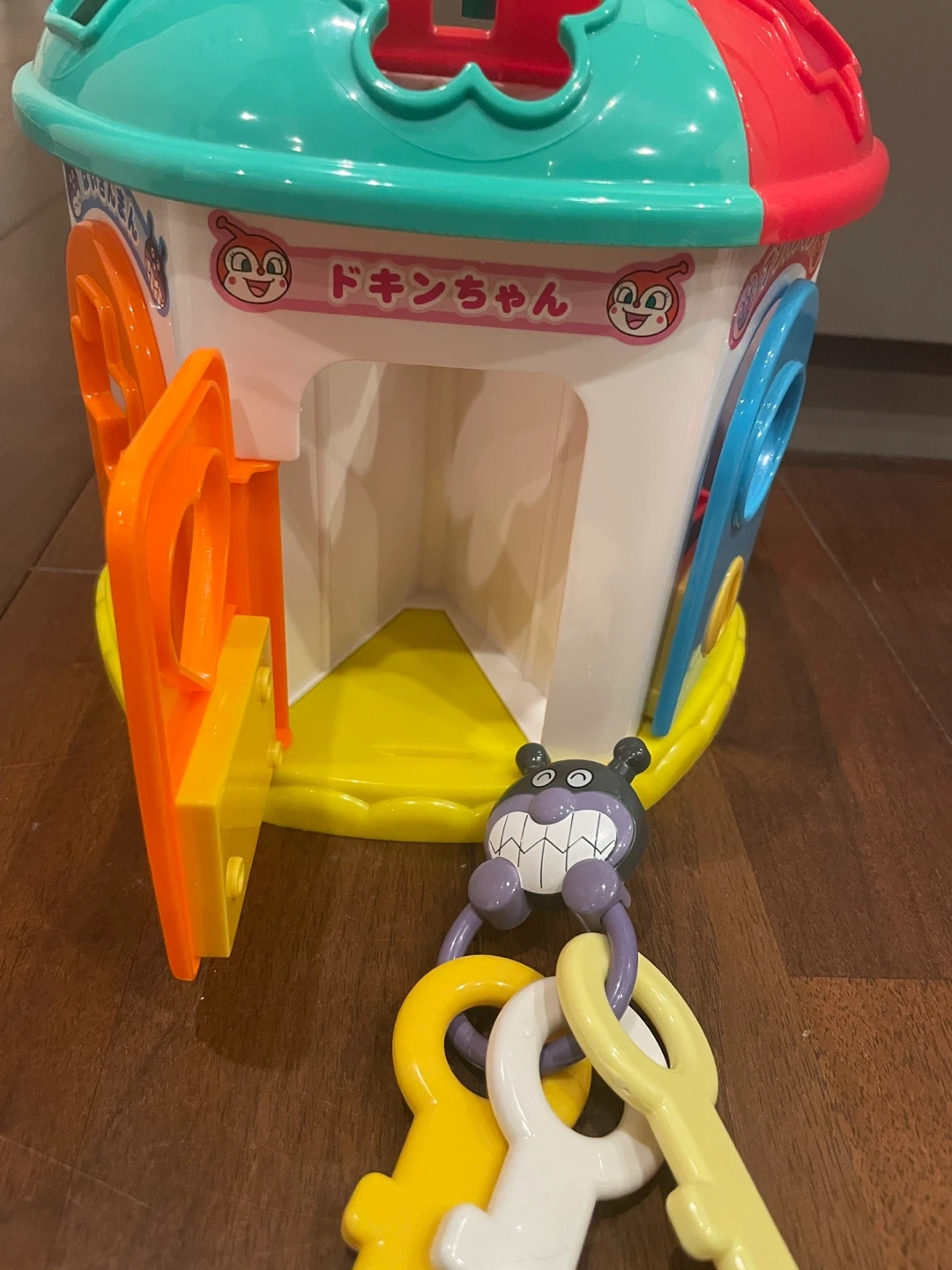 クリスマスSALE中!! クリスマスまでの価格です!!プレゼントに是非ご検討ください!! 12種の形合わせパズルと、3種のかぎ遊びが合体したボリュームたっぷりの育脳パズルです。カラフルなパズルピースにはアンパンマンとなかまたちの可愛い絵柄がついています。 キーホルダーもばいきんまんで、楽しく遊びながら脳の発達を促します。 どの形が入るか、自分で考えて見極めることで思考力を育み、どの向きで入れたらいいか、指先を使って試行錯誤することで指先の発達・集中力を養います。 明らかな汚れや傷はありませんが、子ども用品中古品であること、御了承の上ご検討ください。