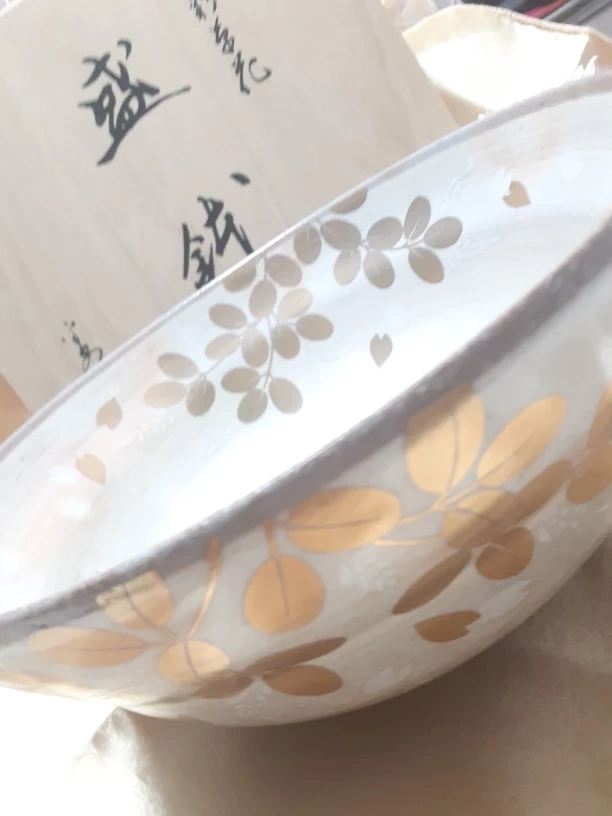 和皿 猿爪 井の平窯 金彩 鶴と波