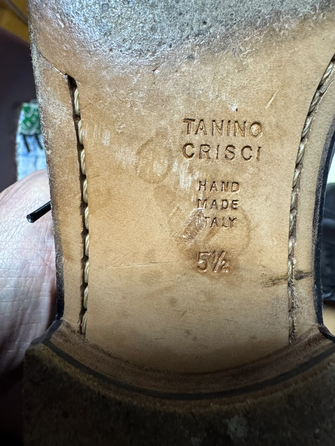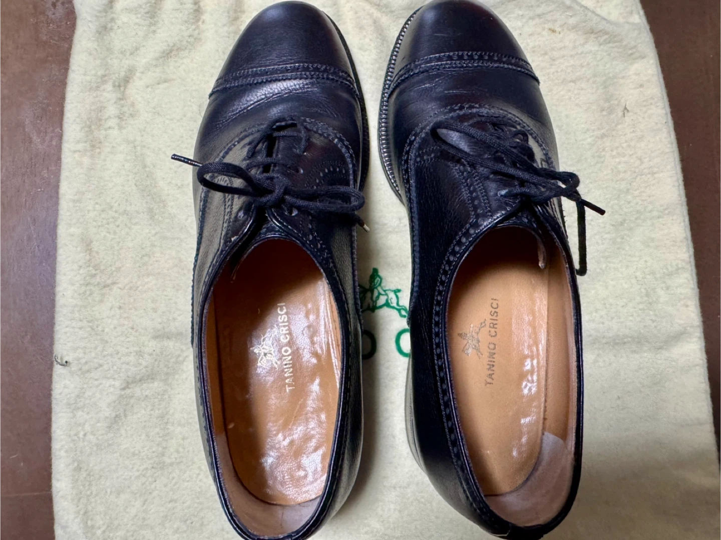 イタリア製TANINO CRISCIの紳士靴です。 サイズは、5 1/2 24.5センチ 革製 黒 今は無いイタリアの靴メーカーです。 商品状態: ブランド:TANINO CRISCI 素材:革製 サイズ:5 1/2 24.5センチ 中古品であるということをご了承の上、ご購入ください。 ご不明点等ございましたらご連絡ください。