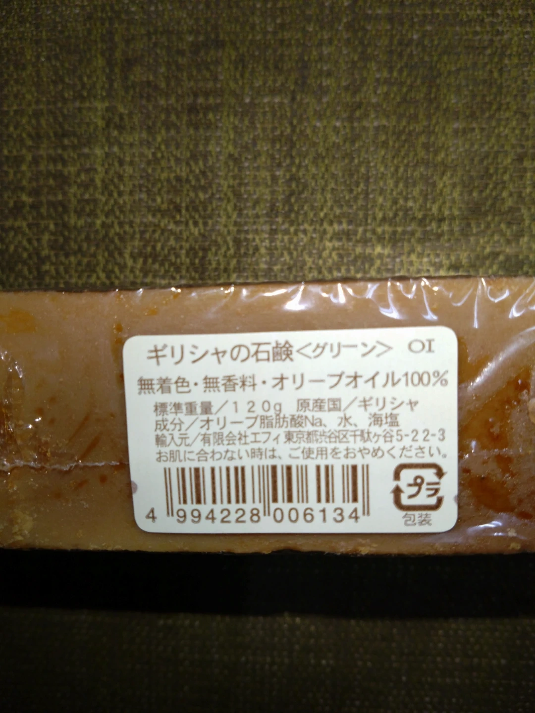 天然手作りギリシャ製の石鹸です。 現地日本円で1500円 冬のカサカサ肌に潤いを。 オリーブオイルのベールで冬の乾燥肌をバリア! ・オリーブオイル100% ・無着色・無香料 ・標準重量:120g ・原産国:ギリシャ ・成分:オリーブ脂肪酸Na、水、海塩 天然石鹸にこだわる方。 参考Amazon950円(1個) 在庫7個あります。 自分で使うかもしれません。 その時の在庫数は問い合わせ次第です。 ご了承下さい。