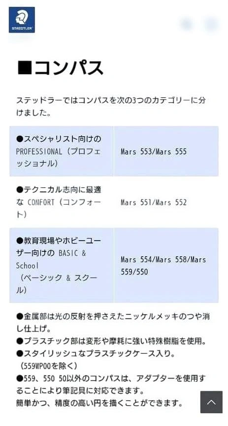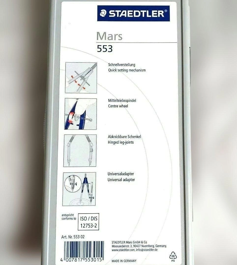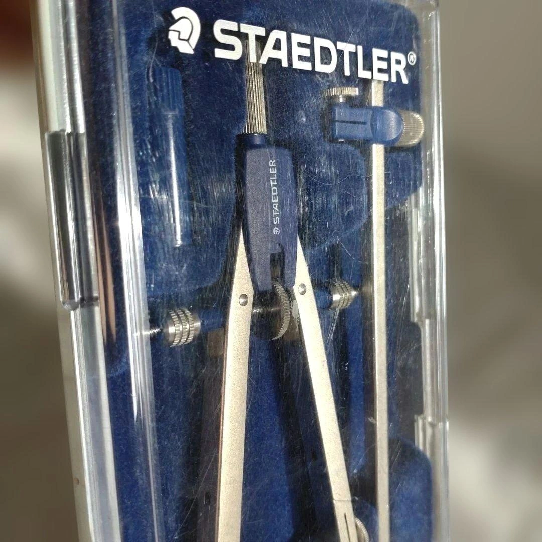 STAEDTLERのMars 553コンパスです。 【特徴】 プロフェッショナルユーザーのためにつくられたコンパスです。両脚を開閉・完全固定できる機構のほか、中車に よる微調整も可能です。 ニッケルメッキのつや消し仕上げで光が反射せず目が疲れません。 ステッドラー独自の特許ロック機構で両脚を開閉、完全固定でき、正確な円が描けます。 *ケース入り *替え芯等付き(写真をご確認ください) ◉ケースの表面に擦れやキズがあります。 写真に写っているものが全てです。 中古品であることをご理解くださる方よろしくお願いします。