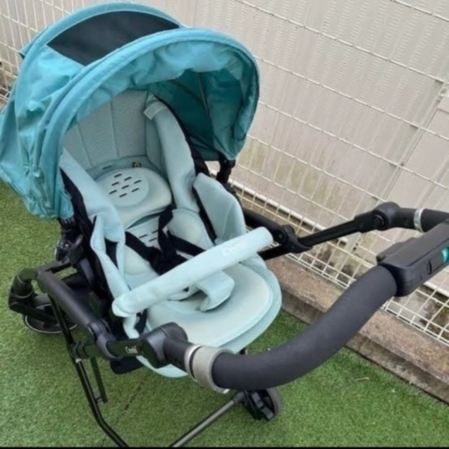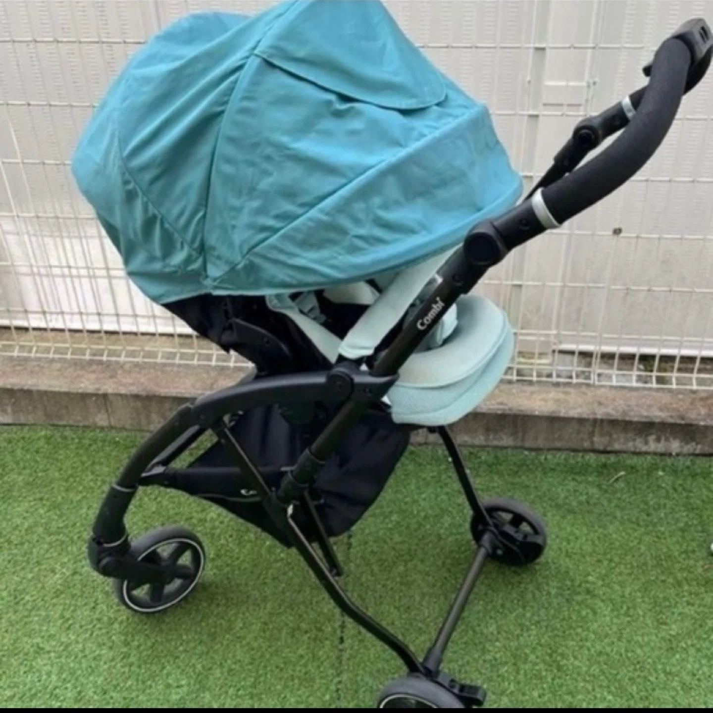 コンビのベビーカーAttO type-Lミントグリーン色 対象月齢は1ヶ月〜36ヶ月です。 説明書が付き 地面から61cmのハイシートで乗り降りさせやすく、外食時もそのまま食事ができました。 小回りしやすく、折りたたむと保管もコンパクトです。 シートを付け替えることで簡単に対面背面両方使えます。 A型にしては軽量なので持ち運びも楽でした > _ > ハンドルの高さも簡単に変えることができ、 身長に合わせて調節可能です。 重量は6.6kgで階段での女性1人でも持ち運びも問題ありませんでした。 中古品であることをご了承の上、ご購入ください。 気になる箇所ありましたら、お写真追加致します。 座面···両対面式 乗車人数···1人乗り 車輪···4輪 現在は生産終了している商品です。 使用頻度が少なく、ほとんど使用していません。 定価:60500円 ダンボール有 中古品であることご了承ください。
