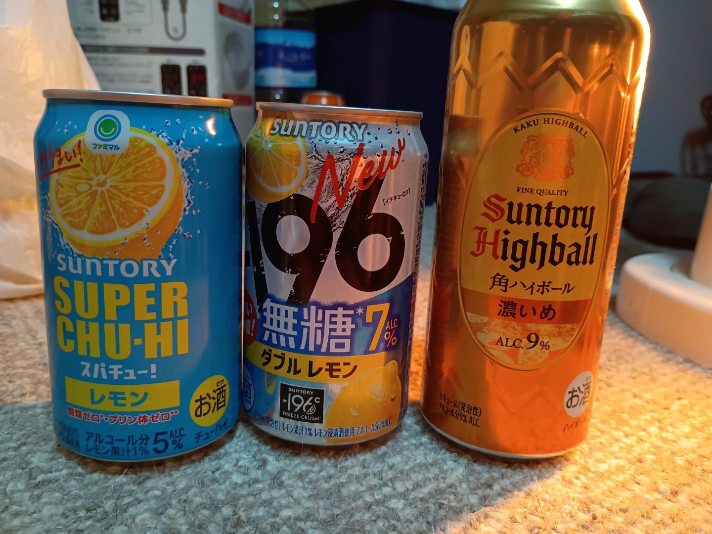 サントリーのチューハイとハイボールの缶3本セットです。 ・サントリー SUPER CHU-HI レモン Alc.5% ・サントリー -196℃ 無糖ダブルレモン Alc.7% ・サントリー 角ハイボール 濃いめ Alc.9% 中古品であることをご了承ください。