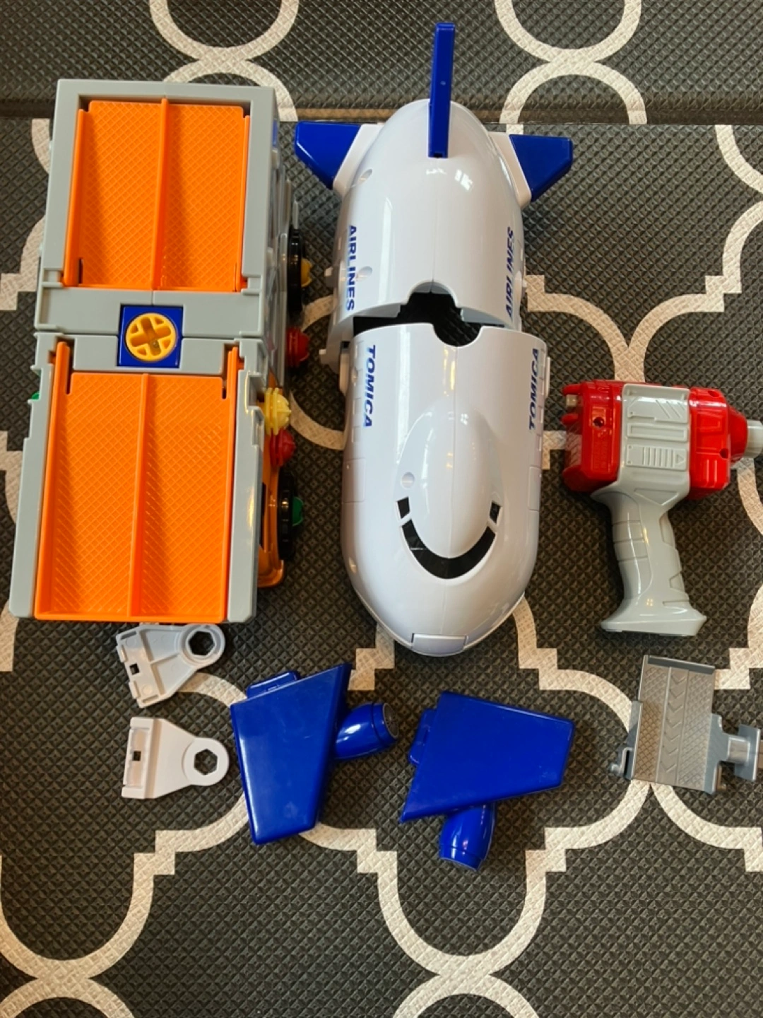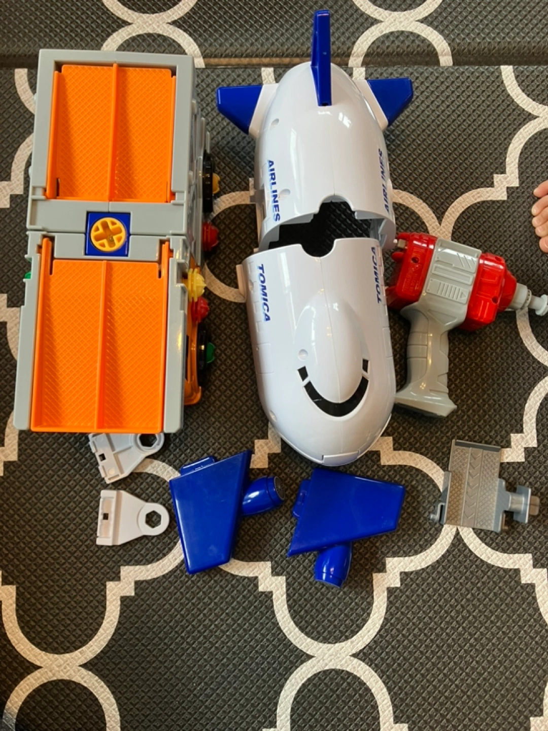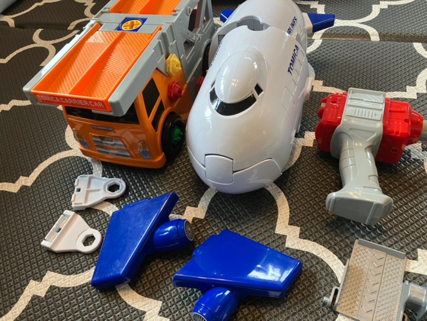 https://www.takaratomy.co.jp/products/tomica/tomicaworld/tomicadiy/ 👆の商品です。 飛行機とキャリアカーに自分で 電動ドライバーを使って組み替えられます! 集中して遊んでくれます🚗✈️ トミカを乗せられたりするので トミカが大好きなお子様にはぴったりだと思います😍 素人保管のため、完璧を求められる方はご遠慮ください。 ノーリターン、ノークレームでお願いします🙇♀️
