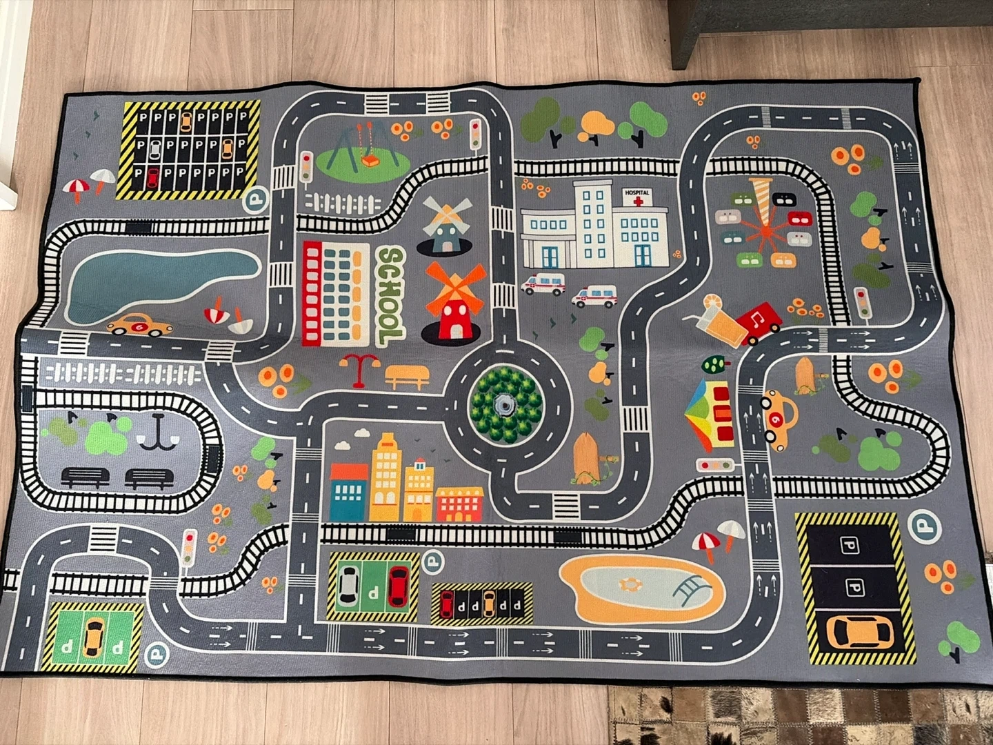 道路が描かれたプレイマットです。 ・デザイン:道路、建物、駐車場、公園など ・状態:目立った傷や汚れなし ほぼ未使用に近いです。 お受け場所などはなるべくご希望に添えるようにいたします。