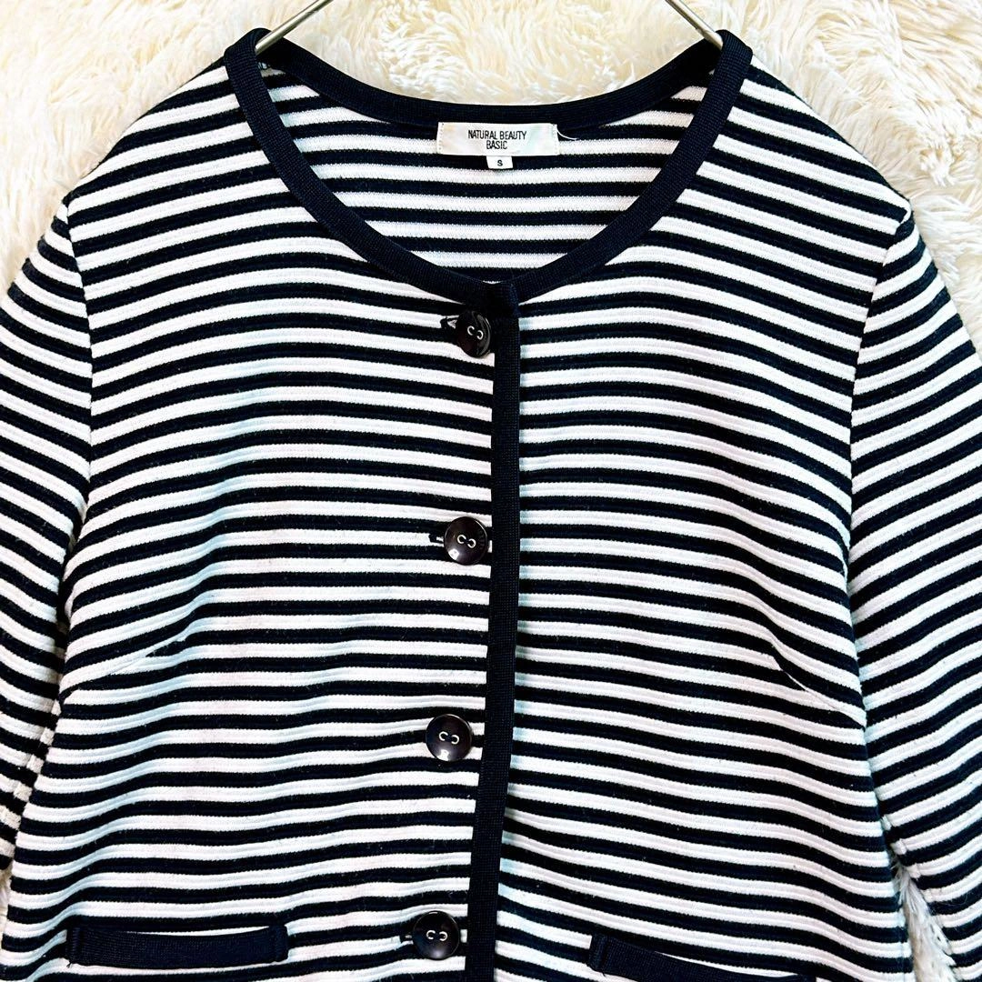 ナチュラルビューティーベーシック カーディガン ストライプ S