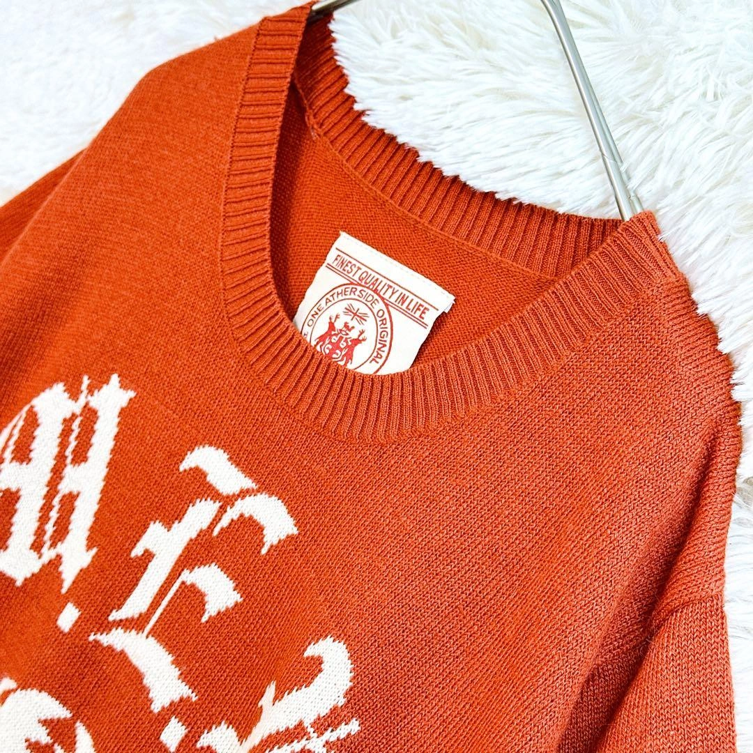 あたたかさオレンジのニットです。フリーサイズ、プリントロゴデザイン。 写真にてご確認ください。 着丈:62cm 身幅:49cm 肩幅:38cm 袖丈:51cm 素人寸法のため、若干の誤差はご了承下さい。 カラー···オレンジ系 素材···アクリル/レーヨン(化繊) ネック···クルーネック/Uネック 季節···秋冬 汚れ・破れ・臭いなど···なし ご不明点はお気軽にお問い合わせください。