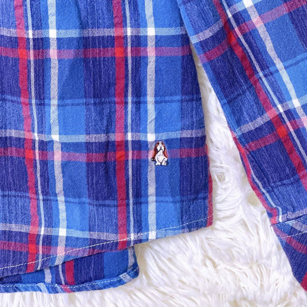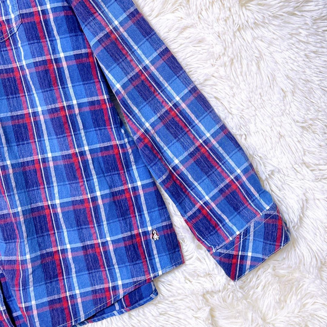 あたたかさハッシュパピーの青・赤・白チェック柄の長袖シャツです。ボタンアップとポケット付きのデザインです。 サイズ:LL(XL) 着丈:65cm 身幅:55cm 肩 幅:38cm 袖丈:59cm 写真にてご確認ください。 ご質問等ありましたら、購入前にお願いいたします。 ID n13