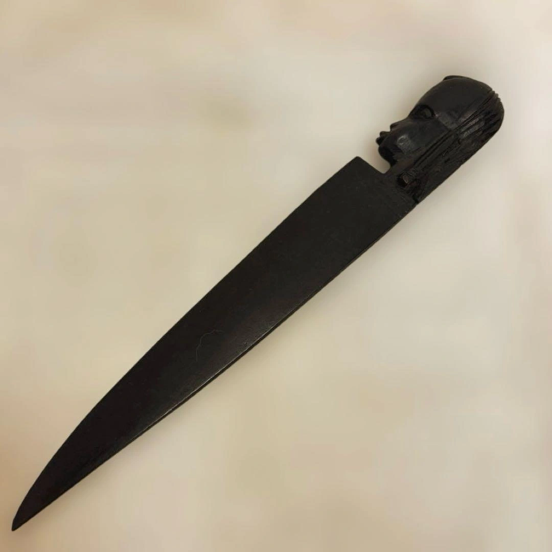 ご覧頂きありがとうございます! アフリカ製木製ペーパーナイフです。 家族がかなり前に海外で購入し、長期自宅保管しておりました。 古いものにご理解のある方でお願い致します。 ✴︎サイズ 長さ 約25.5㎝ キャンセル、返品、商品お受け取り後のクレームなどは不可でご了承頂けるようお願い致します。 - 素材: 木製 - デザイン: 彫刻 #木彫り #木彫人形 #工芸品 #アフリカ #アフリカ雑貨 #ペーパーナイフ #木製ペーパーナイフ #アフリカ民芸品 ご希望の方はお気軽にご連絡ください。