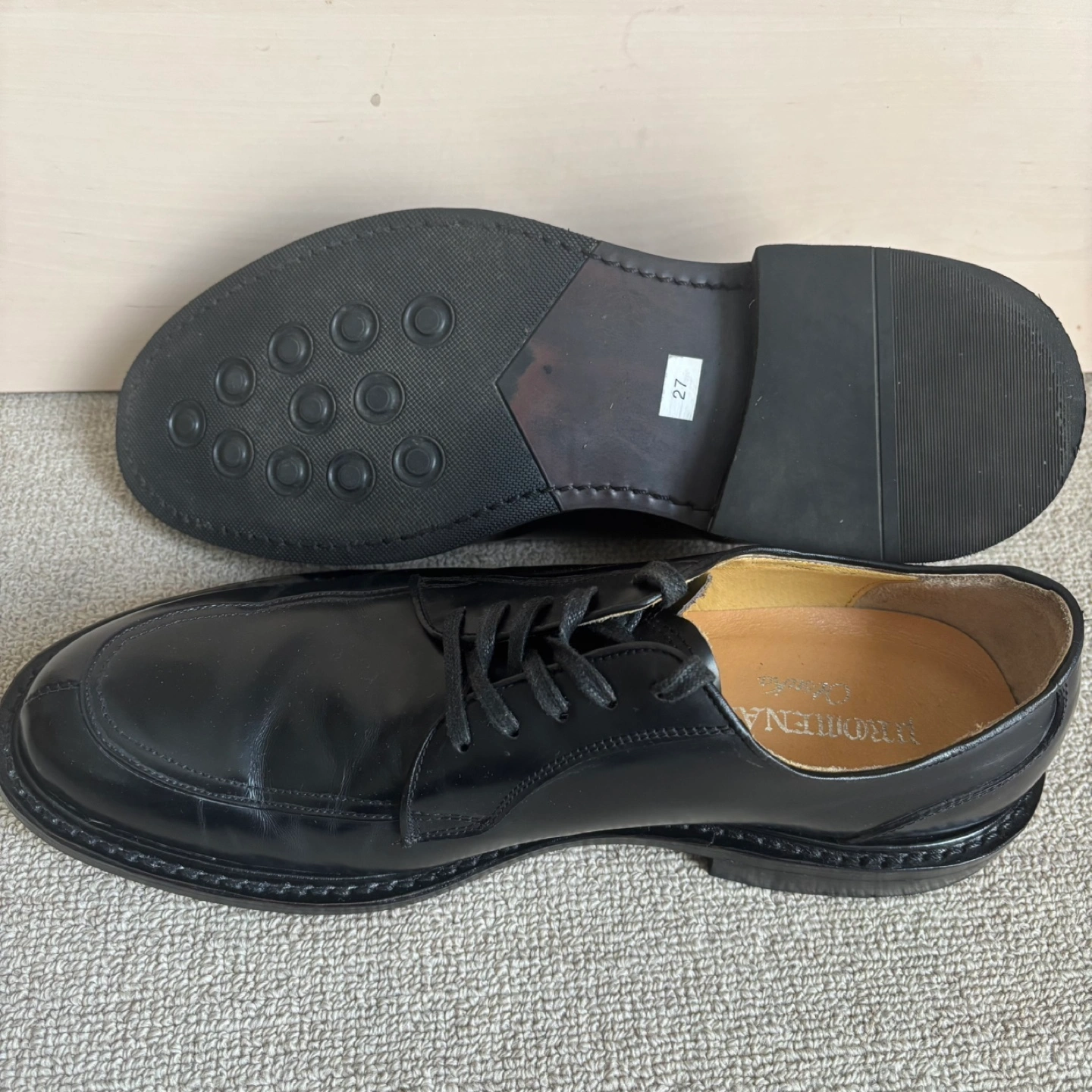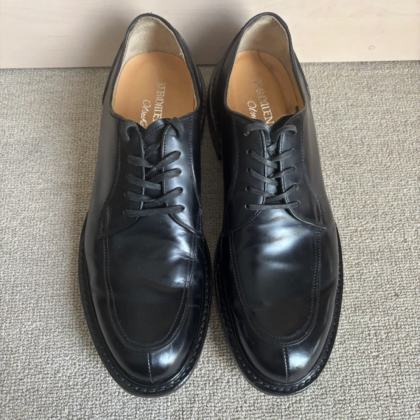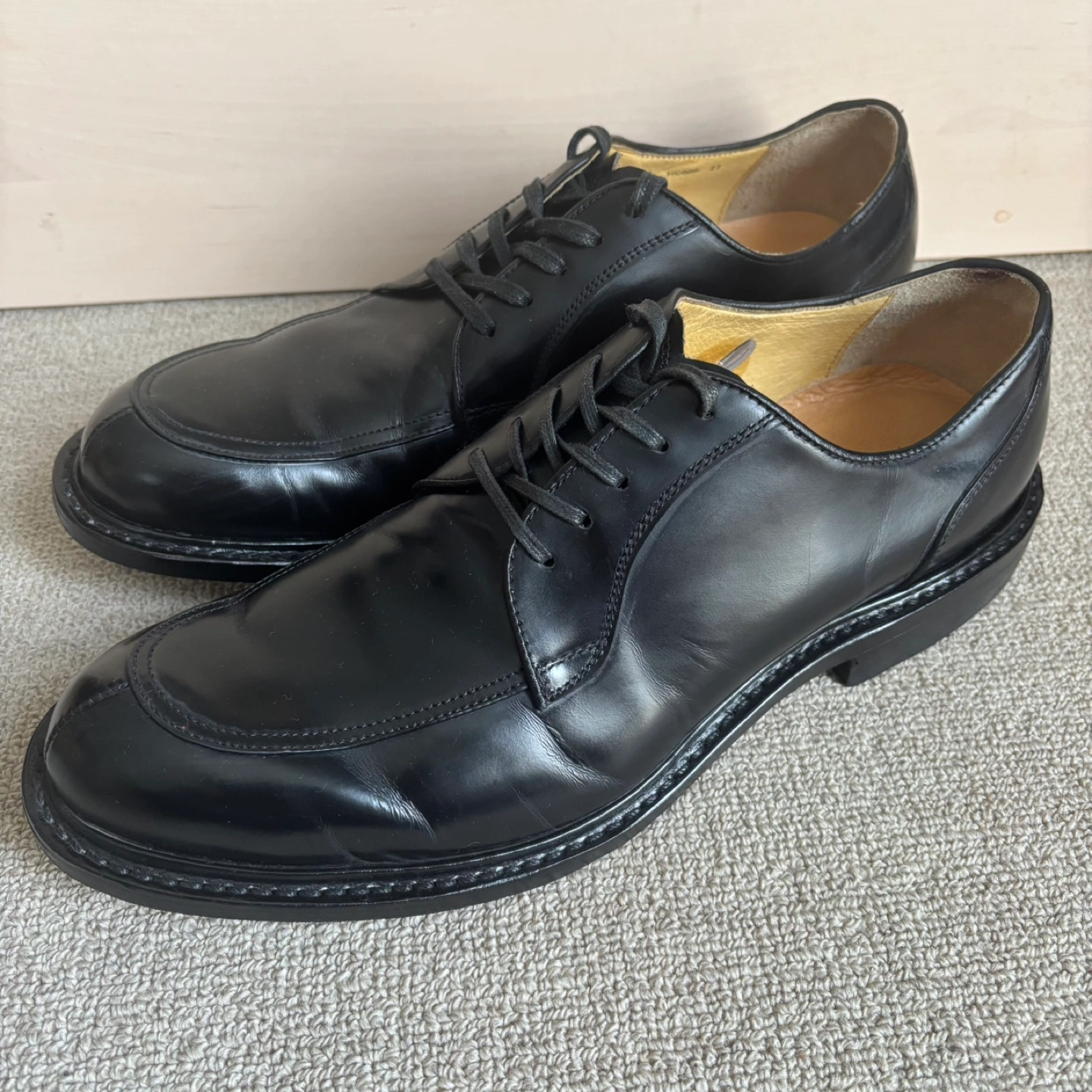ビジネスシューズ プロムナード大塚 promenade 高級品 本革 ブラック 27 皇室御用達 皇室御用達と認められた大塚製靴の 高級革靴プロムナードです。 外羽式、グッドイヤー製法の本格的Uチップシューズ ビジネスに最適です。 27センチ ワイド アッパー、ソール(一部)に高級皮革を使用しております。 使用回数も少なく、かかと部分の減りもほとんどありません。あくまでも中古品となりますので、ご理解のある方の購入をお願い申し上げます。