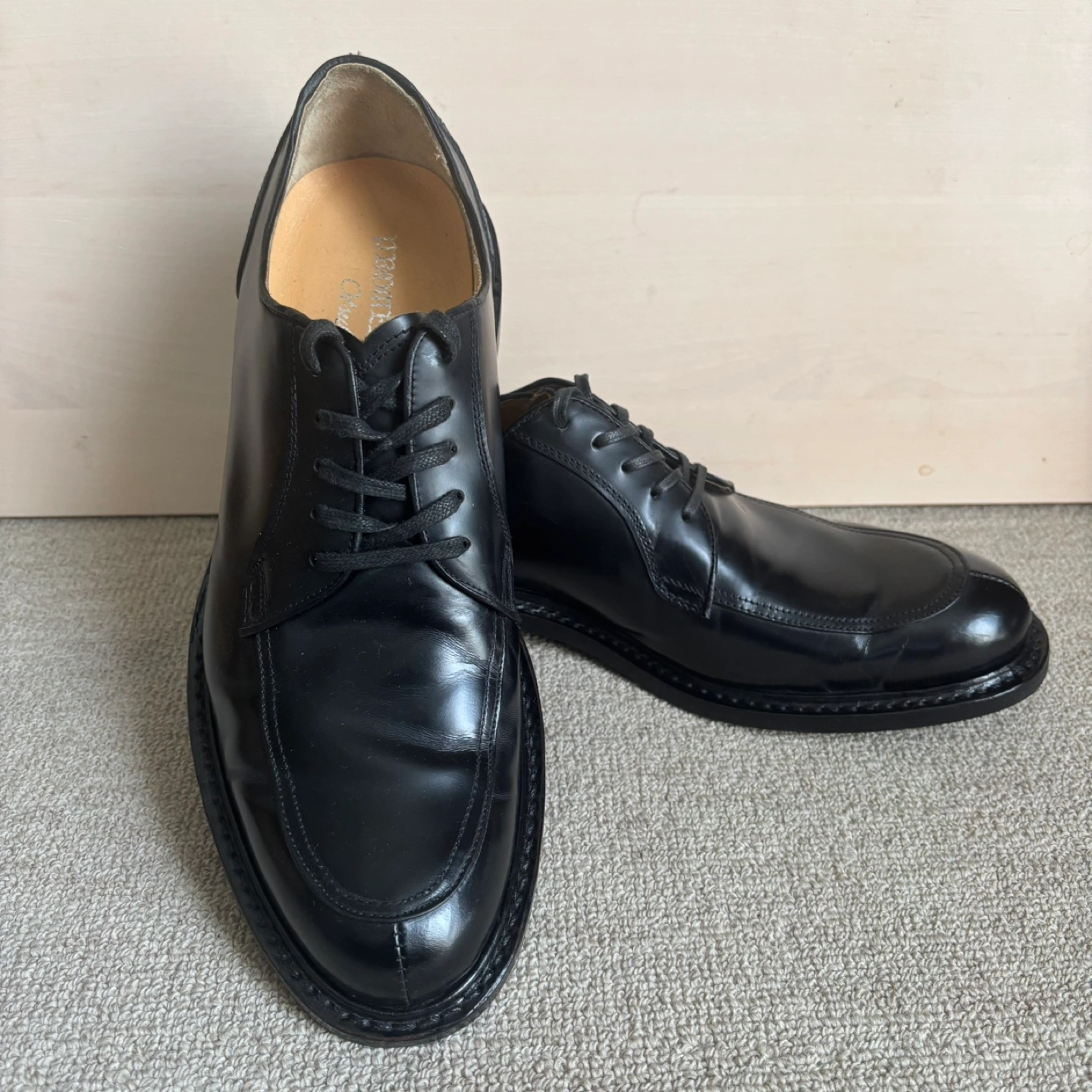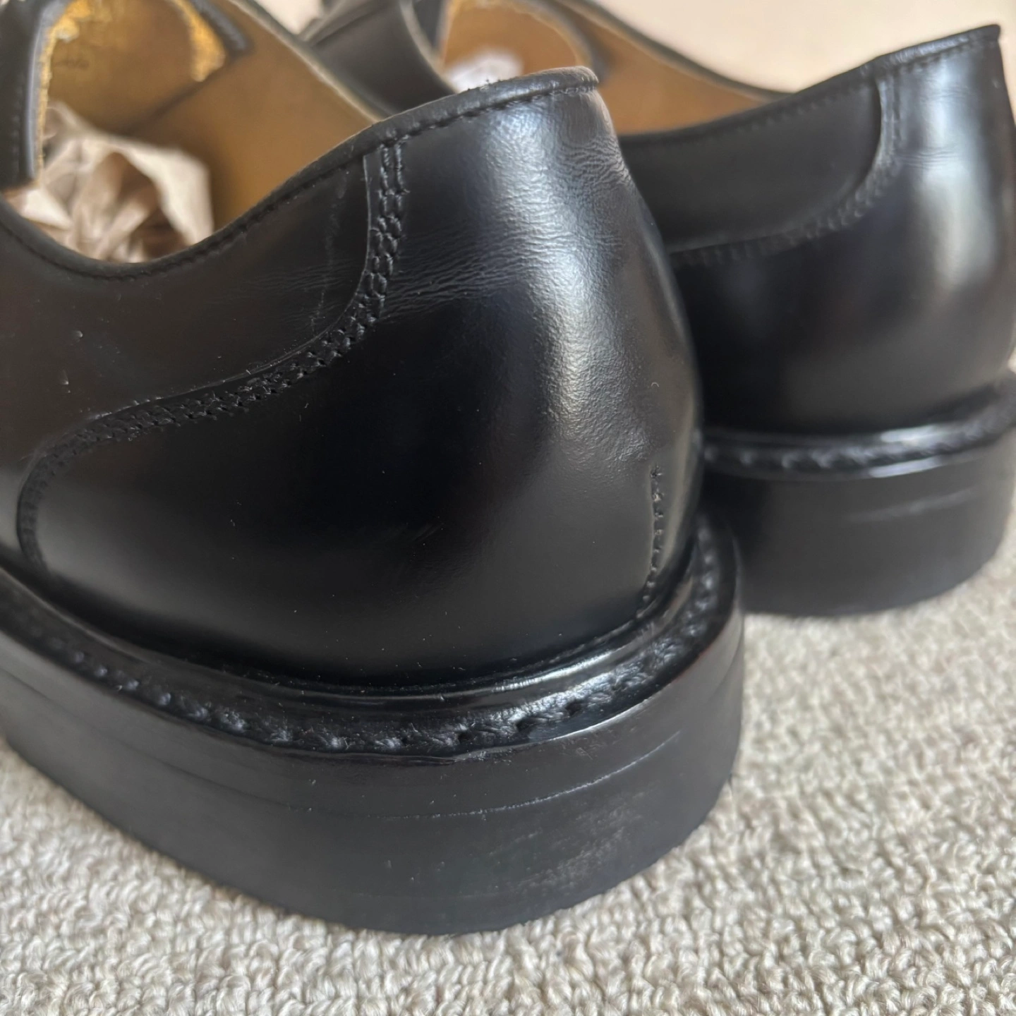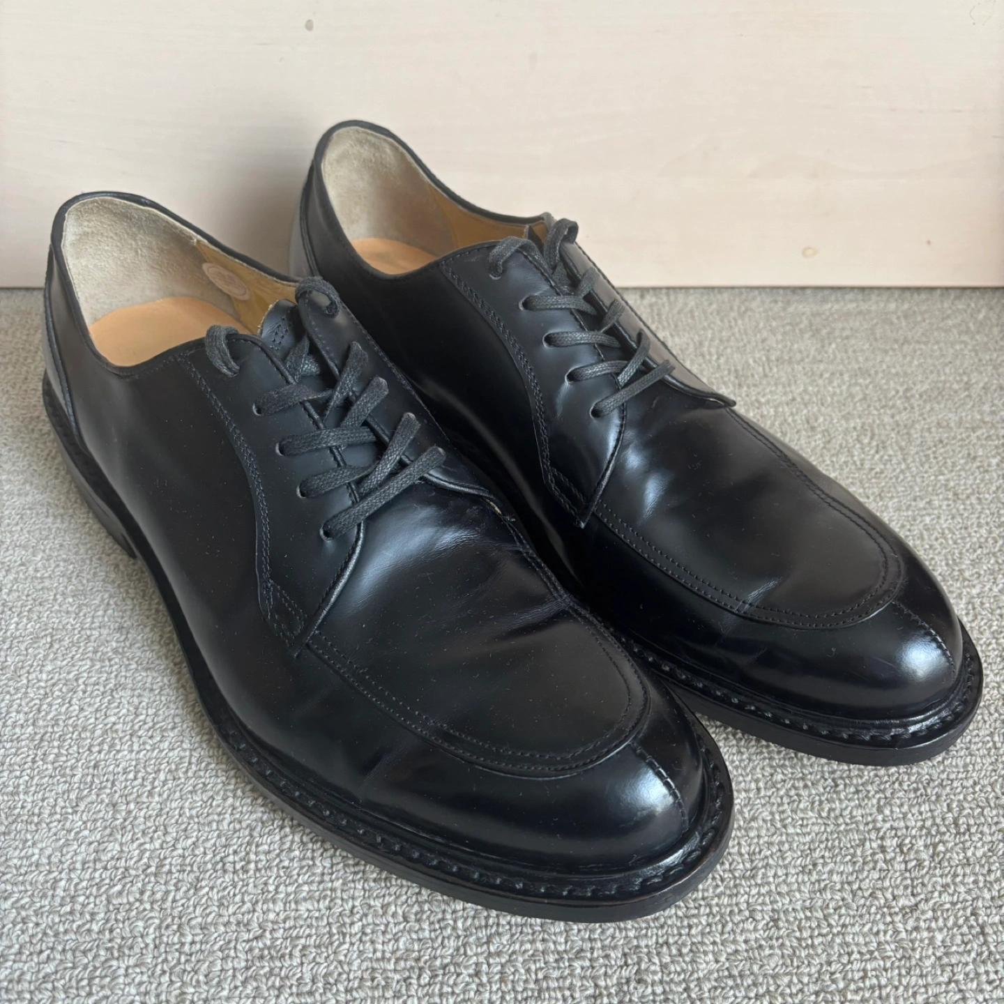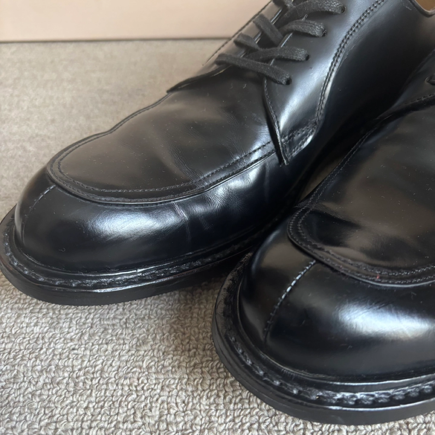 ビジネスシューズ プロムナード大塚 promenade 高級品 本革 ブラック 27 皇室御用達 皇室御用達と認められた大塚製靴の 高級革靴プロムナードです。 外羽式、グッドイヤー製法の本格的Uチップシューズ ビジネスに最適です。 27センチ ワイド アッパー、ソール(一部)に高級皮革を使用しております。 使用回数も少なく、かかと部分の減りもほとんどありません。あくまでも中古品となりますので、ご理解のある方の購入をお願い申し上げます。