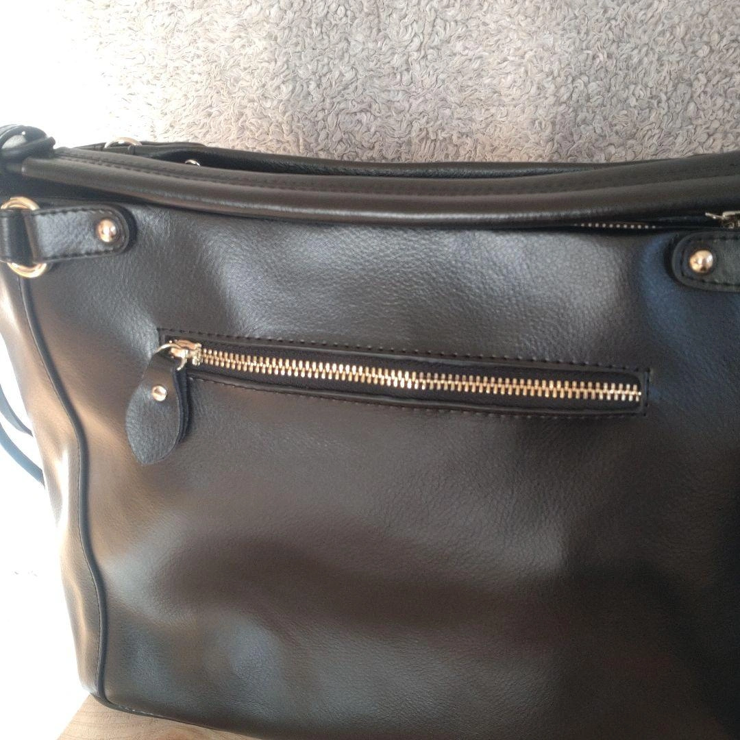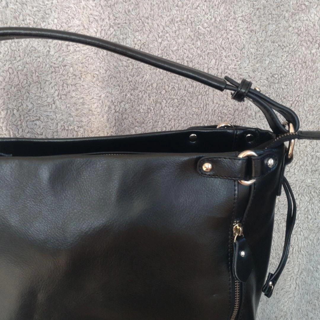 丸井で購入したレザーバッグです。 使用回数は数回なので状態は良いで す。 A4クリアファイルが入ります。 表側に左右小さめのポケット、後ろ面に一つポケットがあります。 内側はファスナーポケット一つ、オープンポケット二つあります。 肩紐は長さを変えられます。 左右の飾りのストラップに少し傷みと革の折れ目があります。(7枚目の写真をご参照ください) 表面に保管の際に付いた跡があります。 - 色: ブラック - 素材: レザー - デザイン: ファスナー付きポケット - ストラップ: 調整可能なショルダーストラップ - サイズ: 縦 約24.5センチ、横 約39センチ、まち 約13センチ ご覧いただきありがとうございます。