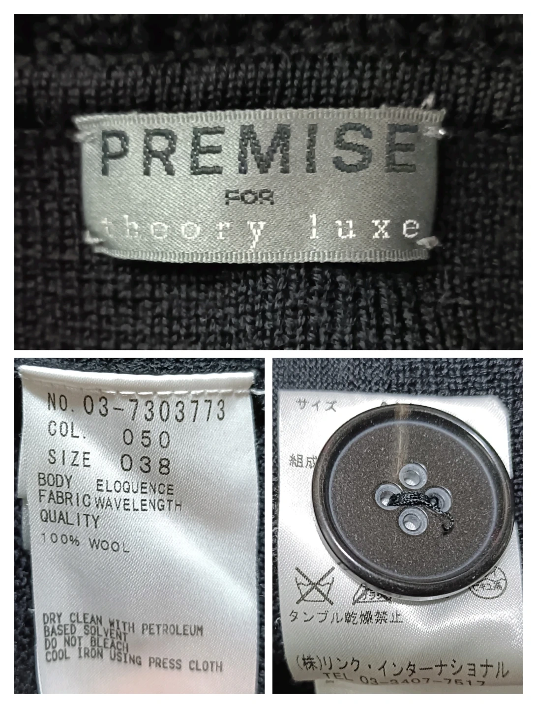 プレミスフォーセオリーリュクス ニットジャケット カーディガン 黒 38 ウール