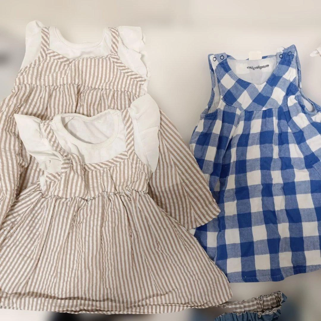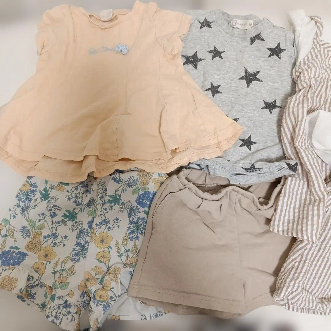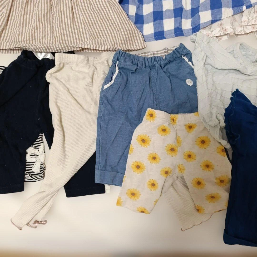 あたたかさ90-95の夏服22点セットです。 画面左上のオレンジのTシャツ、花柄ズボン、ベージュズボンがアプレレクールです。 左下の水色パンツはユニクロです。 青のチェックワンピースはムージョンジョンです。 と、西松屋など色々入っています。 姉妹で同じ柄を着せたく5センチ違いで同じ柄も購入しています。(ストライプチュニック、チェックズボン) ・チュニック首元少し汚れがみえます ・花柄ワンピース、首元にうっすらと汚れがみえます(柄の中であまり目立ちにくそうです) ・オレンジTシャツ寂しく見えて 自分でリボンを縫い付けていました ・素材によっては毛玉があります まだまだご利用頂けます(^^) 双子さんや年の近いお子さん、保育園着にいかがですか? バラ売りは1枚400円、2点目600円、3点目800円、5点1000円で承ります。その際は少しお時間ください。m(_ _)m - 色: 多色 - スタイル: ドレス、トップス、パンツ - 素材: コットン - デザイン: チェック柄、ストライプ、花柄 - サイズ: 95cm以下 ご覧いただきありがとうございます。