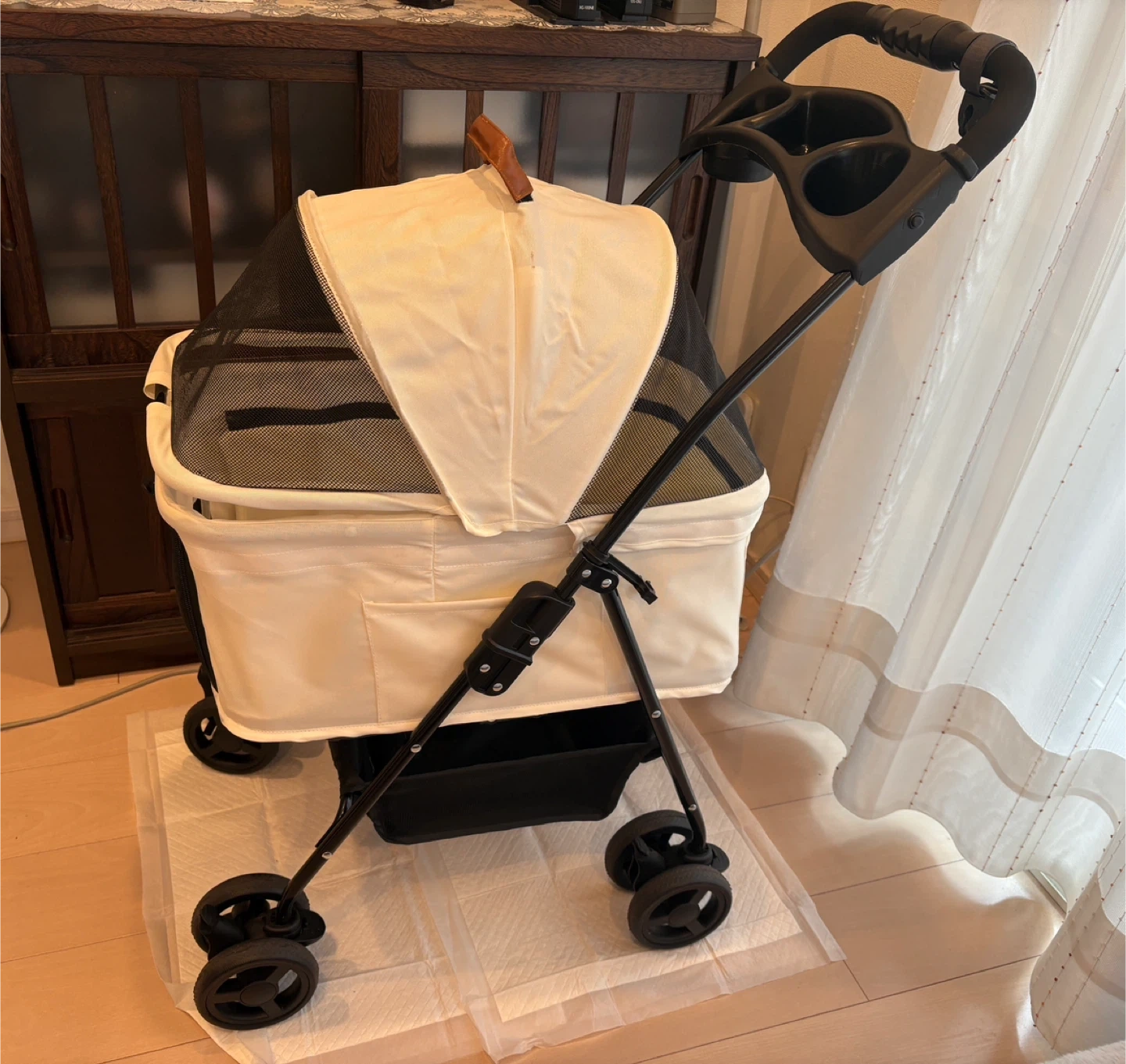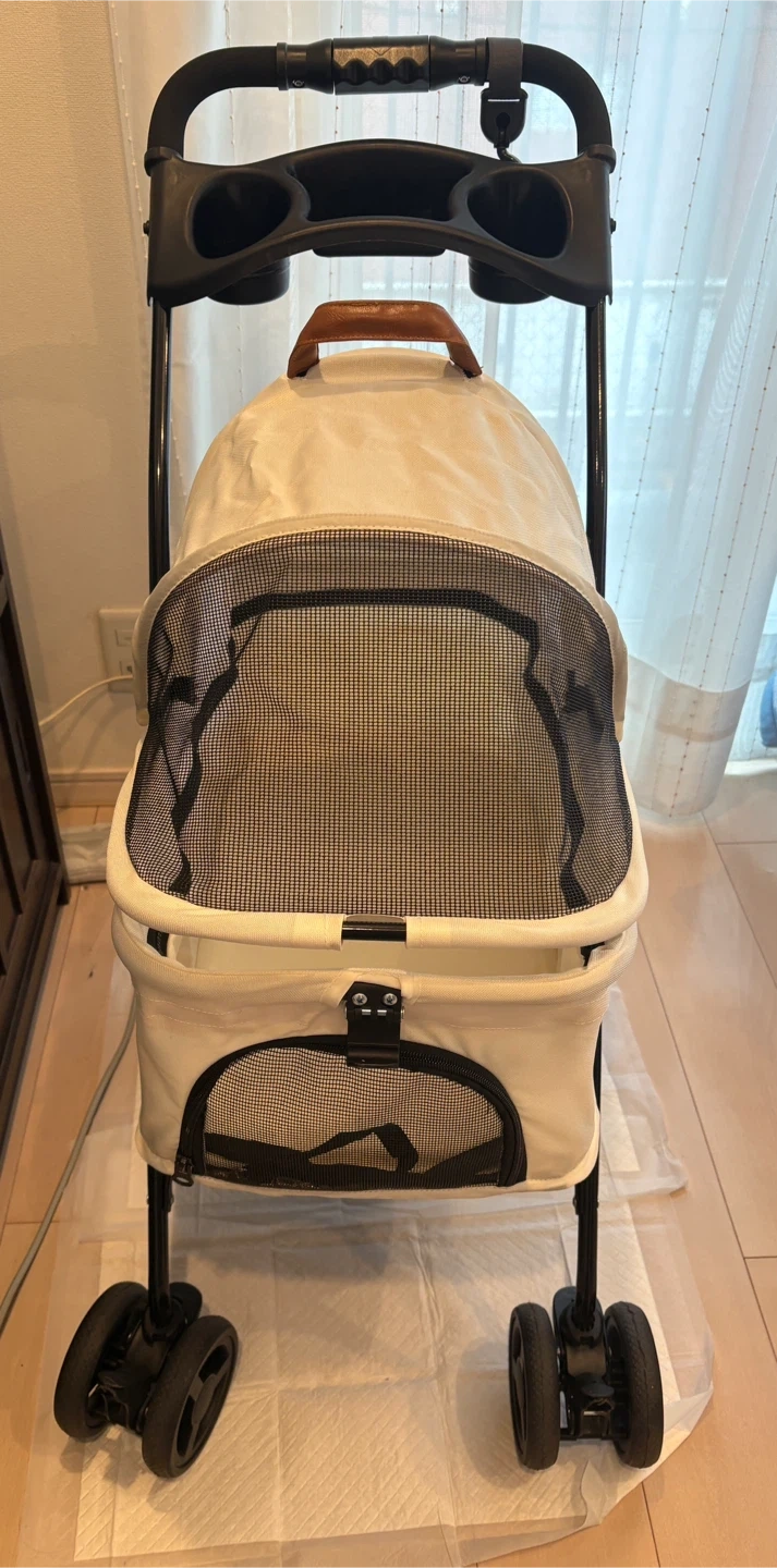 ペットカートです。 新しくペットカートを購入しようかと考え、今まで使用していたペットカートをお譲りすることに決めました。 基本下にマットなどを使用していたので、籠の中は割ときれいな方だと思います。 数回使用し、車のトランクの中に入れっぱなしになっていたので、そこまで汚れてはいないかとは思います。 ・色:白、黒 ・ペット用 ・数回使用。 ある程度の使用感ありますが美品 折りたたむことは可能です 中古品であることをご了承ください。