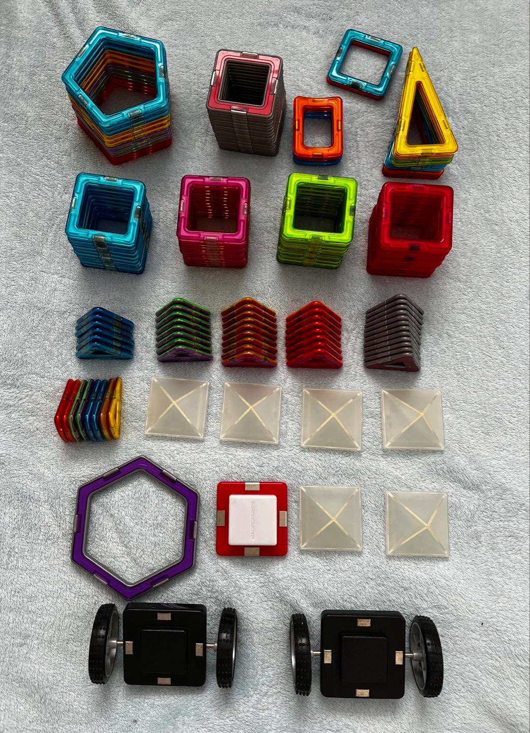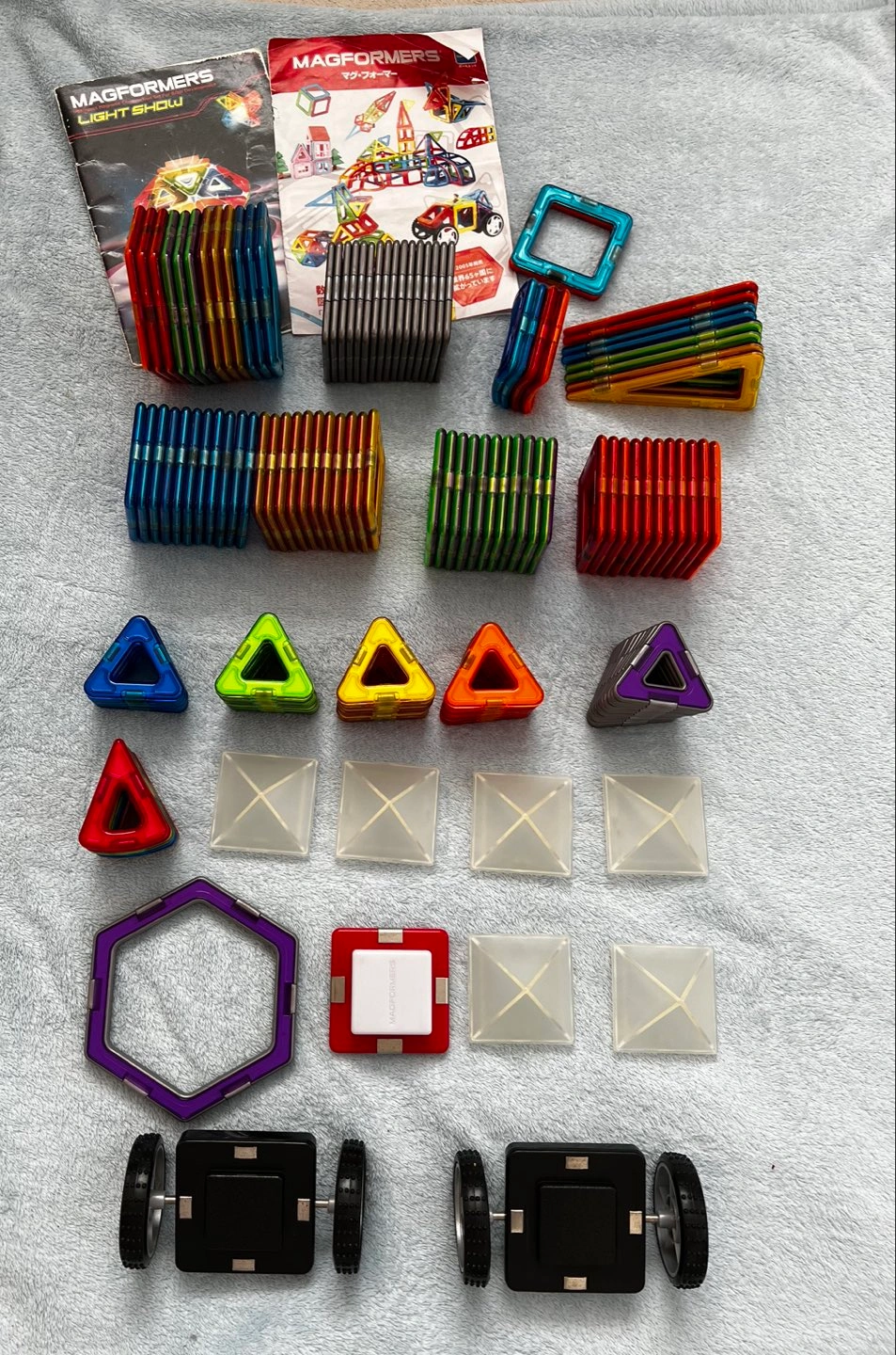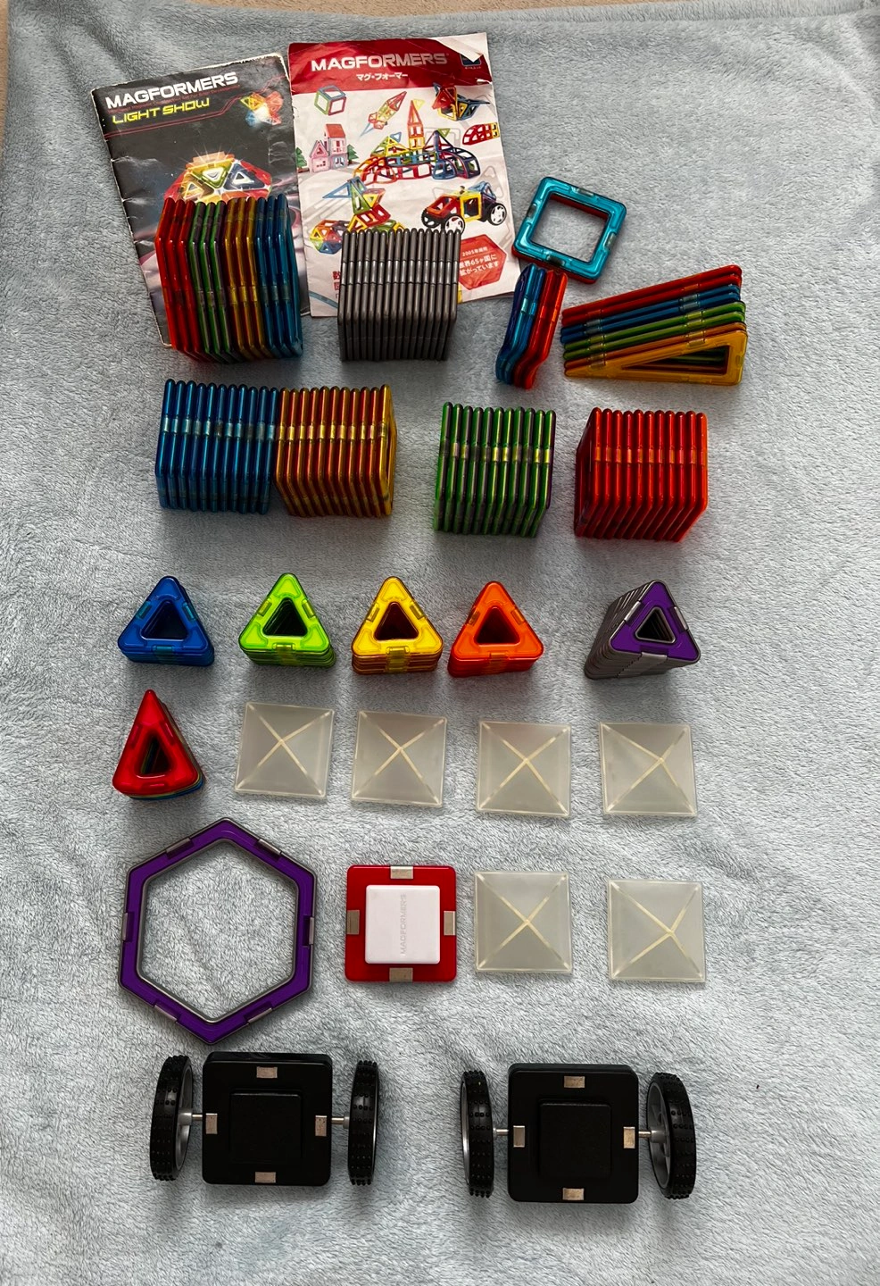 マグフォーマー 120ピース 吉祥寺東急のボーネルンドで買いました。 確かベーシック、乗り物、LEDセットを買いました。 全部で3万円くらいになると思います。 LEDは使った事がないので充電コードはありません。 ご希望でしたら、収納用に使っていたIKEAのクリアケースもさしあげます。 他にもパズルを出品します。 三鷹駅南口でのお渡しですが お近くでしたら相談可能です。