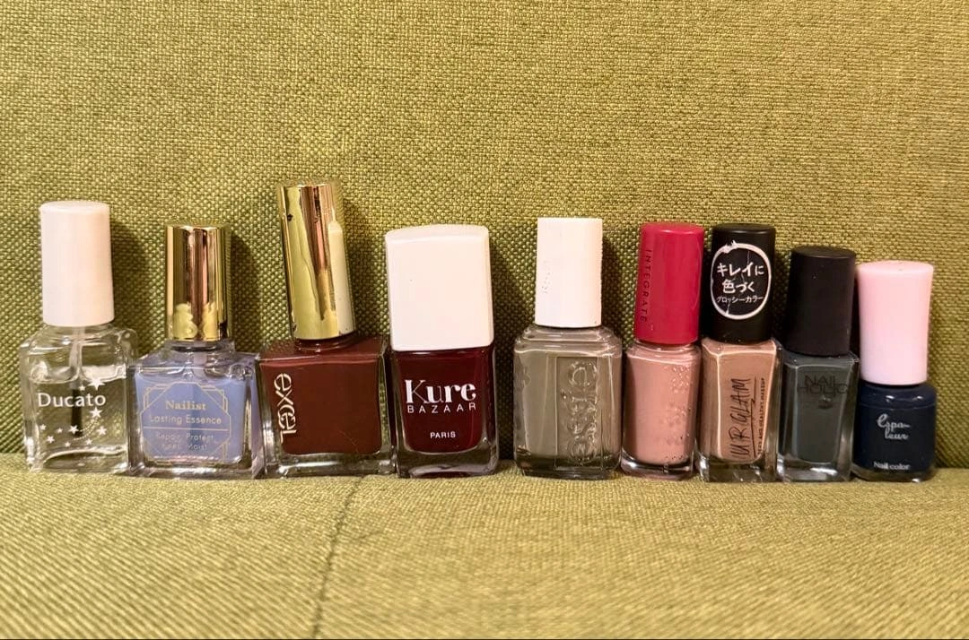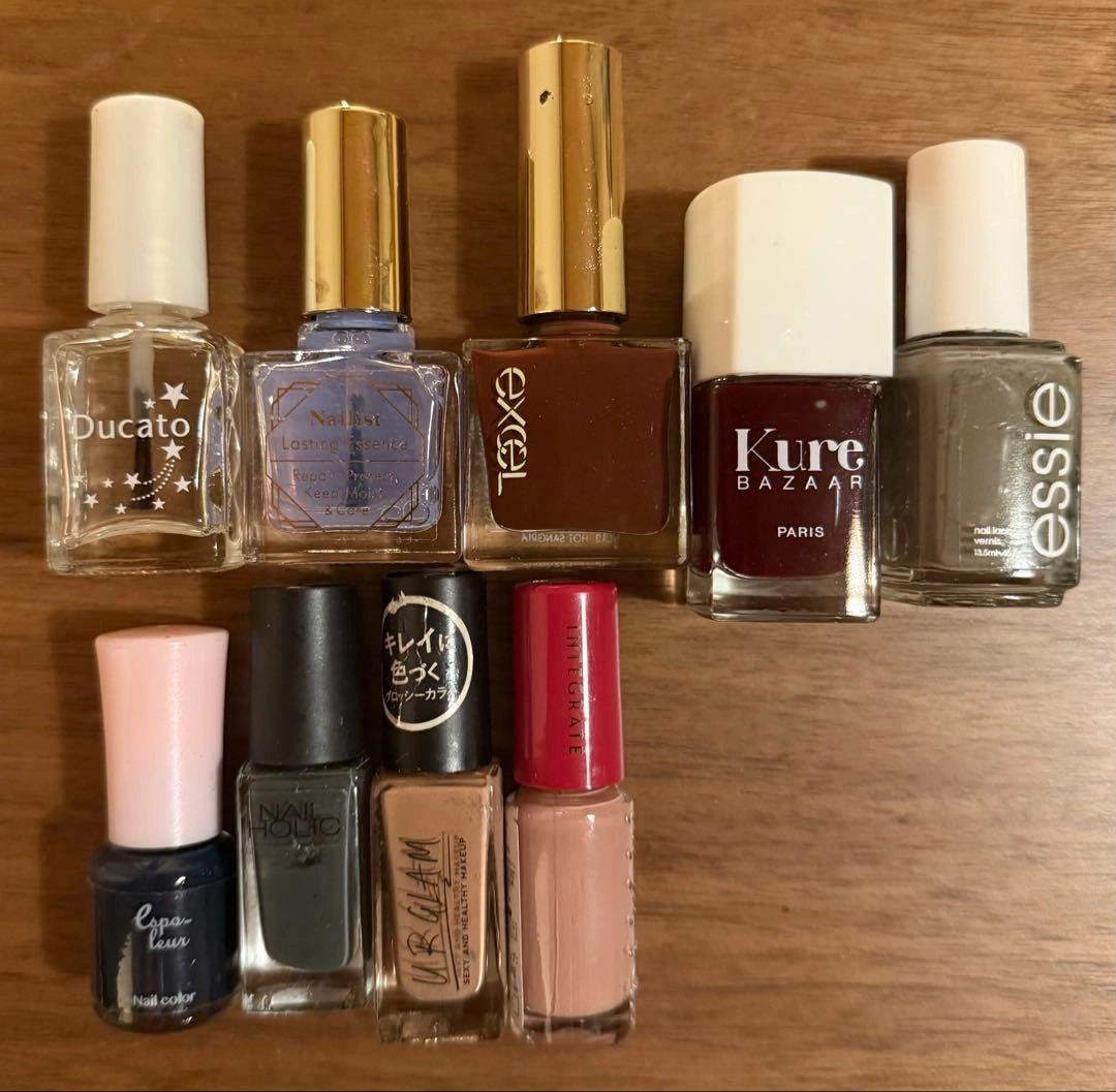 画像のものを送ります。 全て5割〜8割以上残っています。うち2本はベース・トップコートです。 固まっているものはありませんが、素人なので神経質な方はお控えください。 essie excel integrate インテグレート Nail Holic UR Glam KURE BAZAAR など。 ご希望の方はお気軽にご連絡ください。