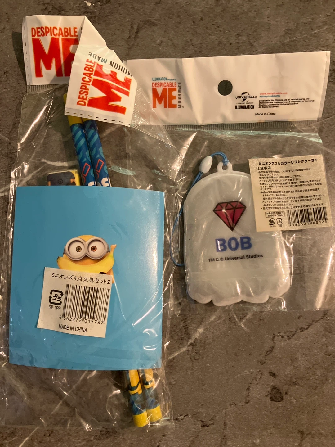 ミニオンズの文具セットです ・鉛筆2本 ・消しゴム1個 ・リフレクター1個 ・ミニオンズ4点セット文具セット