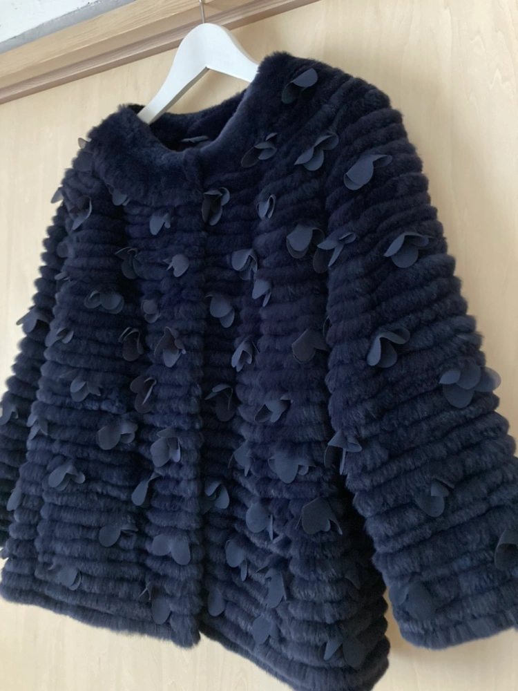 あたたかさ【状態】未使用 紙タグをお付け致します。 【サイズ】M 平置きで着丈55cm、袖丈49〜50cm 身幅56cm 袖丈はラインが付いていないため、ハンガーにかけた状態で計測したおおよその数字になります。 【カラー】ネイビー 【素材】タグの画像でご確認下さい。 【購入価格】110000円 珍しいデザインでかぶりにくく、とてもかわいいです♪ ボタンでしっかり留められるので、しっかり前を閉じられます☆ ☆お手数をおかけしますが、プロフィールページをご覧いただけましたら幸いです^_^ 正規店にて正規価格で購入した正規品です。 #→他の商品も是非ご覧下さい☆yu #ラビットファー #ミラショーンコート #ファーコート #ノーカラーコート #ショートコート #ミラション #ミラショーン #高島屋 #milaschon #milaschonコート #ジャケット #ショートコート #ショートジャケット #コート #ネイビーコート #未使用新品 #新品 #タグ付き #未使用 #結婚式 #フォーマル #フォーマルウエア #学校行事