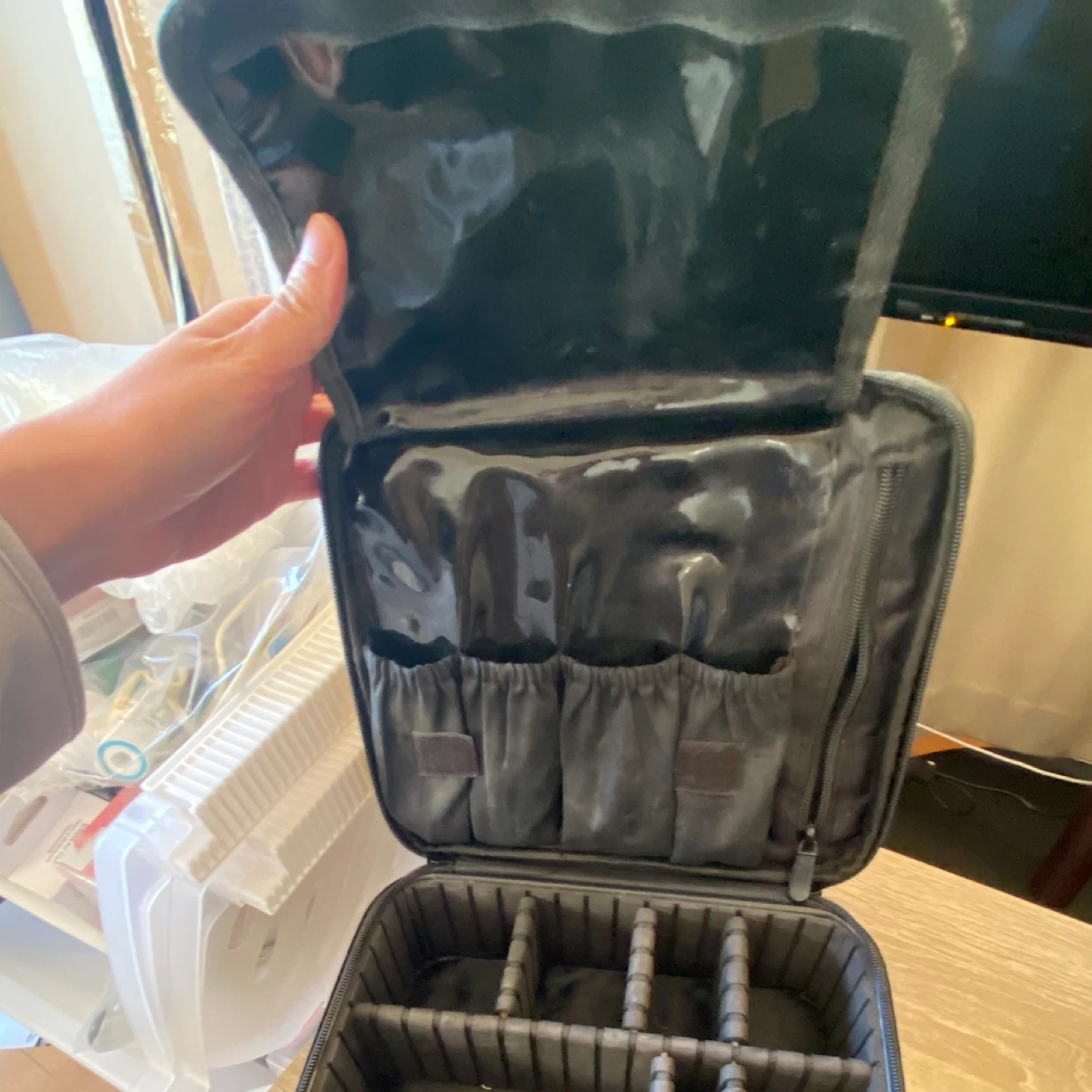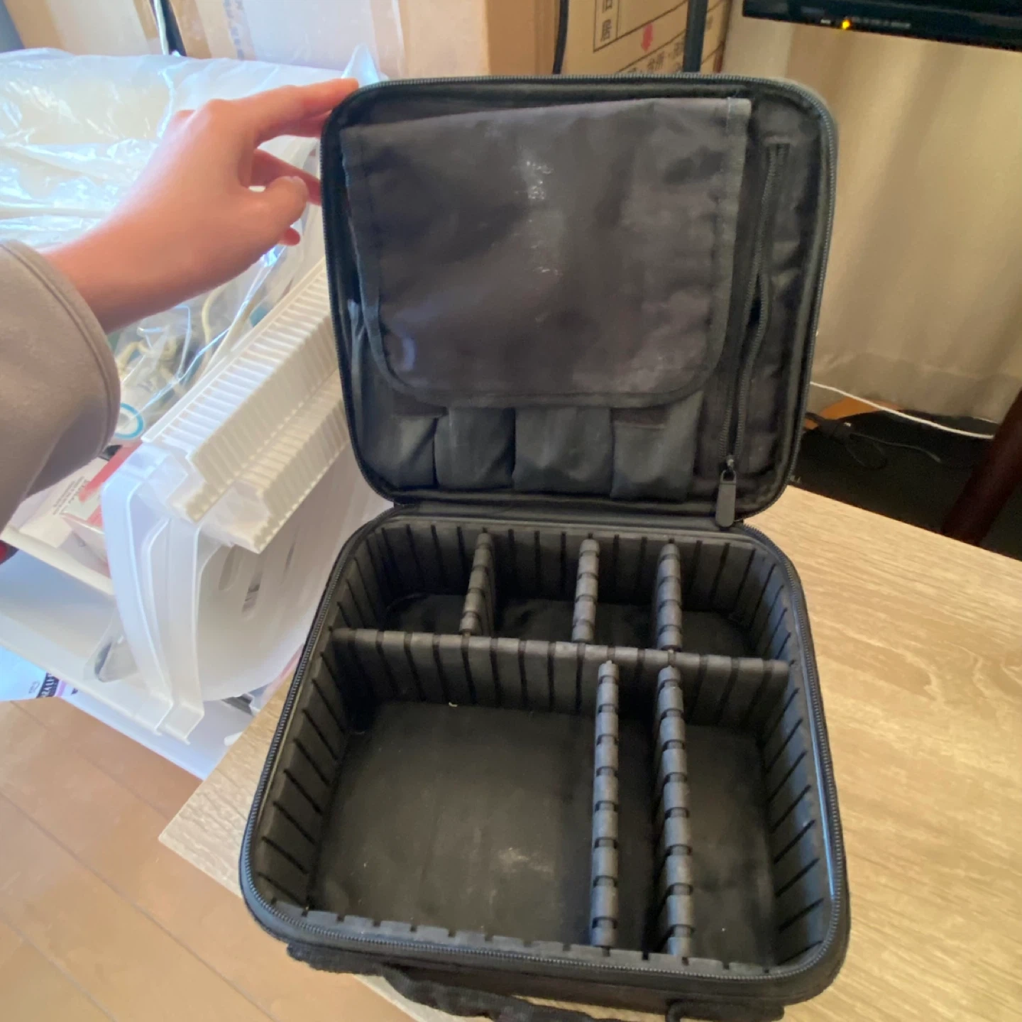 【12/18処分予定】メイクボックス大容量 メイクポーチコスメ収納 持ち運びブラック 化粧ポーチ(仕切り付き)
