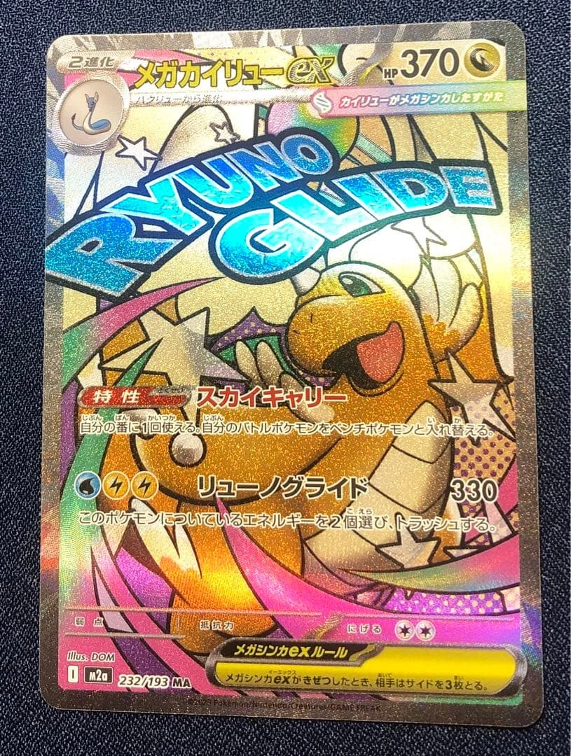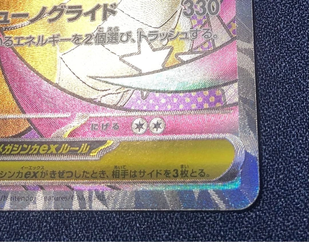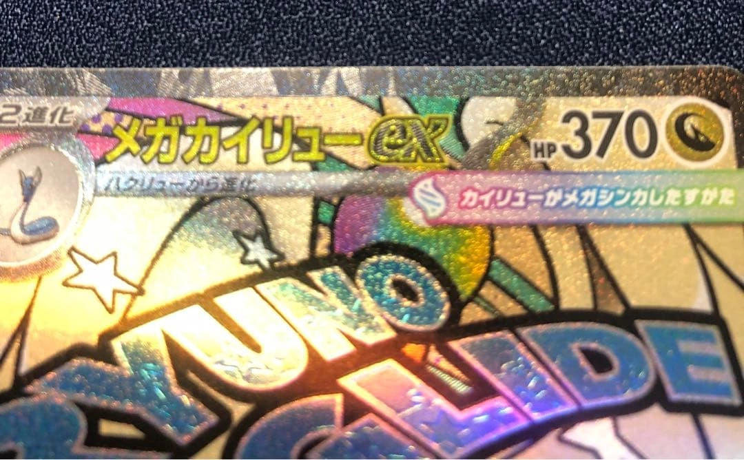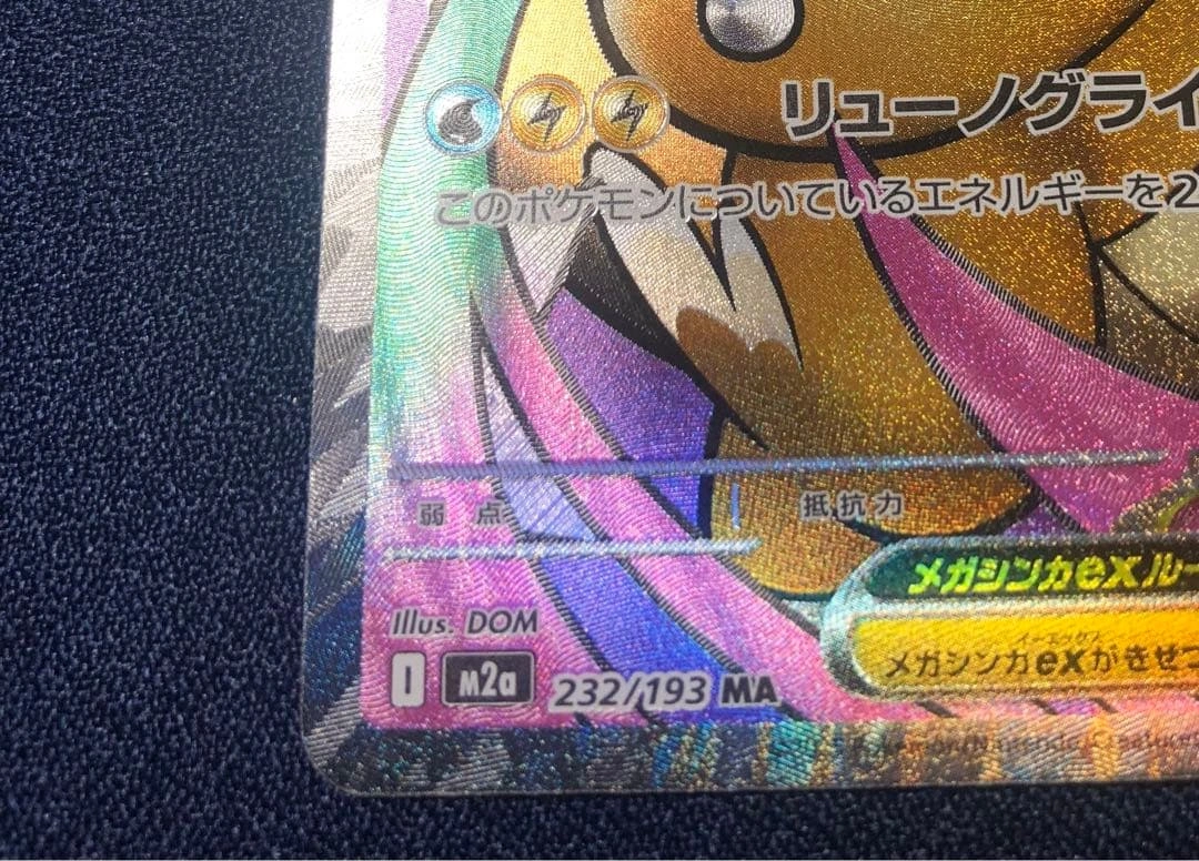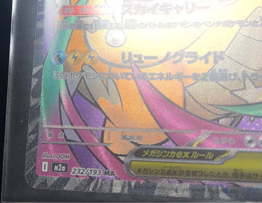 ご覧いただきありがとうございます。 ハイクラスパック「MEGAドリームex」収録のメガカイリュウex MA(232/193) です。 カード外周のエッジ部分に、製造時の加工ムラと思われる箇所があります。 細部は掲載している写真をご確認ください。 それ以外の状態は比較的きれいで、全体として良好です。 撮影後はすぐに防水・防傷タイプのスリーブへ入れて保管しています。 ▼ 商品詳細 •セット:MEGAドリームex •レアリティ:MA •カード番号:232/193 •状態:加工ムラあり(画像参照)/スリーブ保管 ※すり替え防止のため、購入後の返品はお断りしております。 ご不明点はお気軽にお問い合わせください。