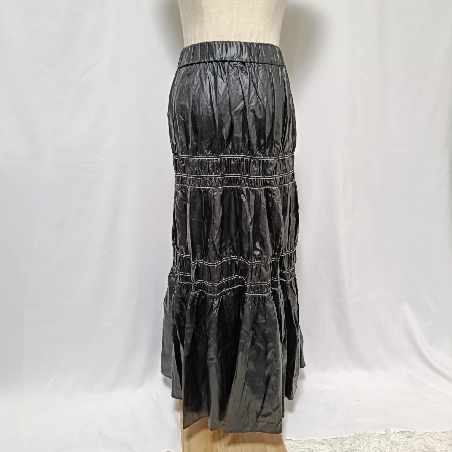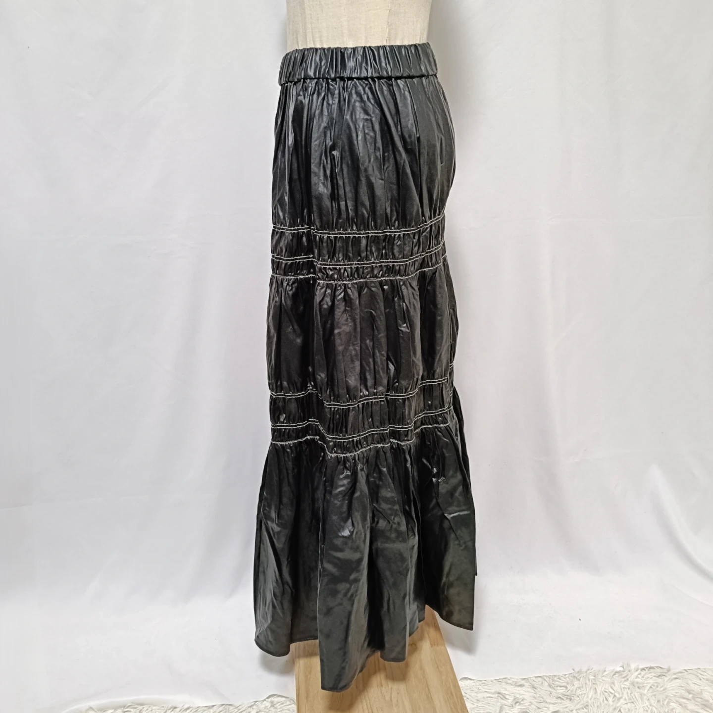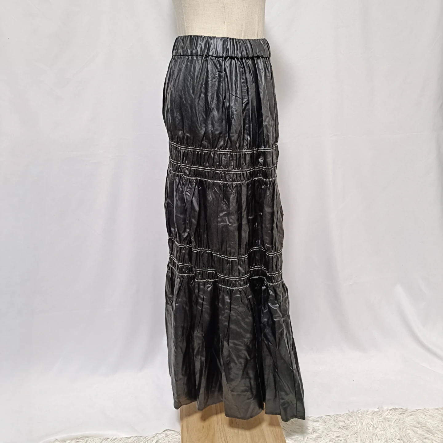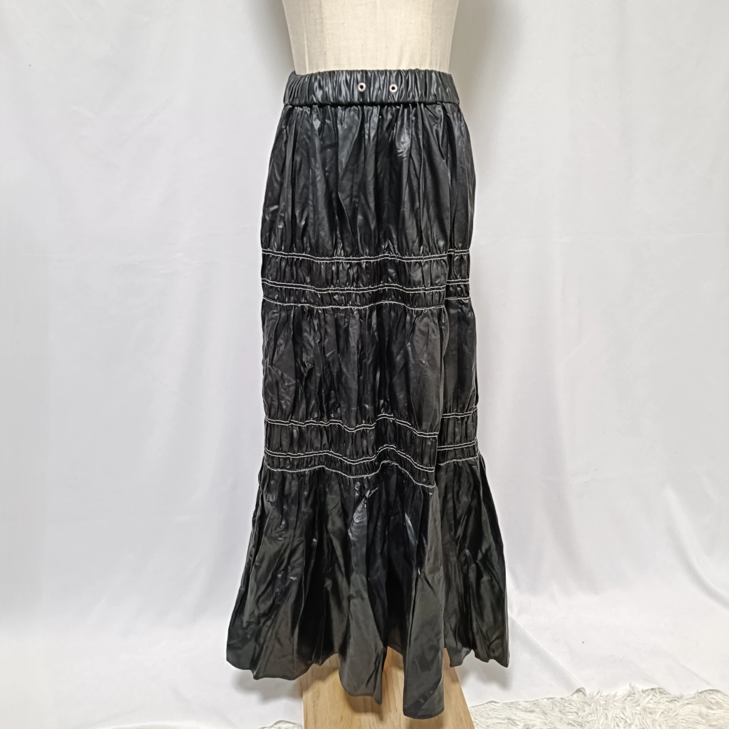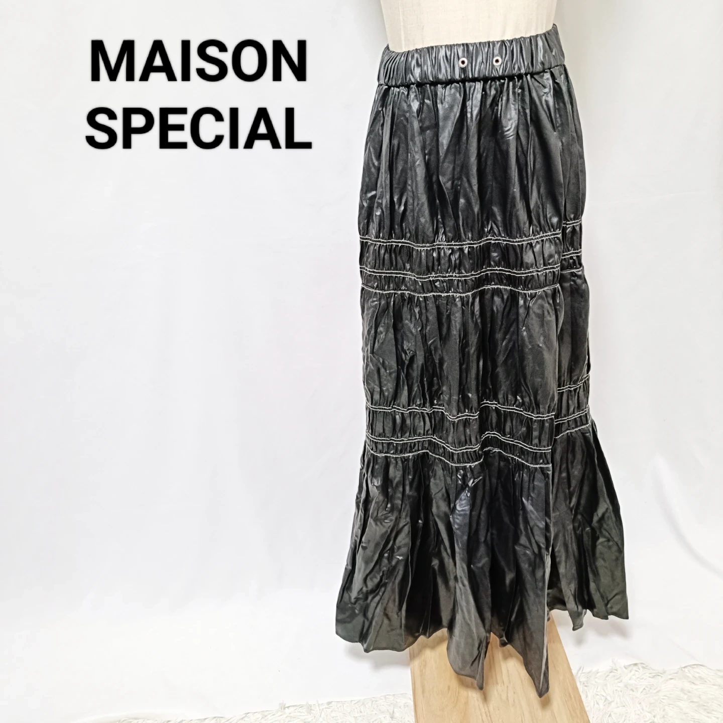 ご覧いただきありがとうございます! MAISON SPECIAL(メゾンスペシャル)のギャザーティアードスカートです。シンセティックレザー(合成皮革)の光沢と、ボリューム感のあるティアードデザインが魅力的な一枚です。 カジュアルなTシャツから、モードなブラウスまで、幅広いトップスと合わせやすく、コーディネートの主役になります。 □商品名□ 【メゾンスペシャル】ギャザーティアードスカート 合成皮革 FREE 黒 □ブランド□ MAISON SPECIAL メゾンスペシャル □表記サイズ□ FREE フリーサイズ □実寸サイズ(cm) □ 【平置きサイズ】 ウエスト:30 着丈:92 ※実寸につきまして多少の誤差はご了承ください。 ※表記サイズだけではなく実寸のサイズをご確認ください。 □カラー□ ブラック □素材□ 合成皮革 (SYNTHETIC LEATHER) □コンディション□ 目立った汚れやダメージなど特にございません。 ※汚れはできる限り写真にて掲載しております。まずは画像をご確認ください。 どうぞよろしくお願い致します。 □商品管理番号□ T1-W-5615