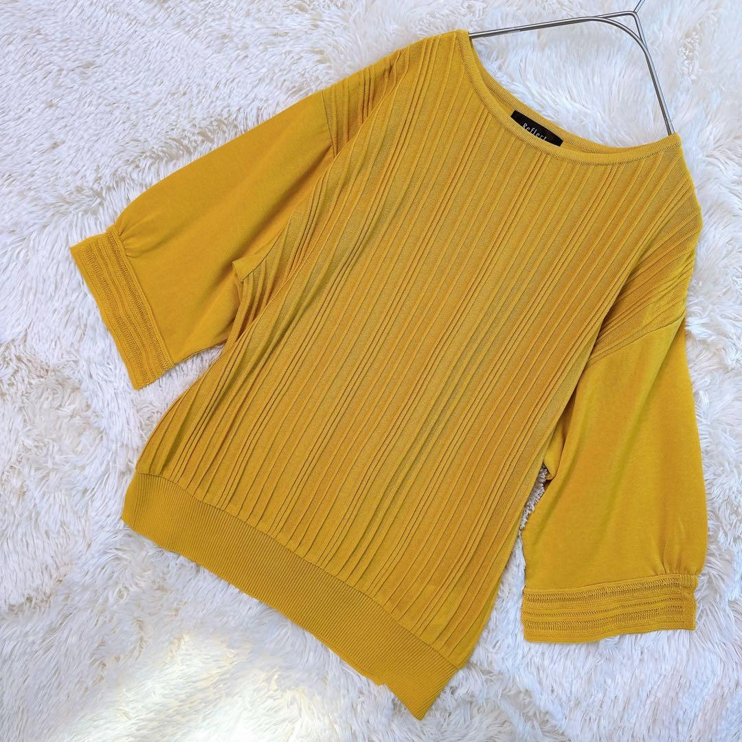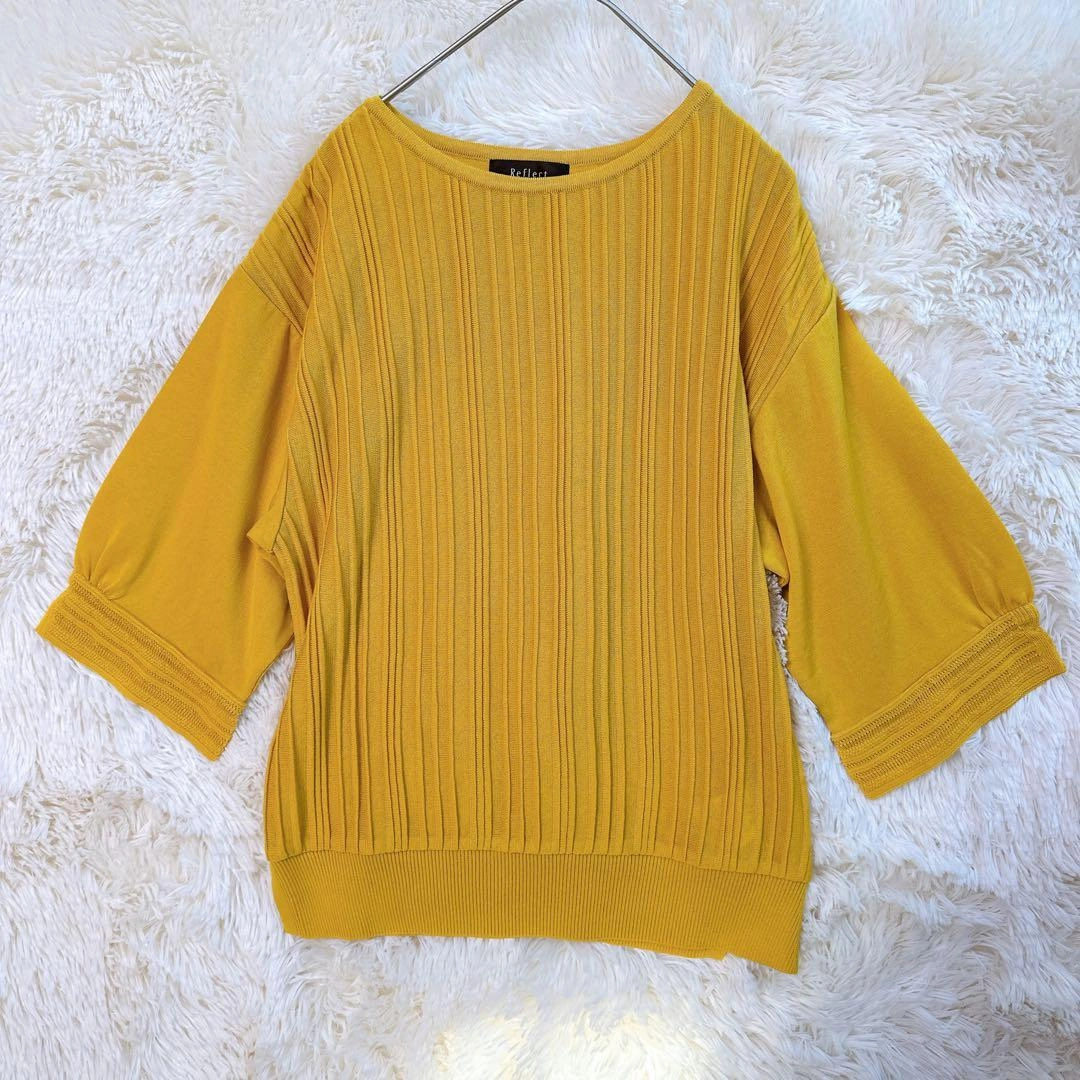 リフレクト ニット 9 五分袖 リブ編み コットン 美品 上品