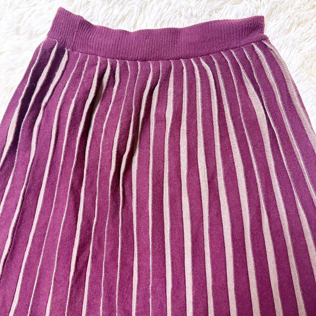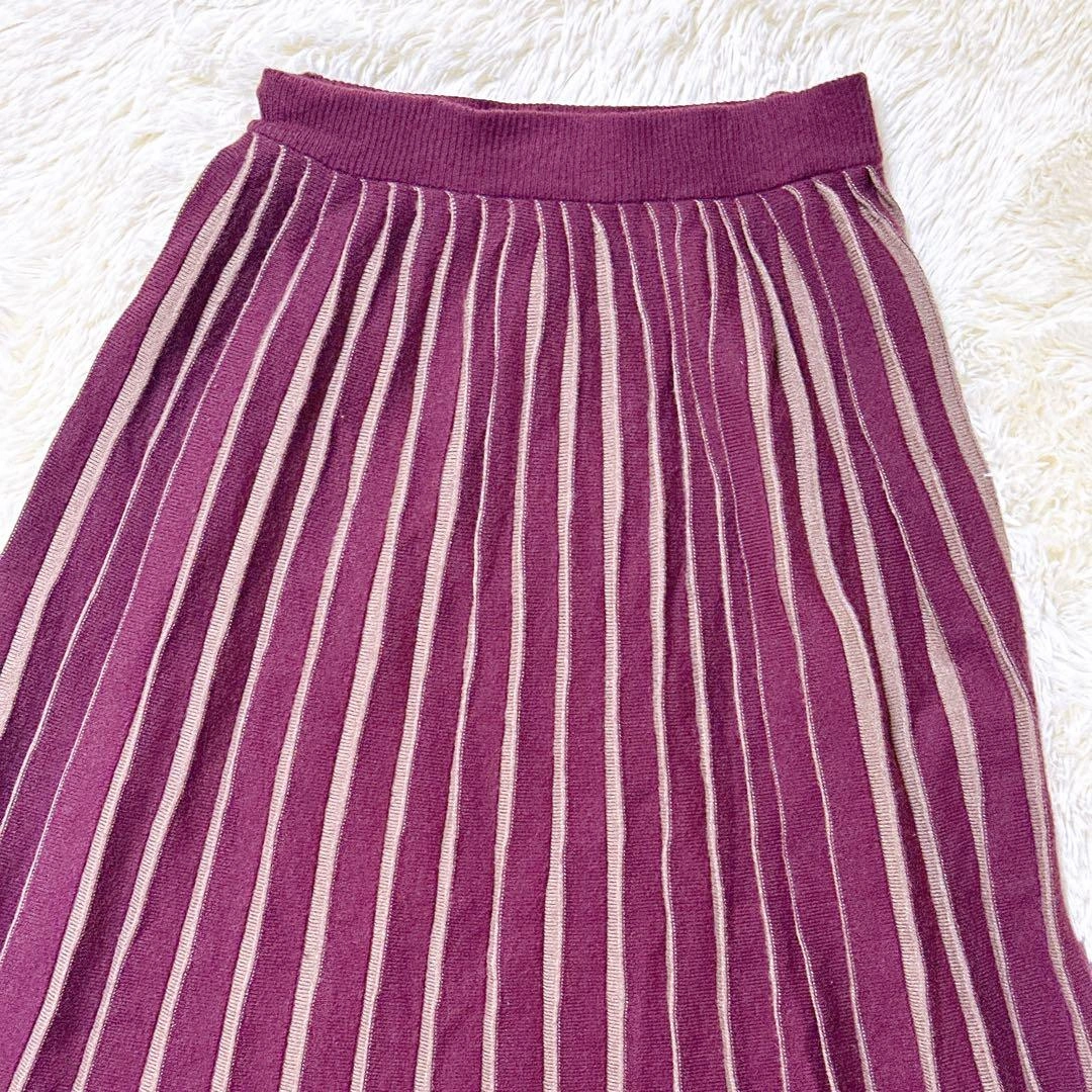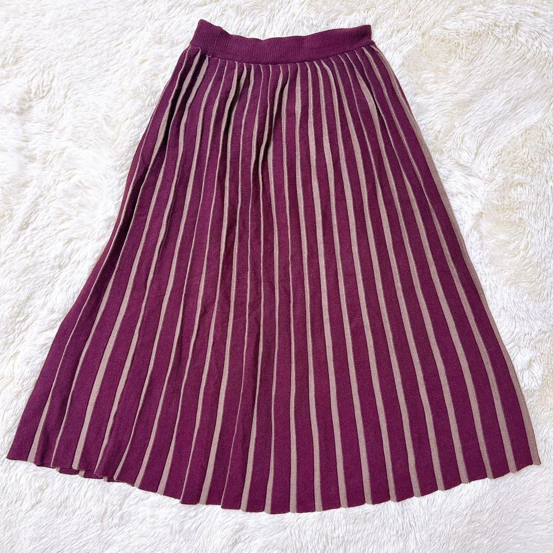 あたたかさレイカズン、紫とベージュのスト ライプが特徴のニットプリーツスカートです。 写真にてご確認ください。 ウェスト:32cm ヒップ:60cm 総丈:81cm 素人寸法のため、若干の誤差はご了承ください。 カラー···パープル系 柄···無地 季節···秋冬 汚れ・破れ・臭いなど···なし ご不明点はお気軽にお問い合わせください。