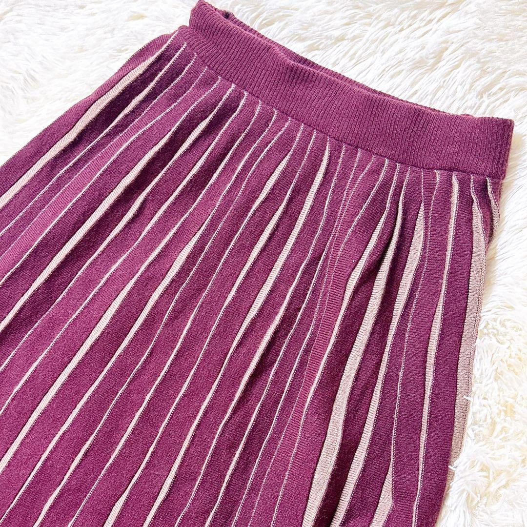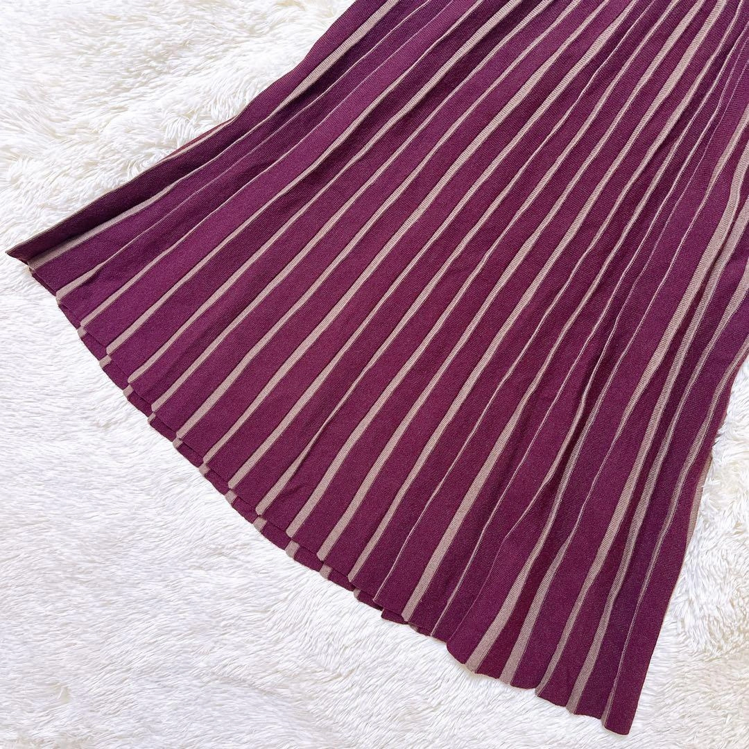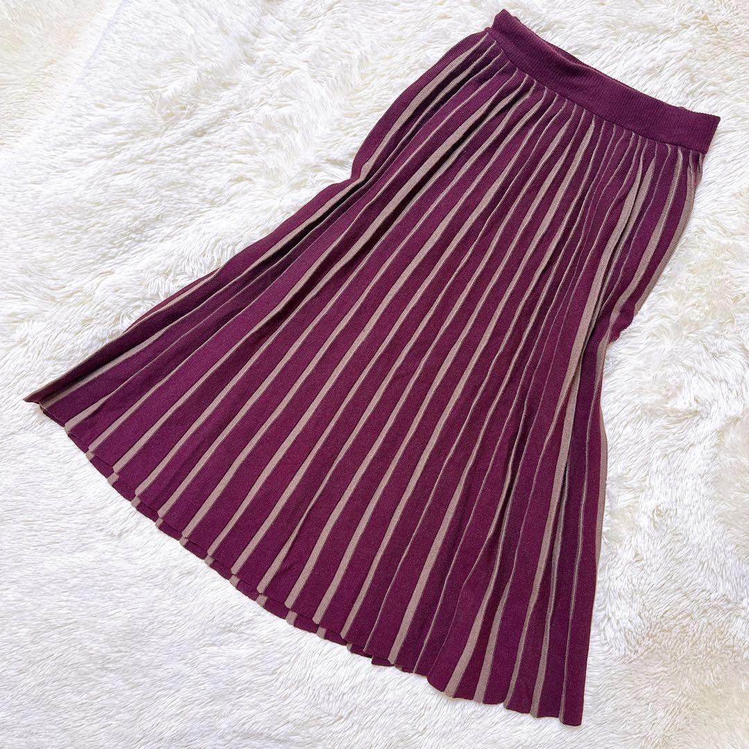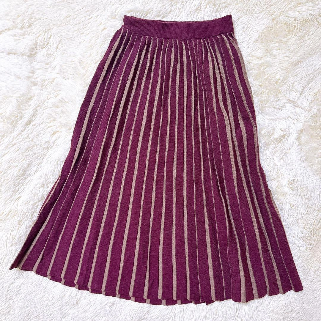 あたたかさレイカズン、紫とベージュのスト ライプが特徴のニットプリーツスカートです。 写真にてご確認ください。 ウェスト:32cm ヒップ:60cm 総丈:81cm 素人寸法のため、若干の誤差はご了承ください。 カラー···パープル系 柄···無地 季節···秋冬 汚れ・破れ・臭いなど···なし ご不明点はお気軽にお問い合わせください。