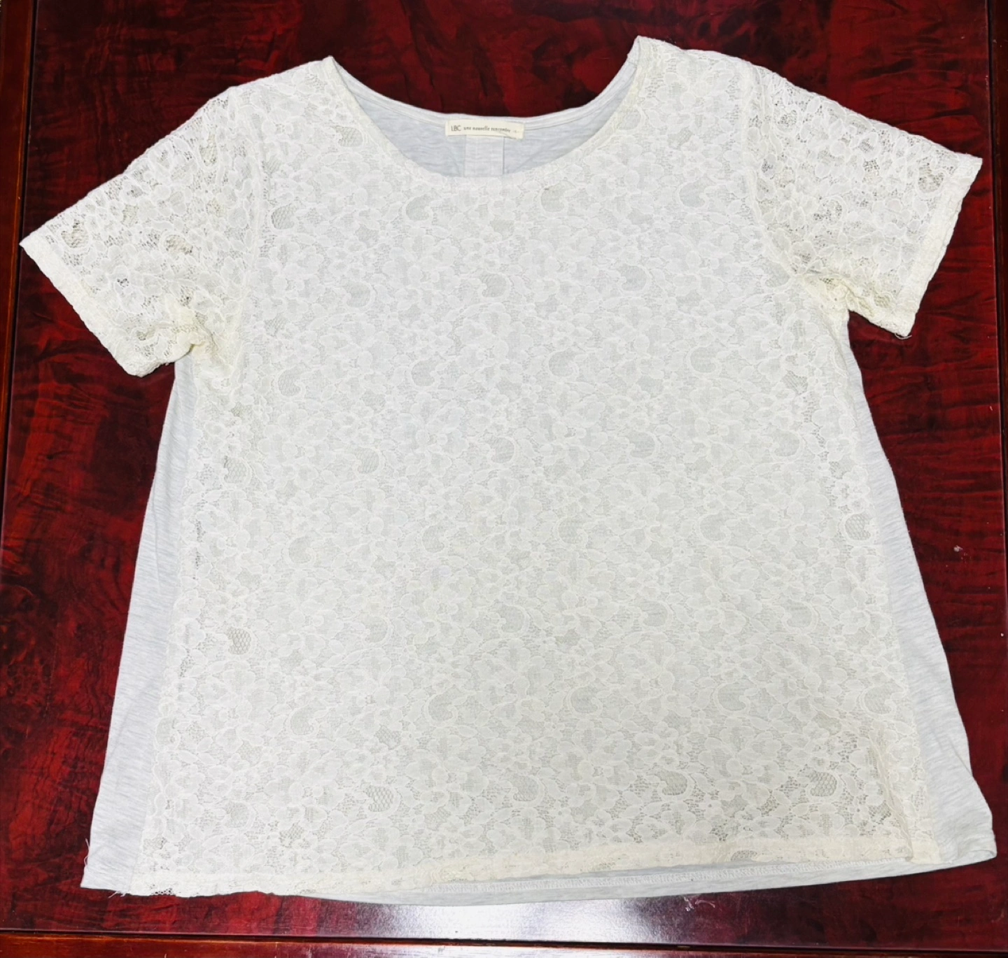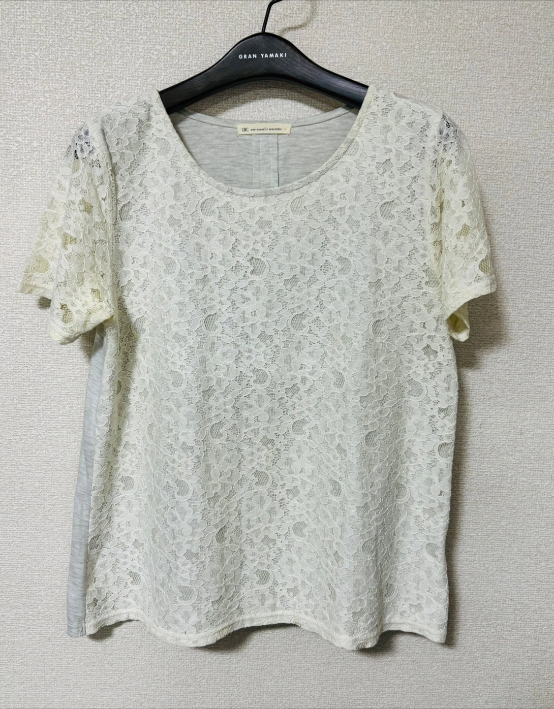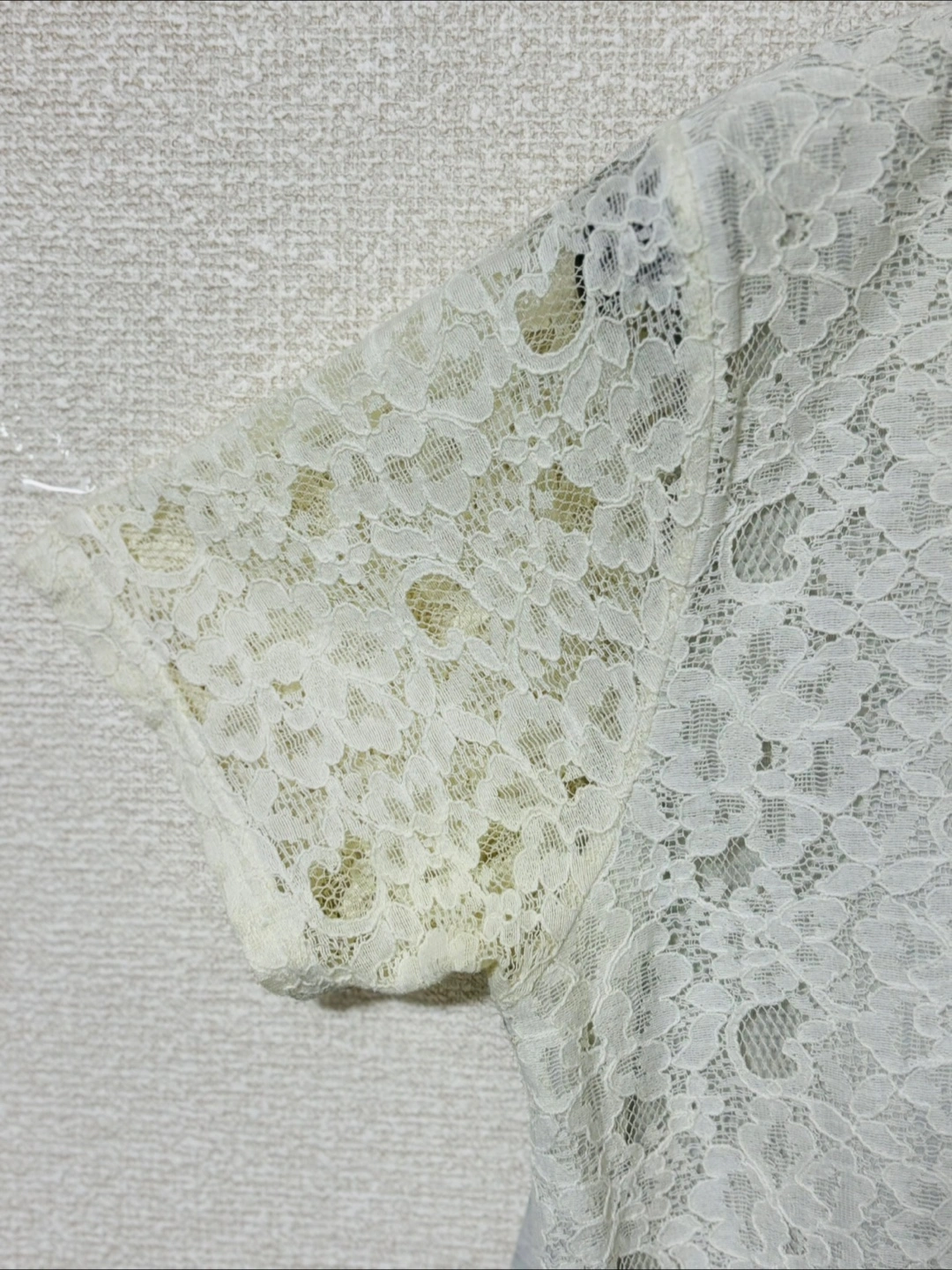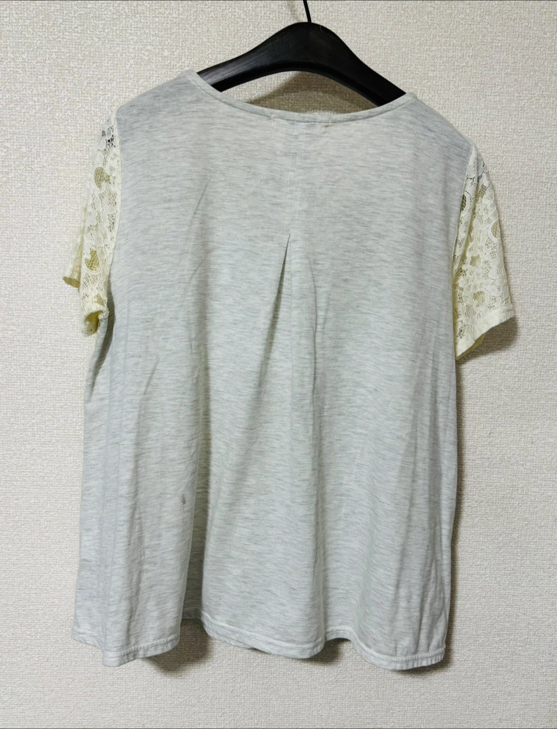 ご覧いただきありがとうございます。 前面と袖に花柄レースが施されたホワイトの半袖トップスです。 前面のレース生地の下と背面は薄いグレーの上品なLBCのトップスです。 背面にタックがあり裾広がりになっているので体の線が出ずゆったりと着られます。 ⚫︎サイズ L 肩幅 40㎝ 袖丈 20㎝ 身幅 49㎝ 身丈 55.5㎝ ⚫︎素材 本体 ポリエステル65% 綿 35% レース 綿 70% ポリエステル 30% ⚫︎状態 目立った傷み、汚れ等有りませんが、中古品である事をご理解の上ご購入いただきますようお願い致します。 ・ブランド:LBC une nouvelle rencontre ・Tシャツ ・サイズ:L ・色:ホワイト、グレー ・袖レースデザイン