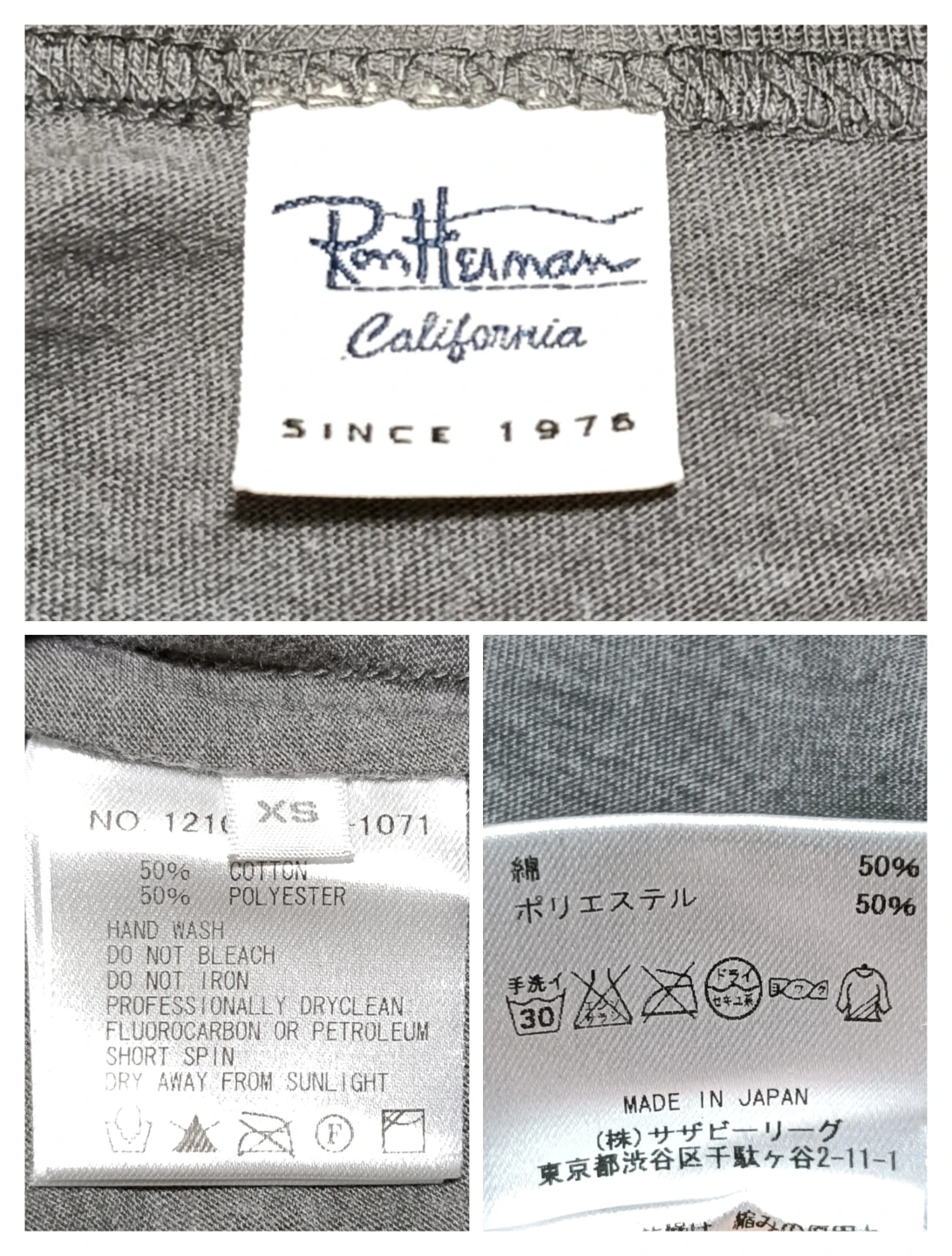 ロンハーマン Ron Herman Vネック Tシャツ グレー XS 日本製