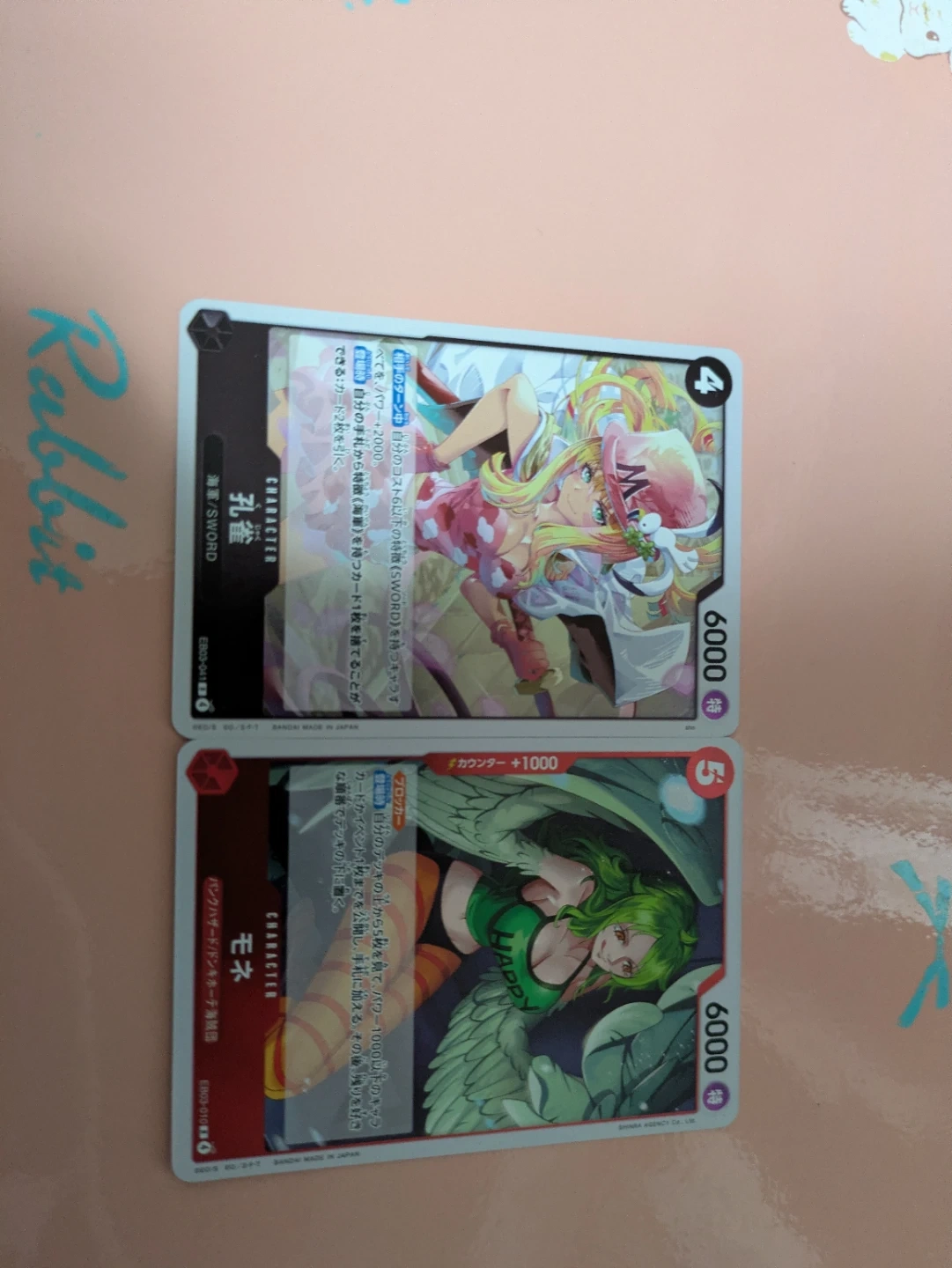 ワンピースのカードゲームです。 ・キャラクター:孔雀、モネ ・状態:目立つキズなし ご不明点があればお気軽にご連絡ください 武蔵境駅までなら持っていきます。 平日の8時半から夕方4時半まで仕事なので連絡くれても遅くなります。