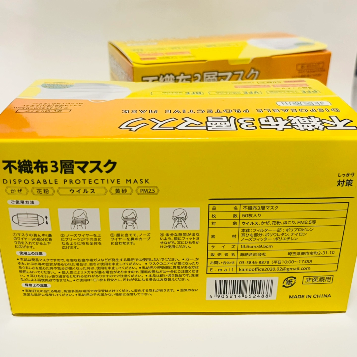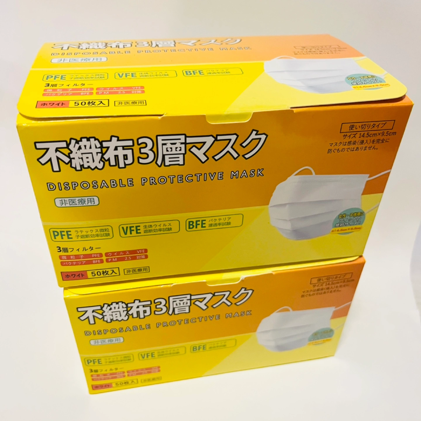 ※もちろん、新品・未使用品です! 不織布三層マスク ホワイト 女性・子供用 14.5cm×9.5cm 合計 100枚 (50枚入/箱 ×2箱)