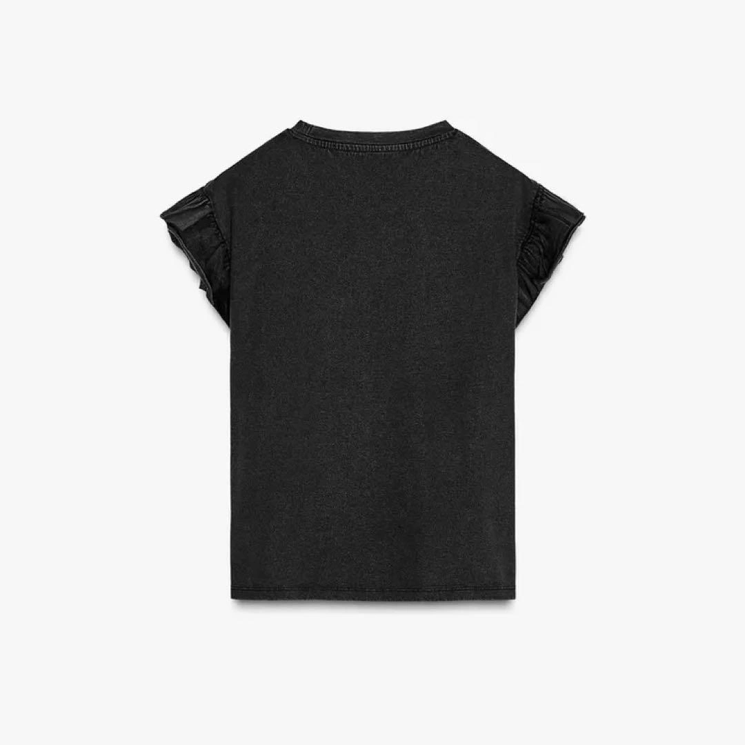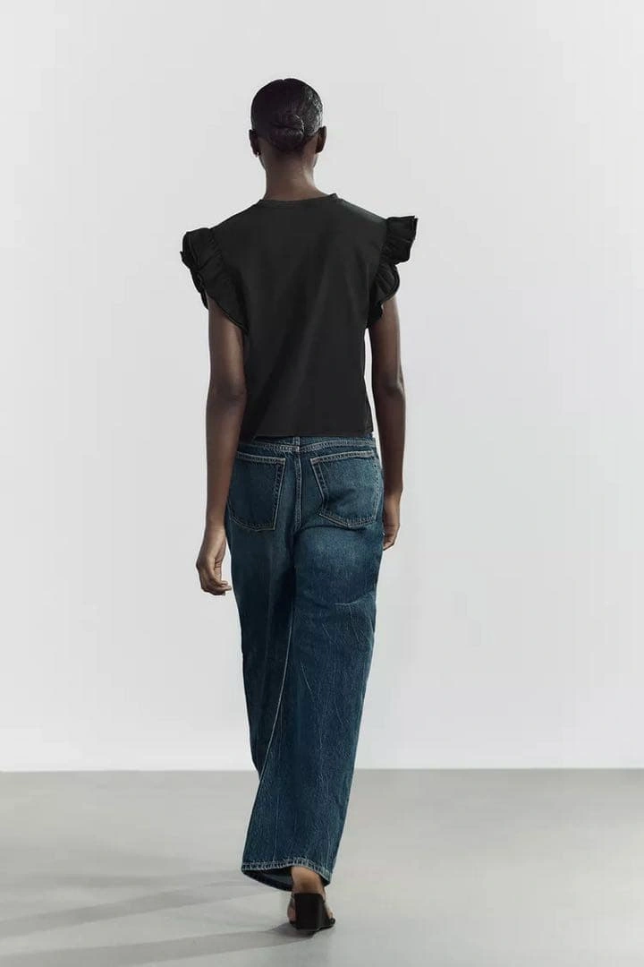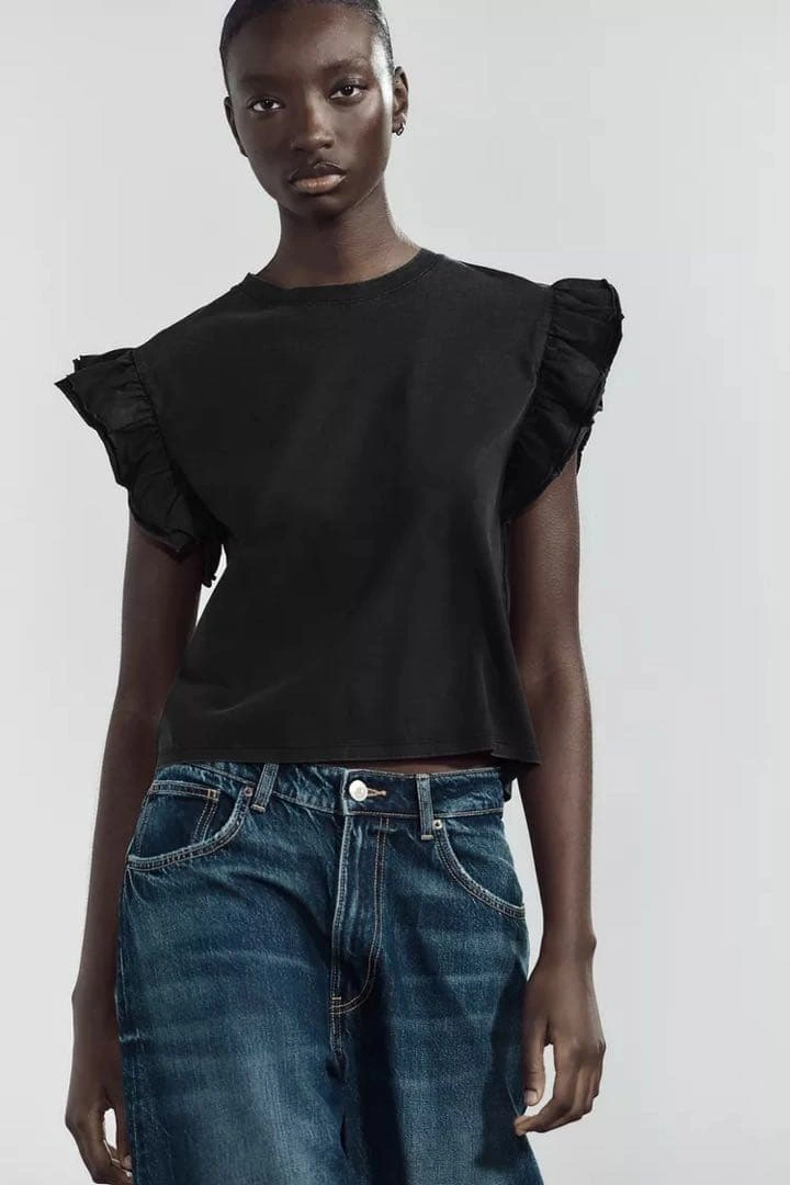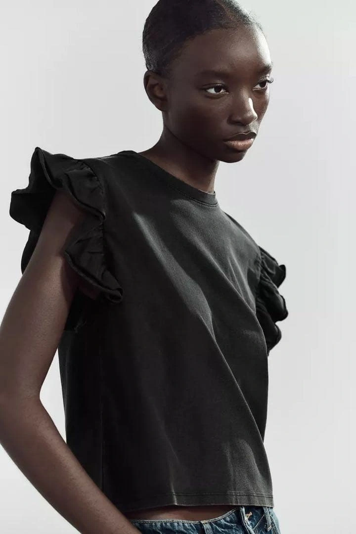 【サイズ】 L 胸囲 53 前着丈 57.5 背幅 41.5 【カラー】 ブラック ウォッシュ加工 ※濃いチャコールグレーのよう な優しいお色味です。 【素材】 コットン 【詳細】 ZARA(ザラ) ウォッシュ加工フリルTシャツ ヴィンテージ感のあるウォッシュ加工がおしゃれなシャツです。ふりふりのスリーブがアクセントでゆったり着られます。 【状態】 一度着用、目立った傷汚れございません。ヴィンテージ加工は元からです。 自宅保管のため、折りたたみシワなど神経質な方はご遠慮下さい。気になる点は購入前にコメント下さい。 【その他】 トップスを購入しすぎたので、出品いたしました。まだ自分で着用するかも迷っております。 ご不明点はお気軽にお問い合わせください。 フリル袖 ノースリーブ 黒 ブラック