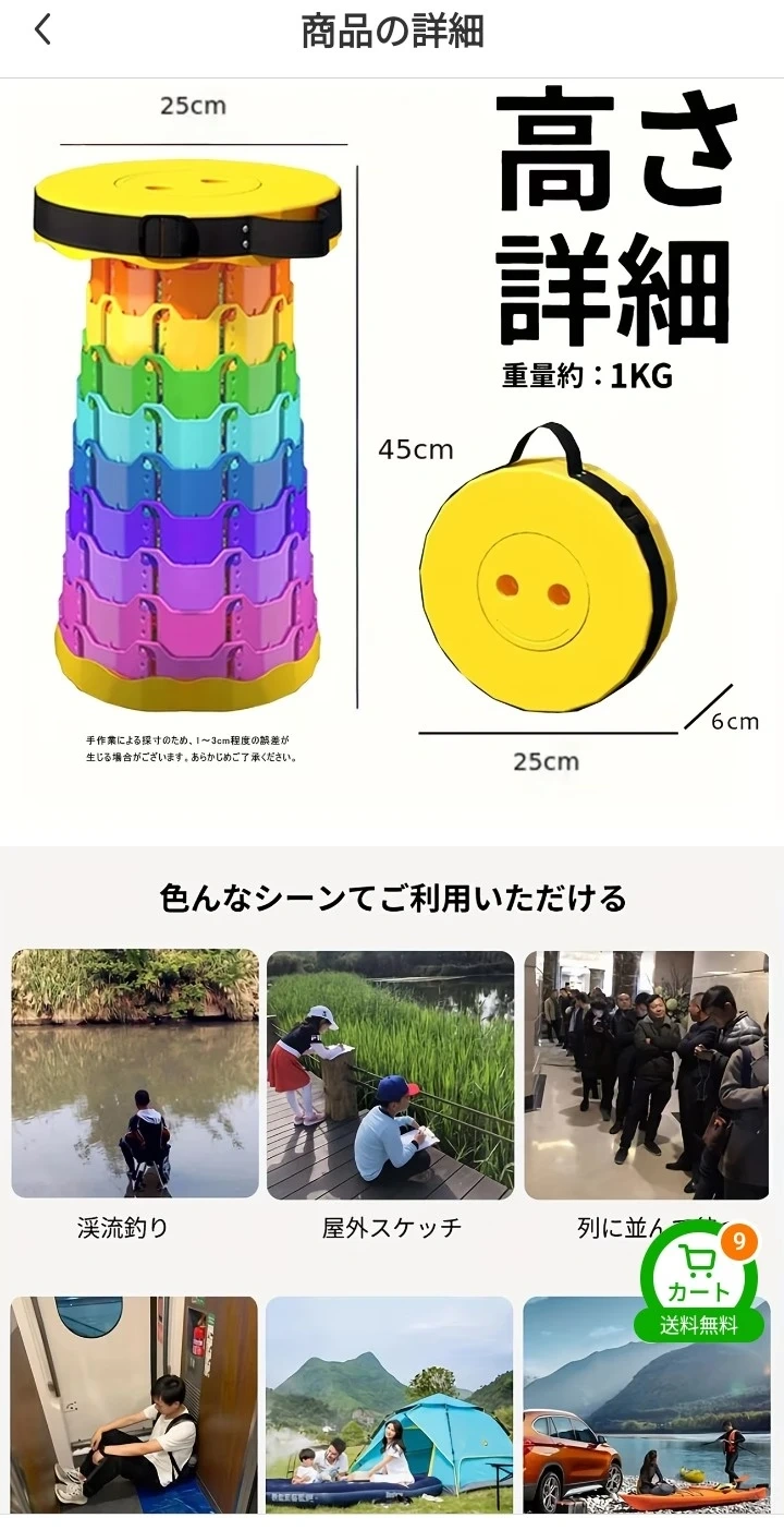折りたたみ椅子です。 ・色:黒、 ・高さ調整可能 ・持ち運び用ストラップ付き あらゆるシーンで大活躍します。 受渡しは横浜市緑区中山駅北口徒歩3分の セブンイレブン中山北口店前で お願いします。駐車場はありませんが、 全面道路広く、停められます。 横浜線中山駅改札、地下鉄グリーンライン改札もお受けします。 日にちにもよりますが、am8-pm8 対応できます。