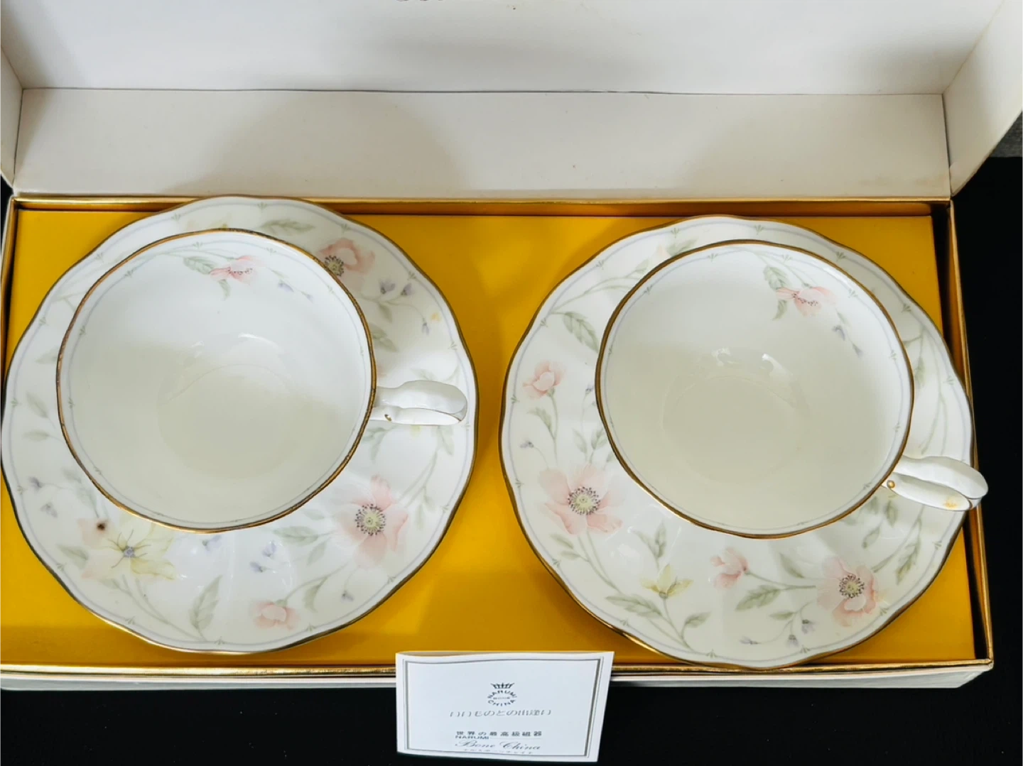 【新品未使用】世界の最高級磁器NARUMI ボーンチャイナ花柄ティーカップセット