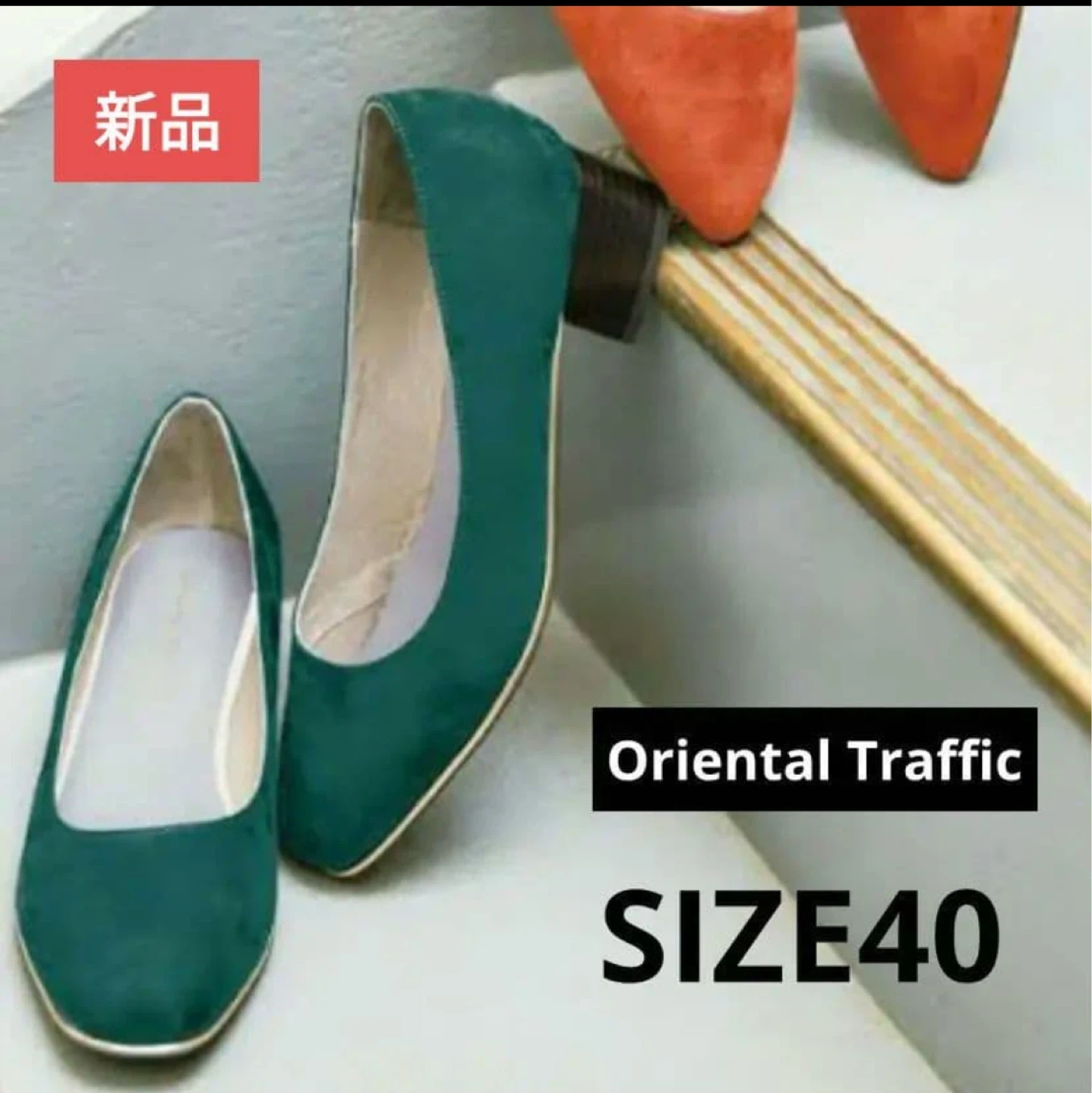 Oriental Trafficのスクエアトゥ ヒールでカラーは高見えのGREENです。使用したことがないですので美品です。 定価6490円 一度も着用せず箱で保管しておりました。 ●サイズ: サイズ 40cm ヒール高さ...4cm ●ソール素材:合成素材 ●耐水レベル:耐水性能なし ●付属品: 箱をお付けします。お袋も含まれています。 ●その他、注意事項: 自宅保管であるということをご理解いただきご購入をお願いします。 商品紹介 シンプルな中にもゴールドラインでアクセントを効かせた1足。丸みのあるスクエアトゥとミドルヒールで、きれいめからカジュアルまで幅広いスタイルにマッチ。脱いでも可愛い中敷にも注目。【オススメPOINT】●クッション入りで履き心地抜群●チャンキーヒールで歩きやすい ブランド紹介 「毎日違う服に合わせて、似合った靴を手頃にコーディネートしたい」「人より一歩進んだおしゃれをしたい! 」他とはちょっと違う、いつでも遊び心のあるデザインを提案。ただ"流行のもの"ではなくて毎日履くものだからいろいろとこだわって欲しいんです。履き易いからと言って毎日同じ靴を履きつぶすのではなくて、シーンに合わせて楽しく靴選びを!