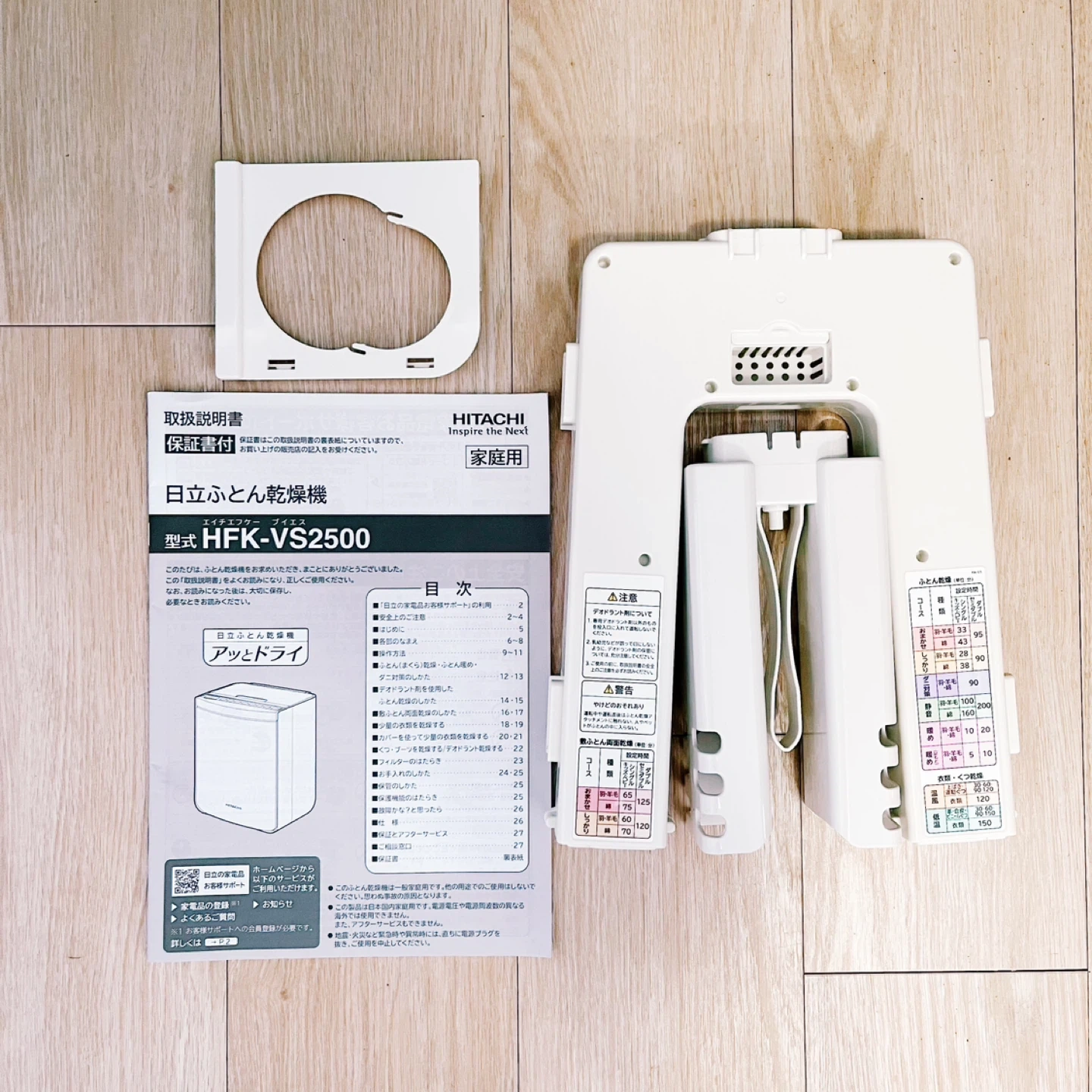 あたたかさ日立のふとん乾燥機です。 【情報】 ブランド:日立 型番:HFK-VS2500 【付属品】 説明書、アタッチメント 中古品であることをご了承ください。