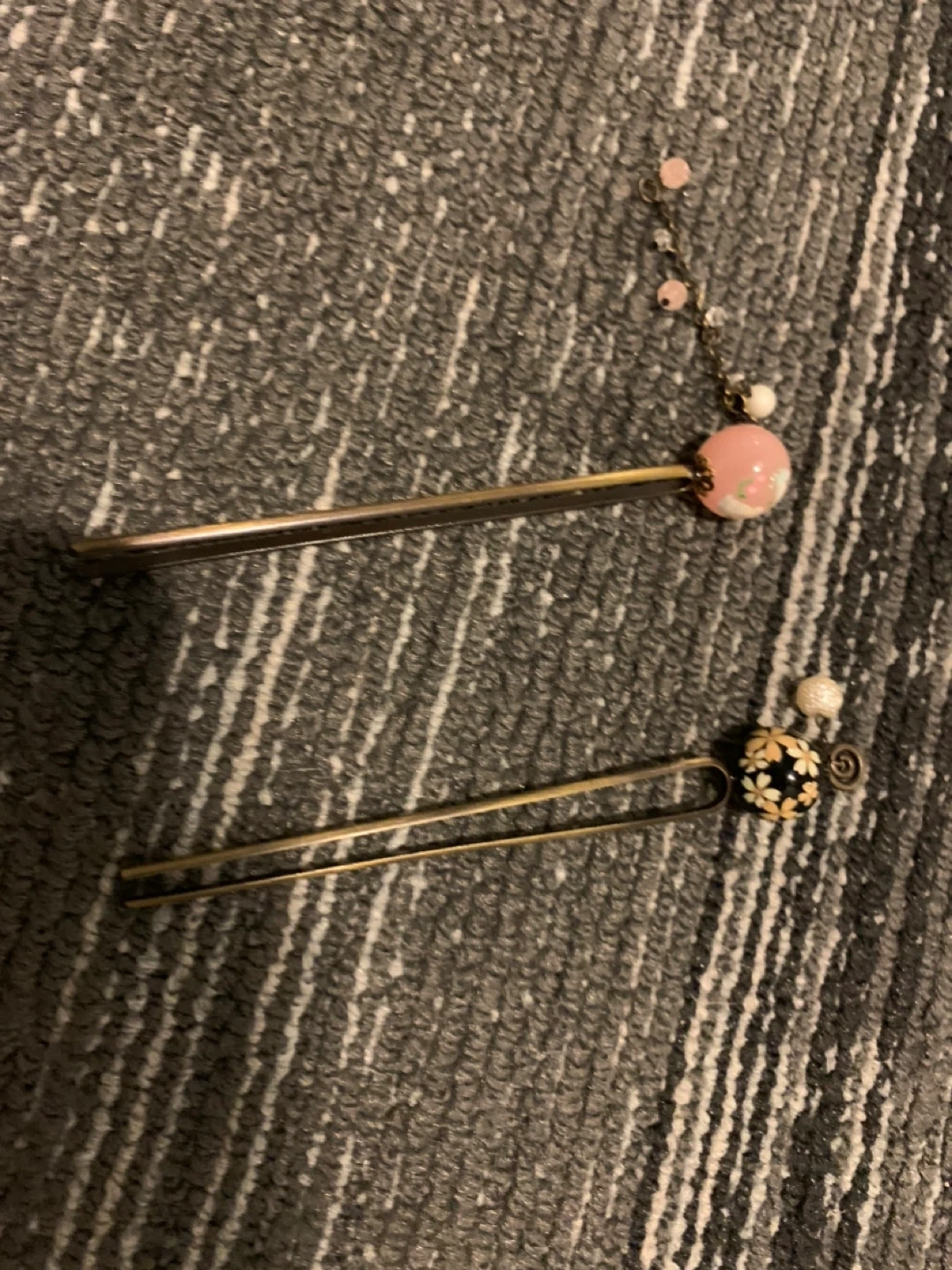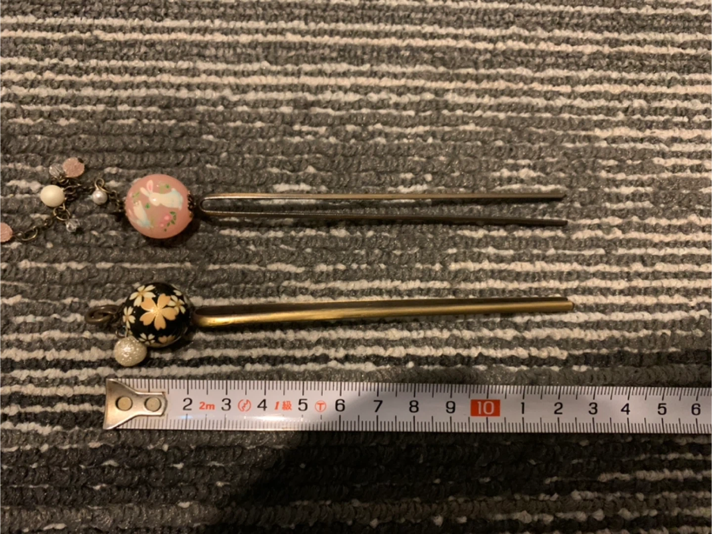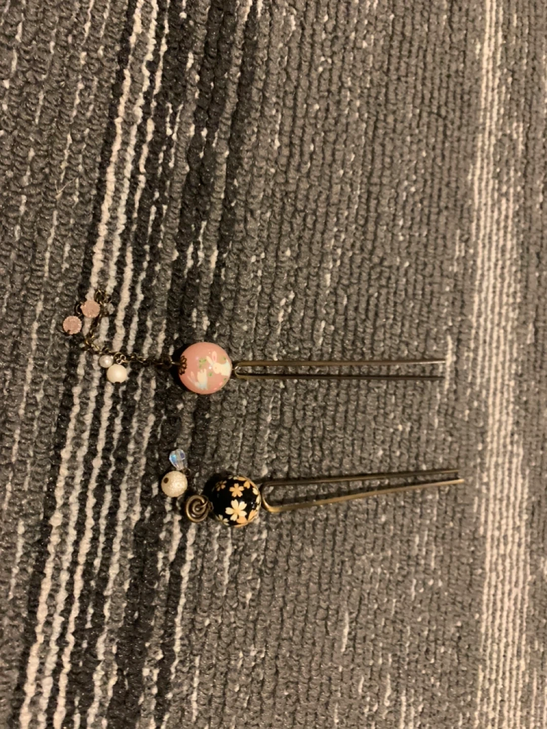 かんざし2本セットです ・色:ピンク、黒 ・デザイン:花柄 ・状態:使用感少なめ ・長さ:約13cm 未使用品であることご了承ください ご覧いただきありがとうございます。5個以上まとめてご購入いただける方はさらにお値引き致します。 是非ご検討宜しくお願い致します。