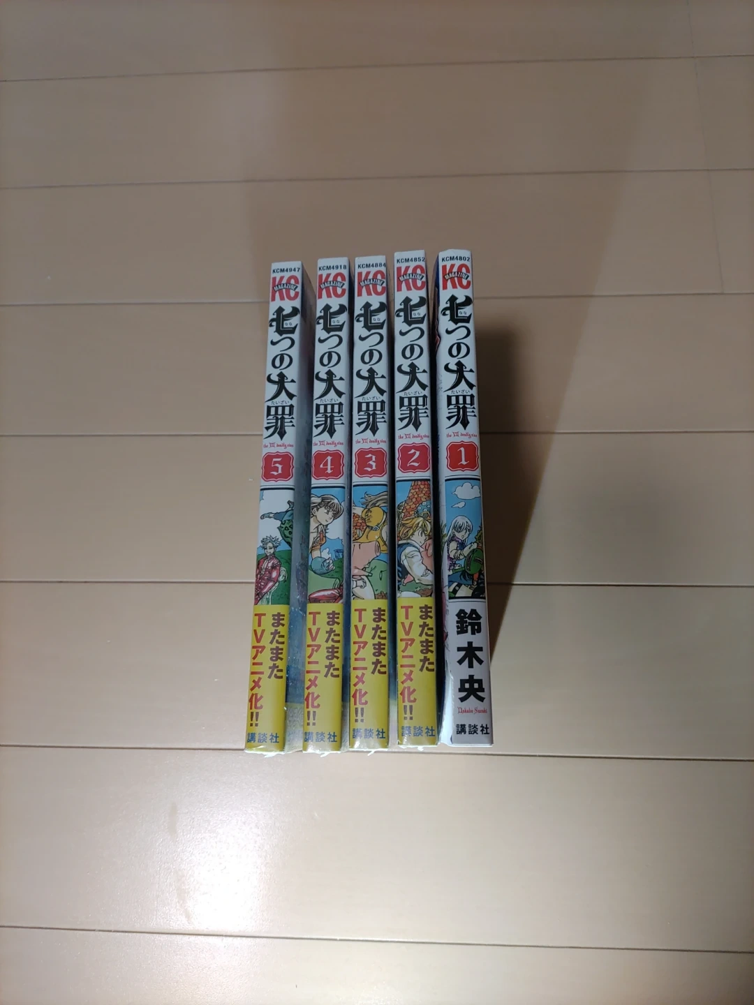 七つの大罪の漫画1-5巻セットです。 ・1巻は、表紙に破れがあります。 ・2-5巻は、ビニールのままで、 未開封です。 中古品であることをご了承ください。
