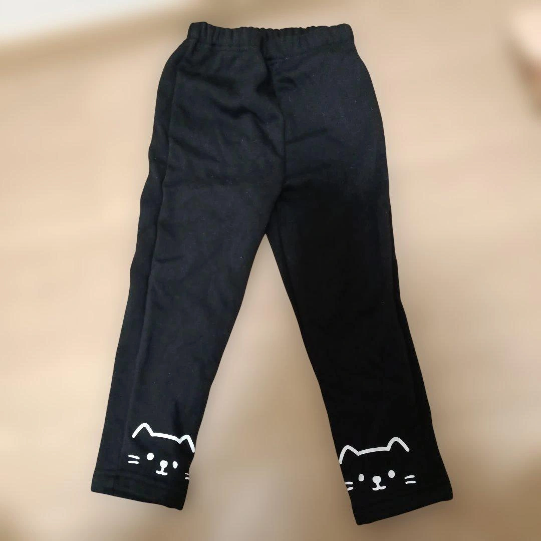 あたたかさ猫の顔プリントが可愛いブラックのロングパンツ、サイズ110です。裏起毛です。サイズ間違いで同じものを買ってしまいました。1、2度履いたかもしれませんが、履いた記憶すらない美品です。 - カラー: ブラック - デザイン: 猫の顔プリント - サイズ: 110 - 素材: ポリエステル80%、コットン15%、ポリウレタン5% ご希望の方はお気軽にご連絡ください。