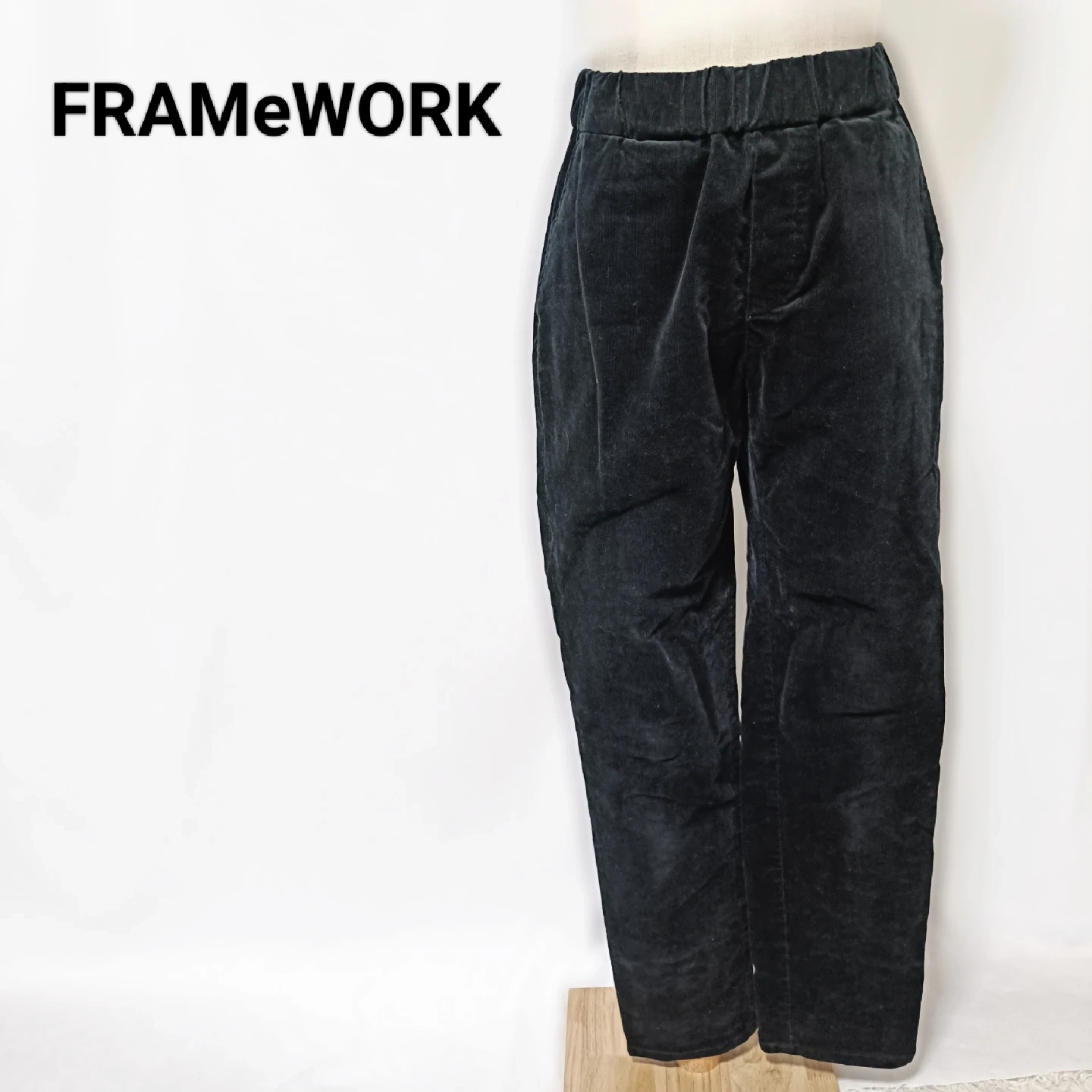 美品 フレームワーク コーデュロイイージーパンツ 38 黒 日本製 ウエストゴム