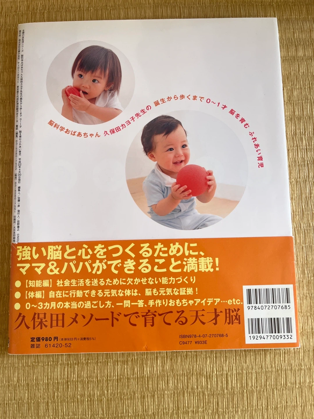 クボタカヨコさんの育児本です。 【情報】 著者:久保田カヨ子 タイトル:0〜1才 脳を育む ふれあい育児 中古品であることをご了承ください。