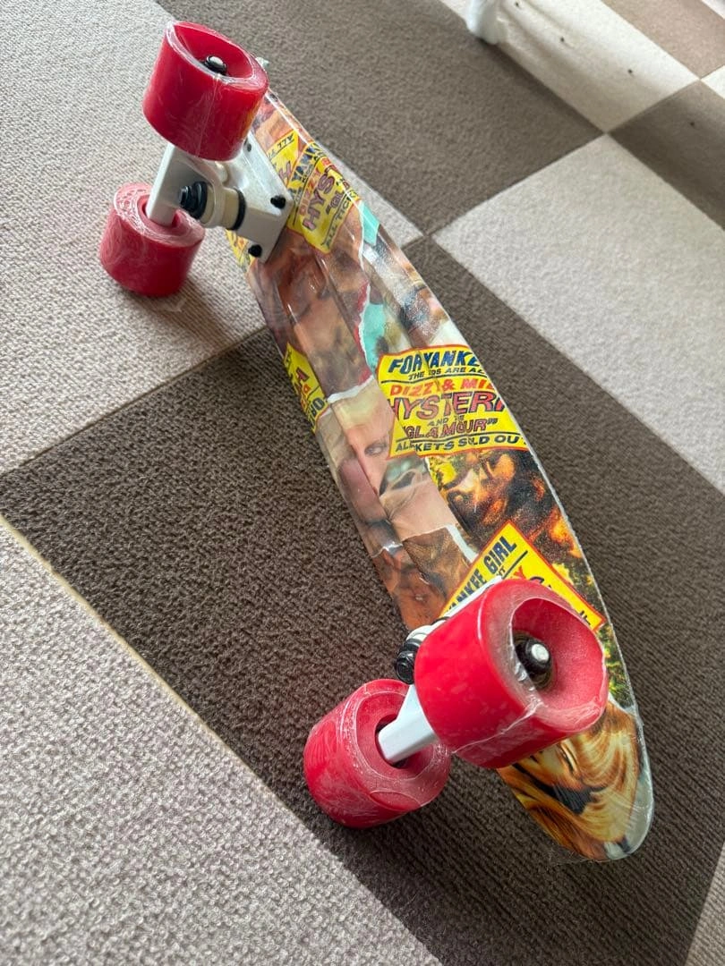 ヒステリックグラマー新宿店で7万円以上商品を購入時にもらいました、非売品のペニーです。もう売っていません! 新品未使用未開封、シュリンク付き 状態かなり良くクローゼットにて暗所保管 展示にも実用にもおすすめ、ファンにはたまらいグッズです。 裏面は人気のあるFOR YANKEE GIRL柄となっています。 カラー:ブルー×レッド サイズ:全長55.5cm 幅15cm - デザイン: カラフルなグラフィックデザイン - ホイール: 赤色のホイール - 素材: プラスチック製のボード - ボードの色: 青色のボード - トラック: ホワイトのトラック ご覧いただきありがとうございます。
