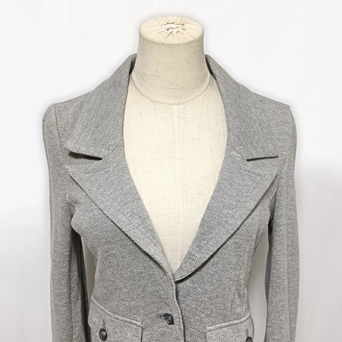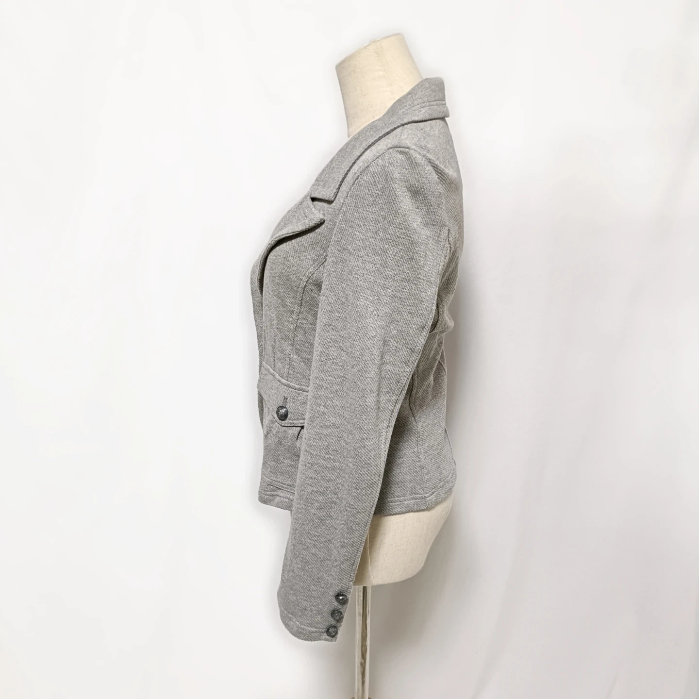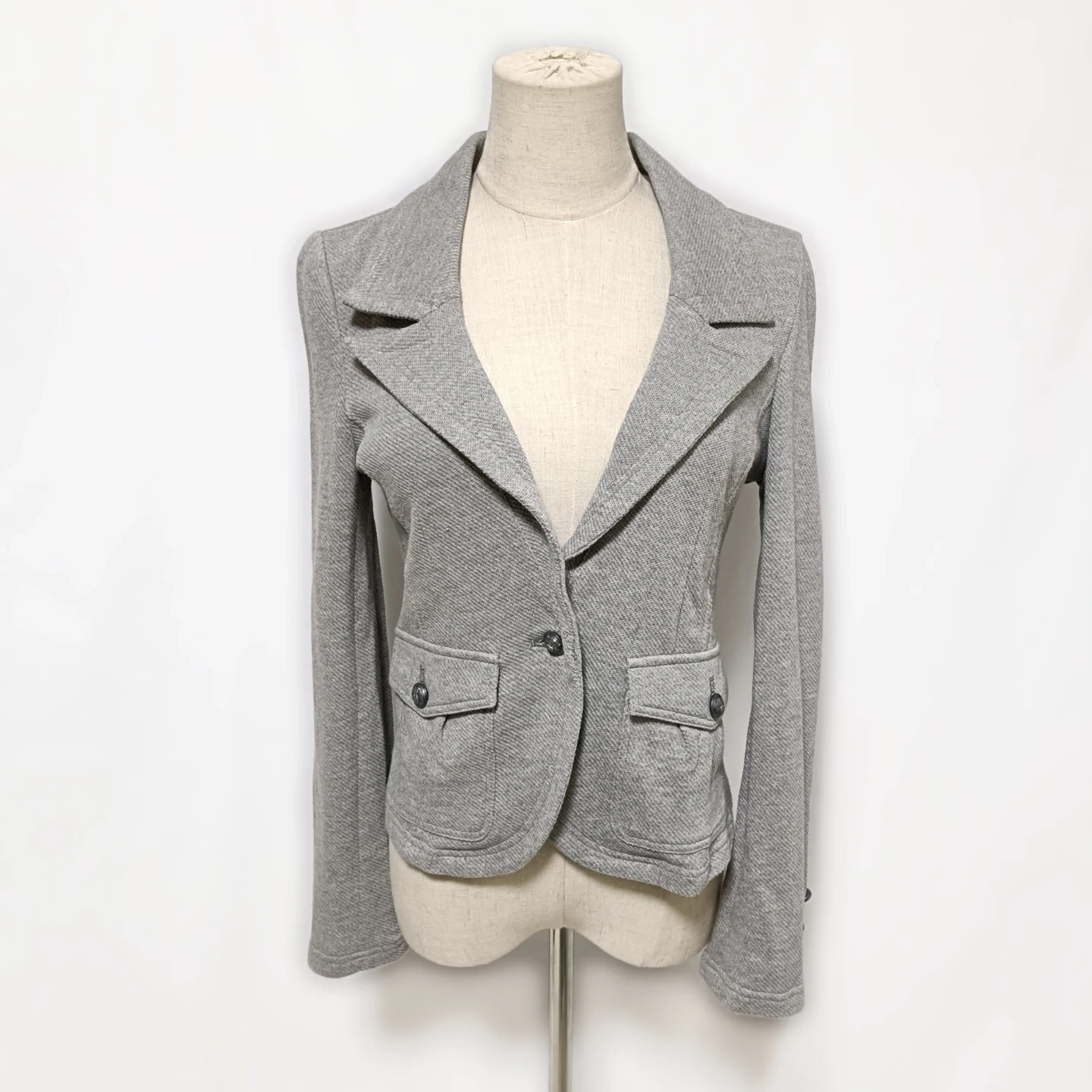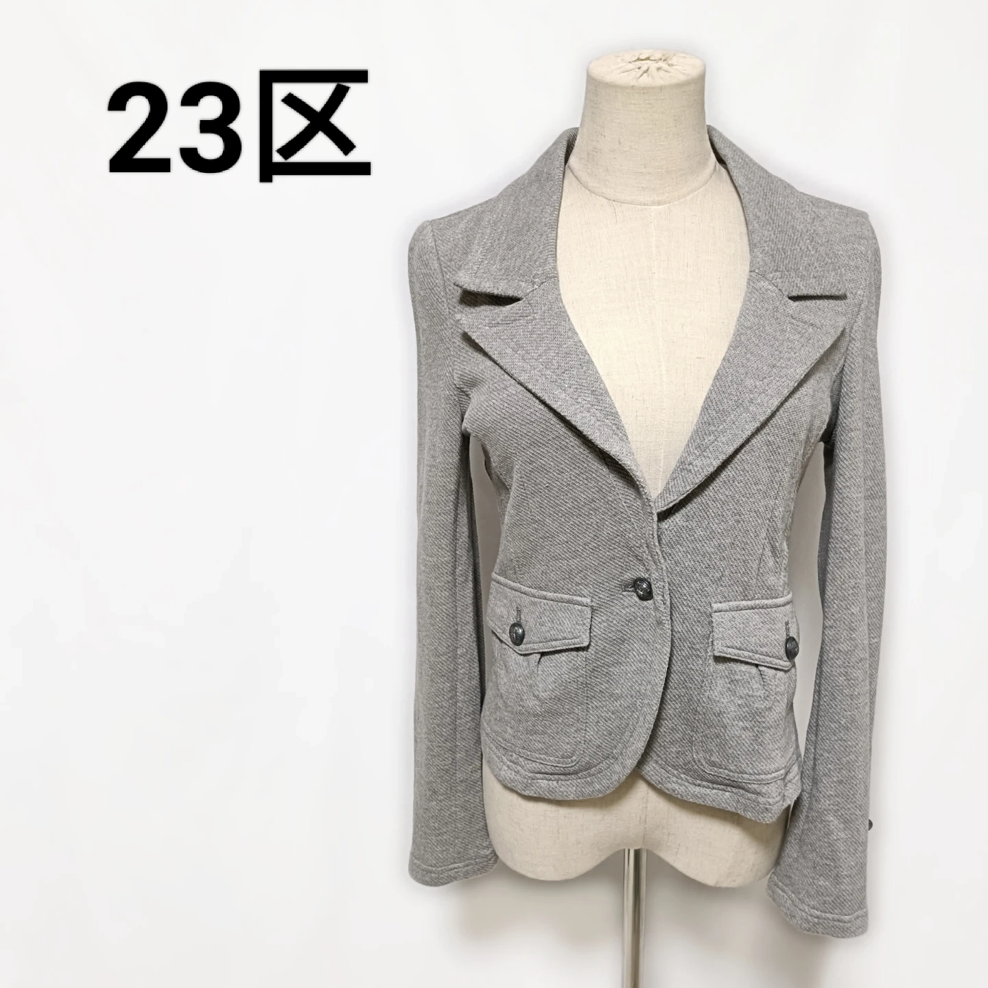 ご覧いただきありがとうございます! 23区 Vingt-trois arrondissements の綿100%ジャージー素材を使用したテーラードジャケットです。 かっちりしすぎない大人カジュアルなデザインと、伸縮性のあるジャージー生地による抜群の着心地が魅力。 カーディガン感覚で気軽に羽織れるので、季節の変わり目や、 少し肌寒い日のオフィススタイルにぴったりです。 シンプルながらも、袖口のボタンや、左右のフラップポケットなど、細部にまでこだわった上品なデザインです。 □商品名□ 23区 大人カジュアル テーラードジャケット 綿100% ジャージー素材 40 □ブランド□ 23区 □表記サイズ□ 40 (Lサイズ相当) □実寸サイズ(cm) □ 着丈:51 肩幅:40 身幅:42 袖丈:60 ※実寸につきまして多少の誤差はご了承ください。 ※表記サイズだけではなく実寸のサイズをご確認ください。 □カラー□ グレー □素材□ 綿100% □コンディション□ 目立った汚れやダメージなど特にございません。 ※汚れはできる限り写真にて掲載しております。まずは画像をご確認ください。 どうぞよろしくお願い致します。 □商品管理番号□ T3-R-5592