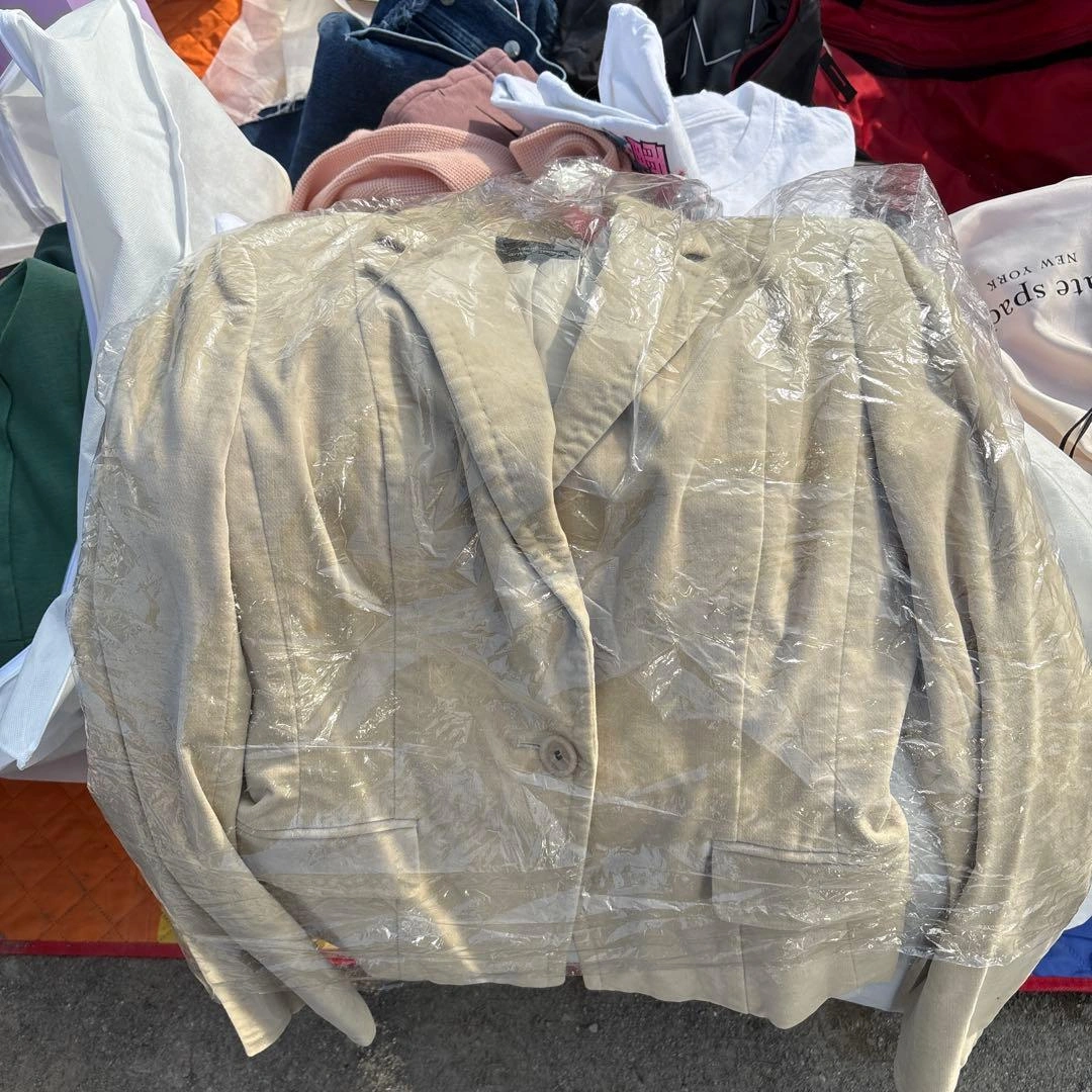 あたたかさベージュのテーラードジャケットです。フロントポケットが付いています。クリーニング済み。 - 色: ベージュ - スタイル: テーラードジャケット - ポケット: フロントポケットあり - 素材: 不明(透明なカバーあり) ご覧いただきありがとうございます。ご希望の方はお気軽にご連絡ください。