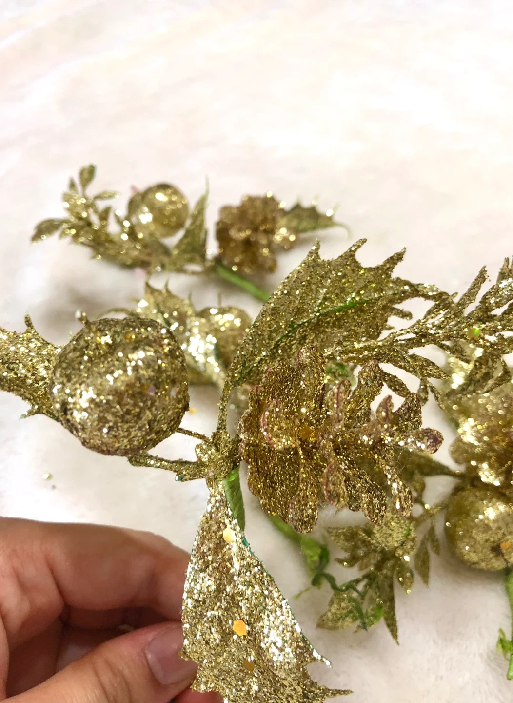 🌹✨葉っぱモチーフ オーナメント 赤/ゴールド