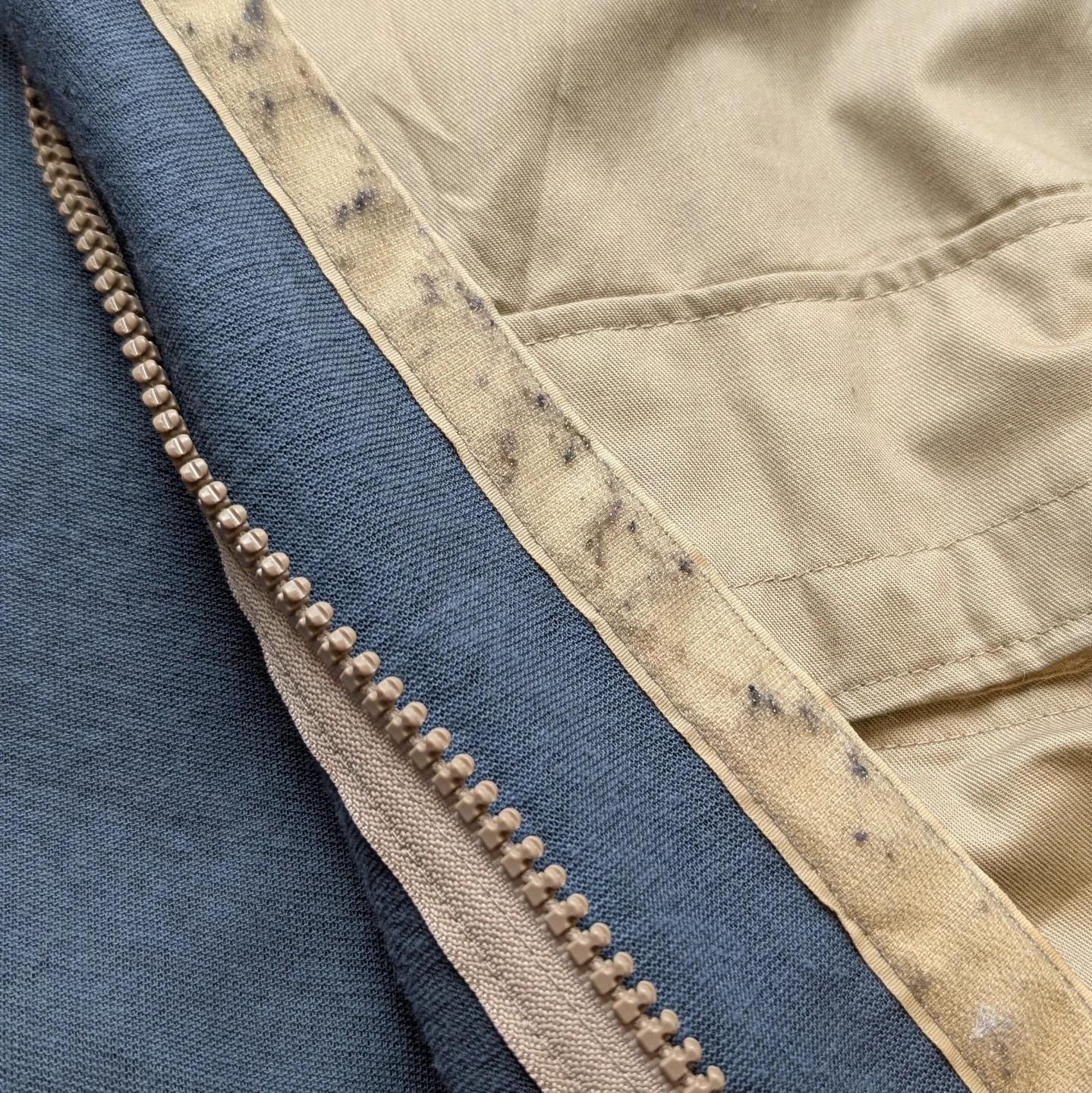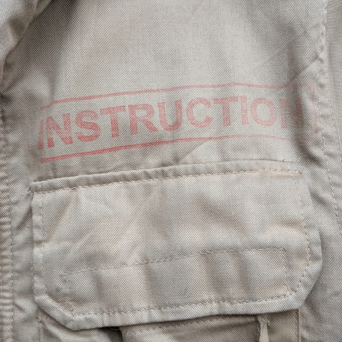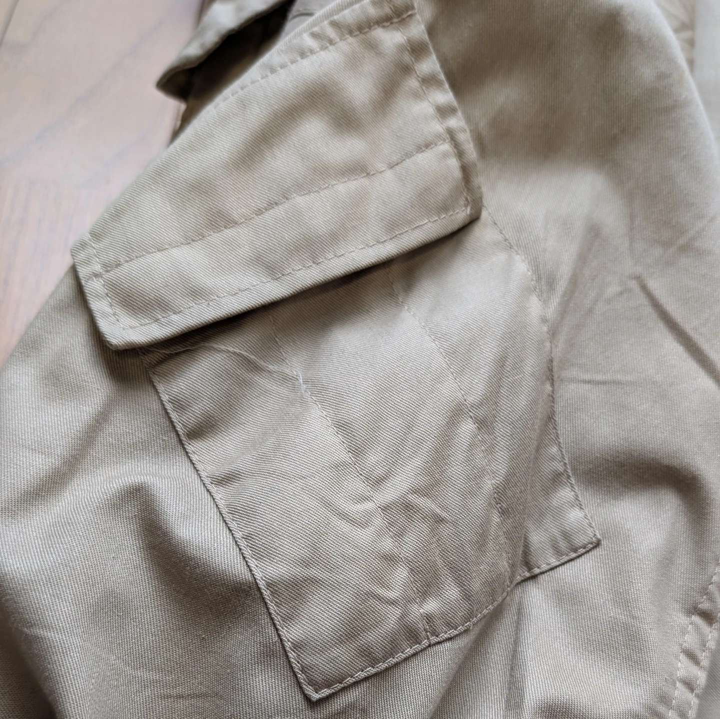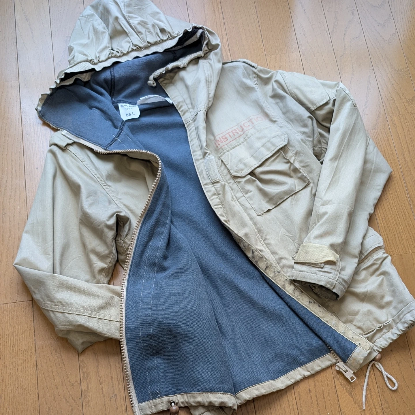 あたたかさ以前古着屋で購入したフランス軍のパーカーになります。 ガス用の防護パーカーで、それっぽい胸のステンシルがいい感じです。 ポケットも多く機能性も良しです。 ∼以下サイト引用∼ いわゆるCPC(Chemical protective Clothing)の一種で、この手のアイテムは特殊な素材のボンディングなどファッションとして着用するには難ありなものが多いのですが、こちらは内張りのコットンの良い肌触りはもちろんアウトシェルにおいても非常に軽快な動きが可能なコットン素材で構成されています。 肩幅/身幅/袖丈/着丈 肩幅...45cm 身幅...49cm 袖丈...65cm 着丈...71cm カラー...ベージュ系 #M65 #M-65