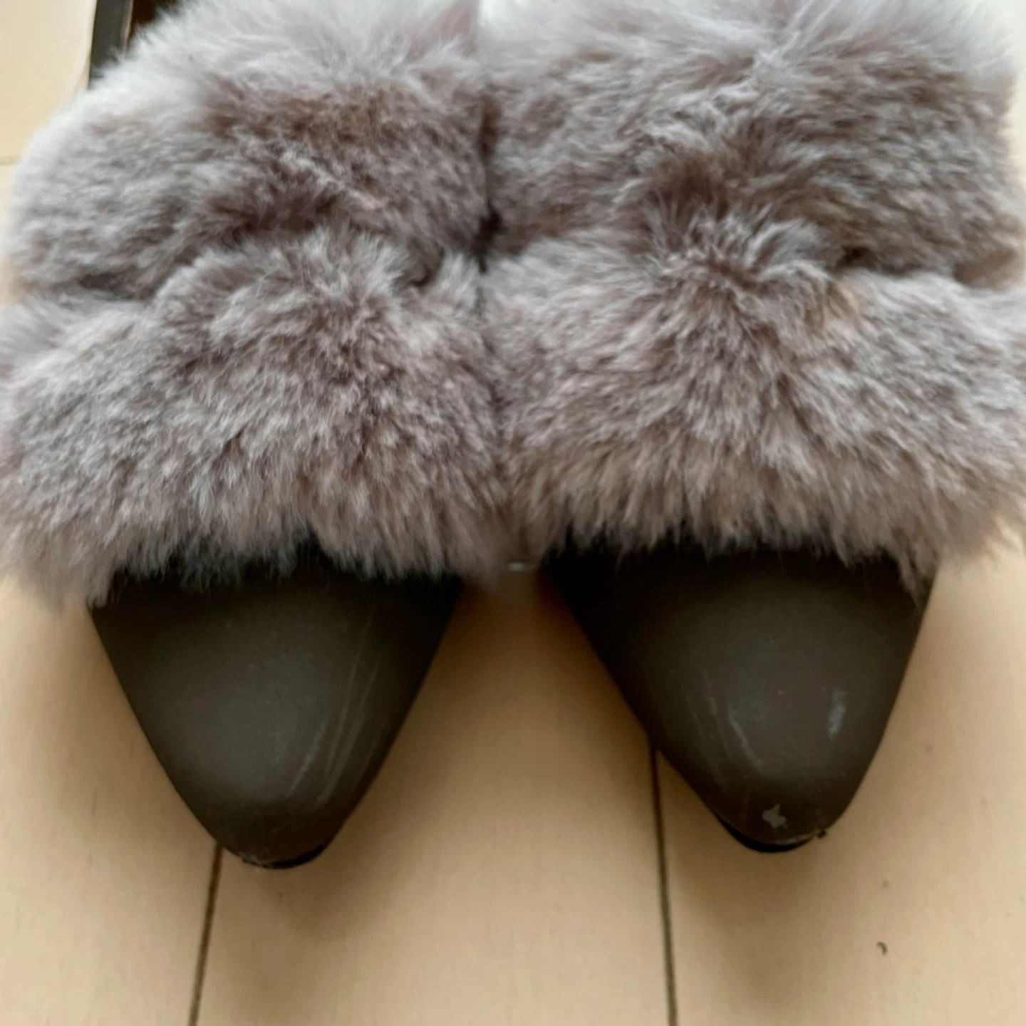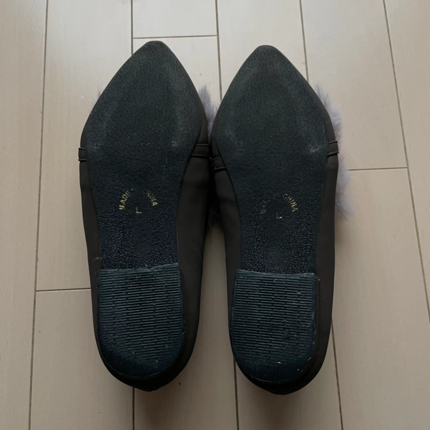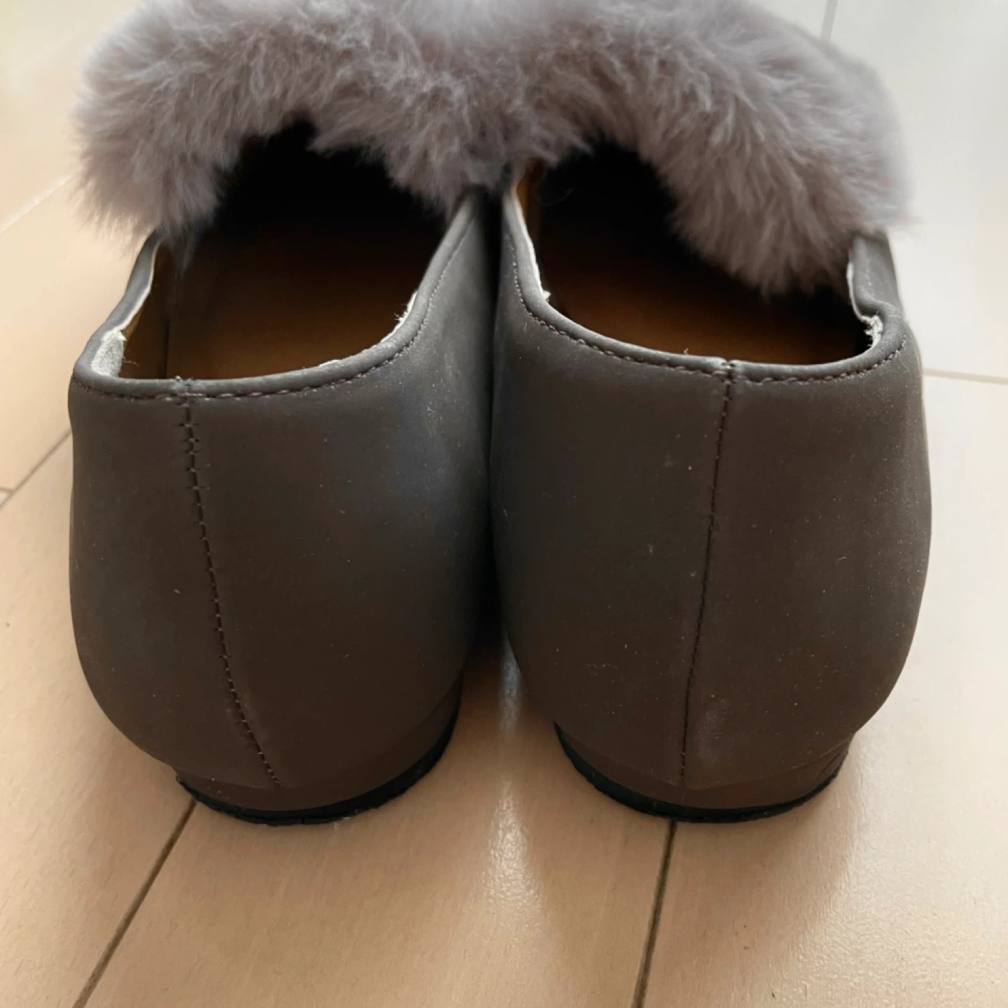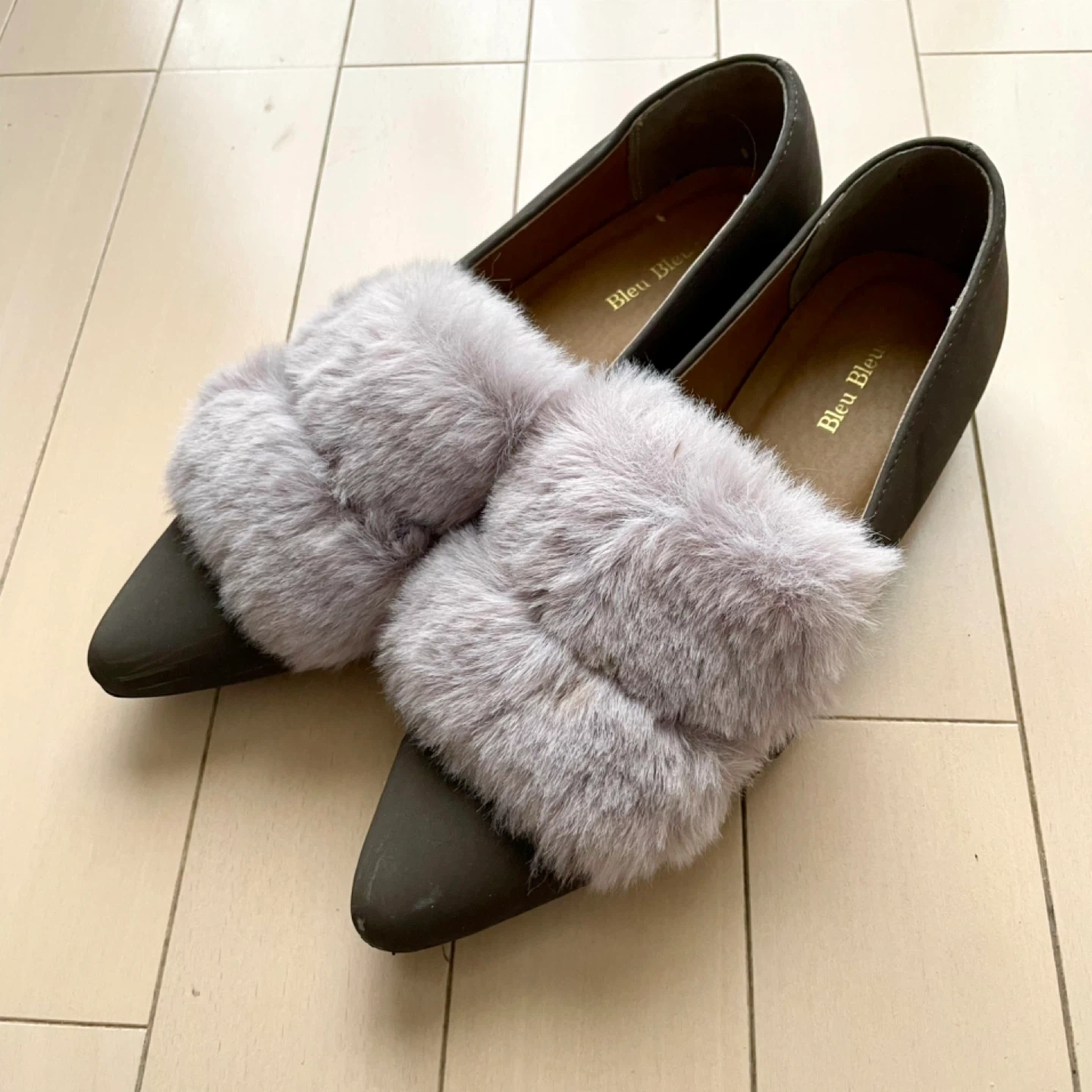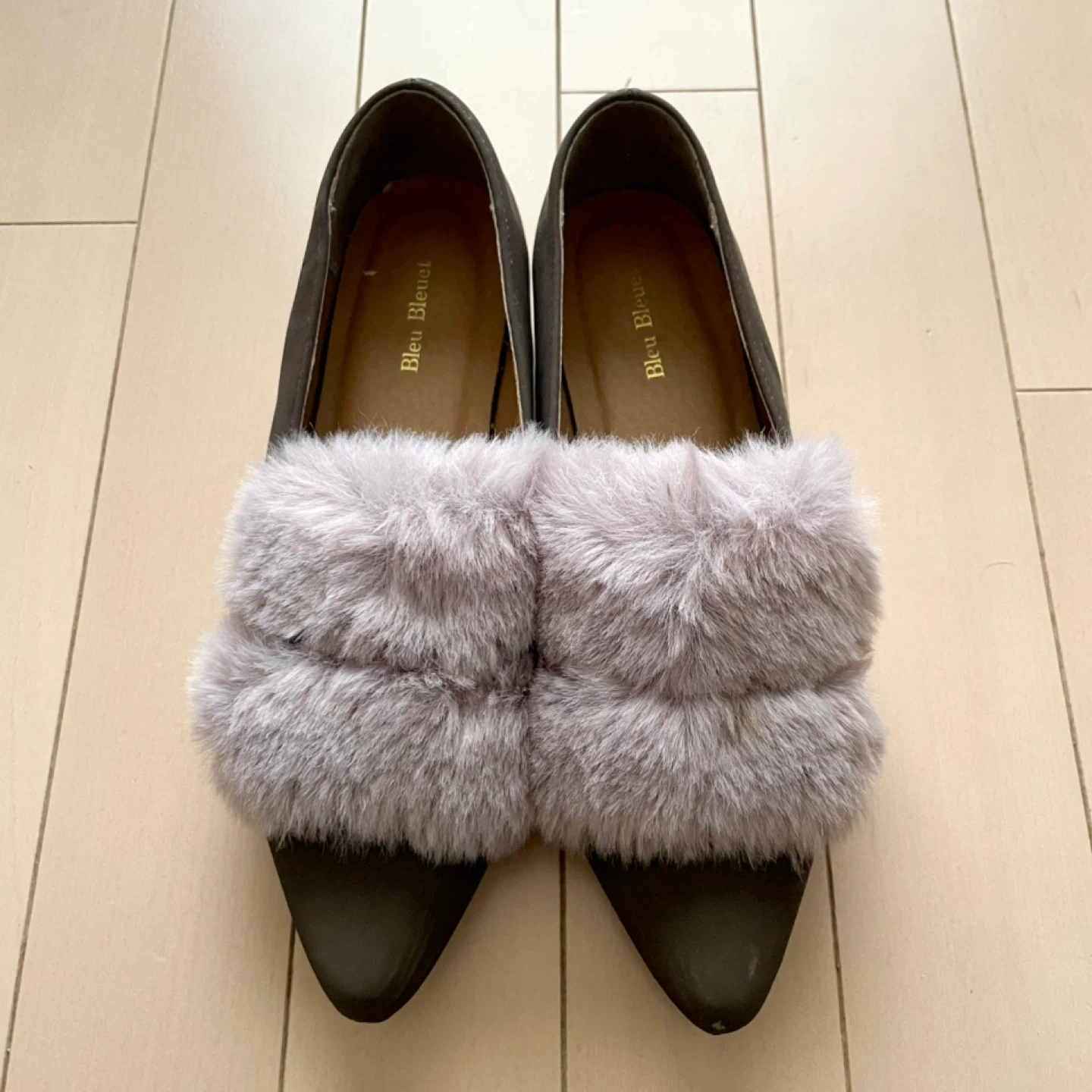 Bleu Bleuet(ブルーブルーエ)のファー付きのパンプス、フラットシューズです。 一目惚れをして購入。普段23㎝を履いているのですがLサイズしかショップになく、中敷を入れて履いてみたもののやはり大き過ぎました。 2度ほど外で履いて、つま先に少し傷があります。(※画像5枚目) カラー モカブラウン サイズ L ( 24〜24.5㎝程度と思われます) ヒールの高さは1㎝ほどで、クッシ ョン性があり履きやすいです。 冬のファッションのワンポイントにいかがでしょうか? お渡しは、祖師ヶ谷大蔵駅の他千歳船橋 千歳烏山 八幡山 成城 ユニクロ世田谷千歳台店なども可能ですのでお気軽にご相談ください。